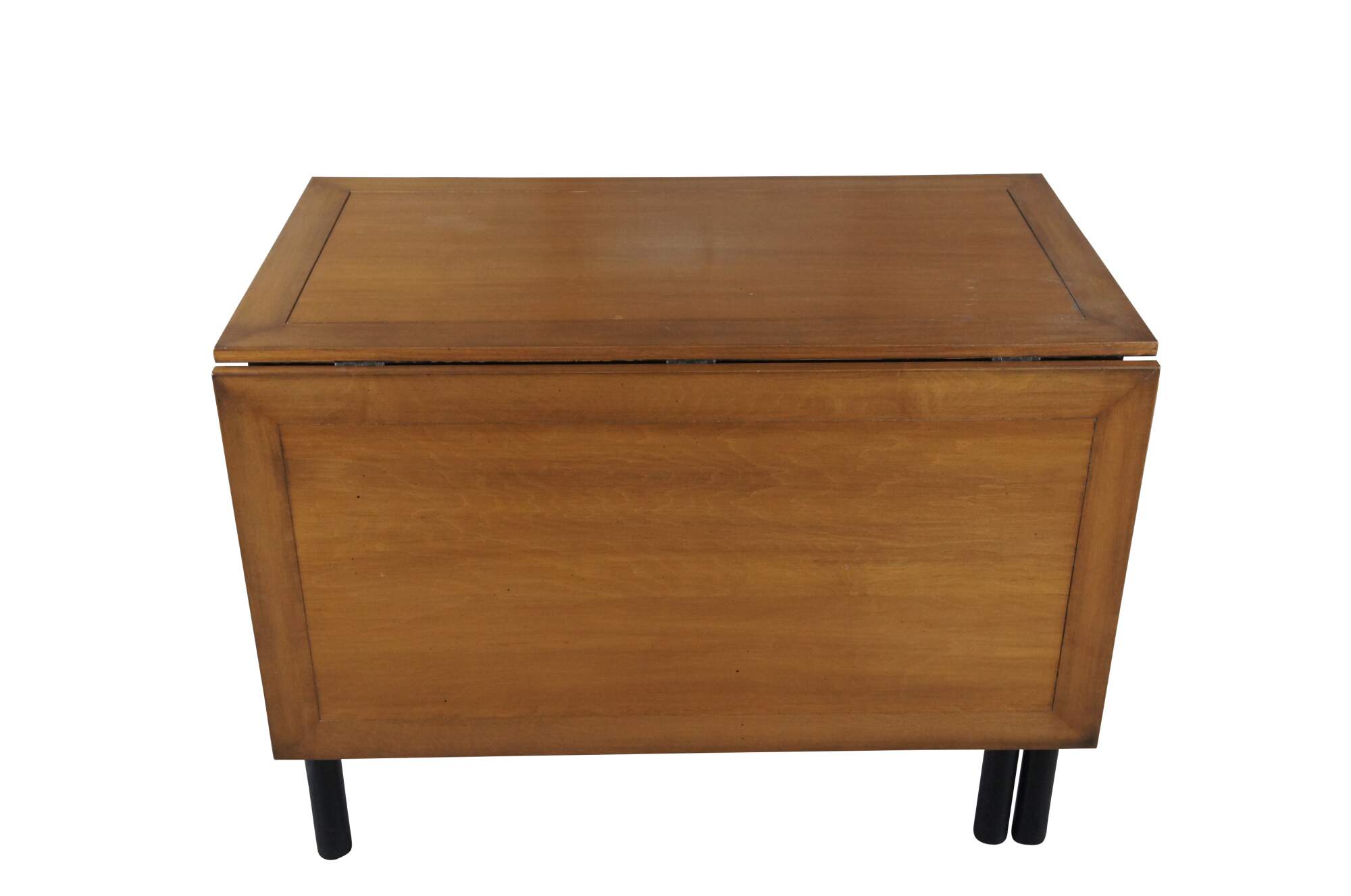 Vintage maple drop leaf rectangular dining table featuring black painted base.