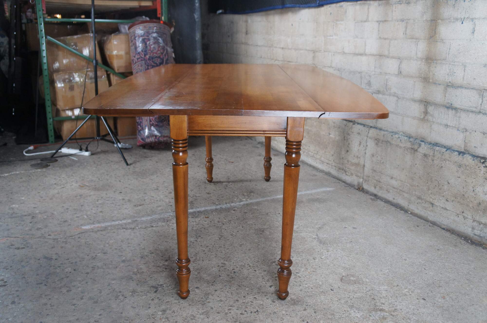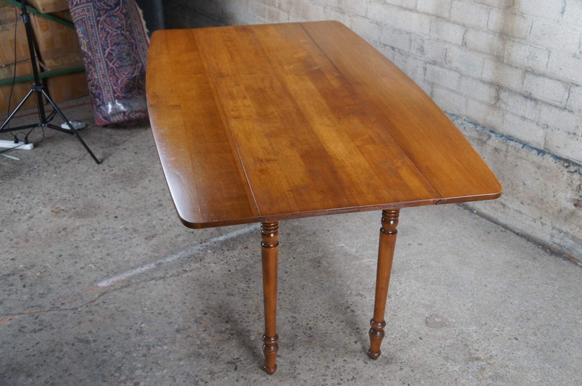 Vintage maple drop leaf rectangular dining table or console featuring slightly sculpted leaves and turned legs.