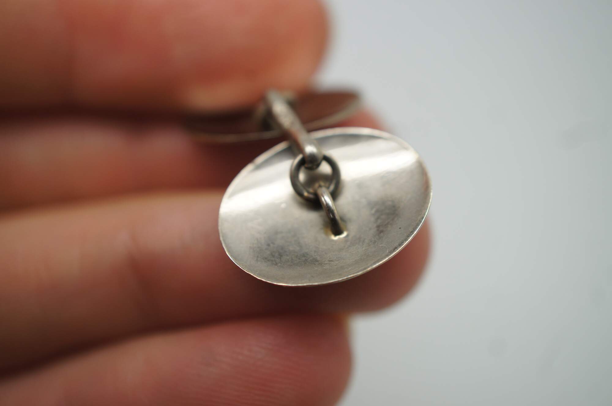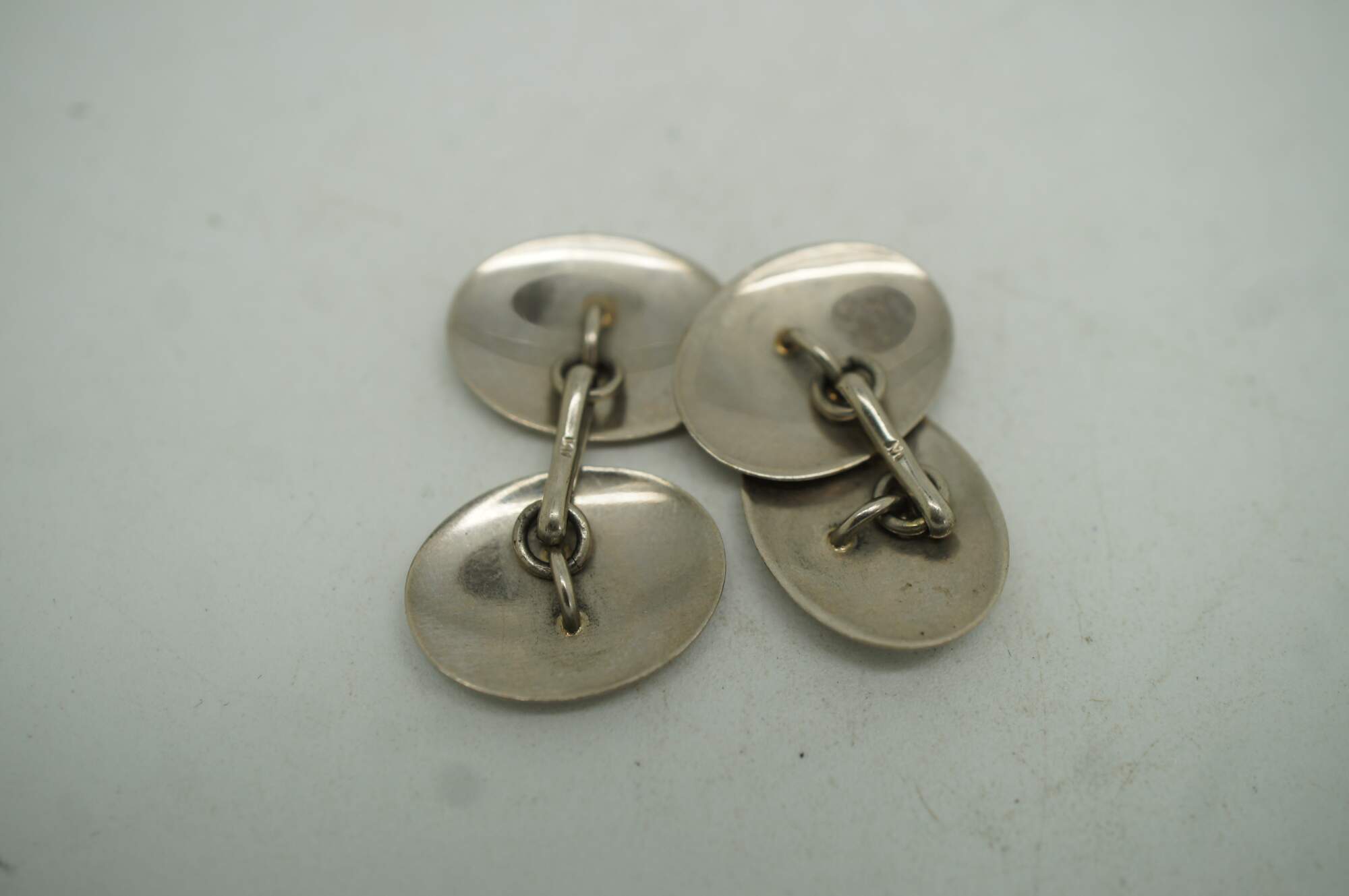 Pair of antique Art Deco 10K white gold oval chain cufflinks.