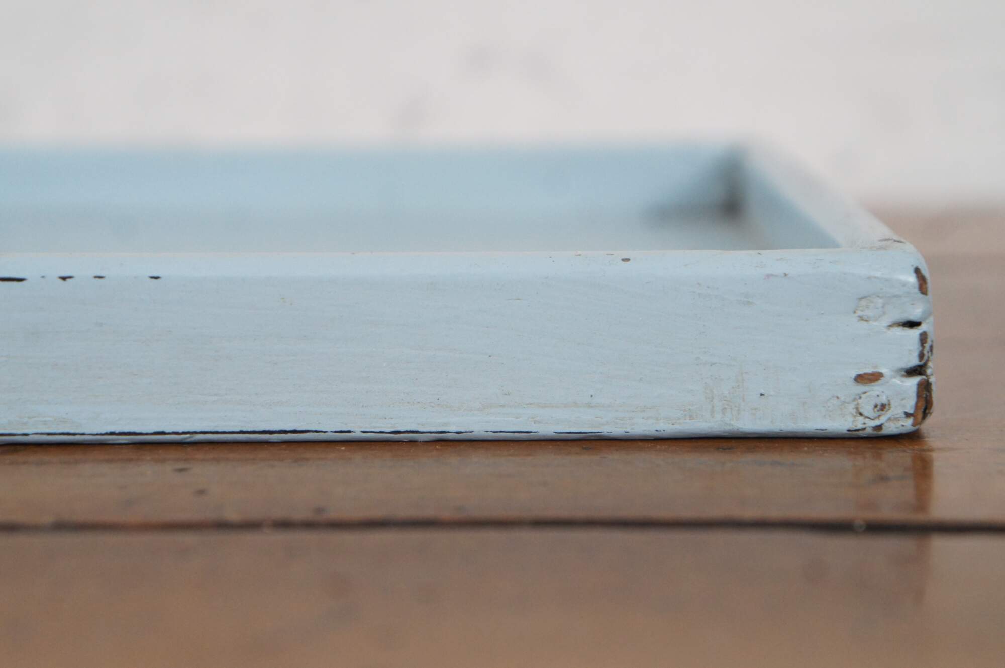 An intriguin English Country serving tray or dish. Made from wood with a blue painted finish.