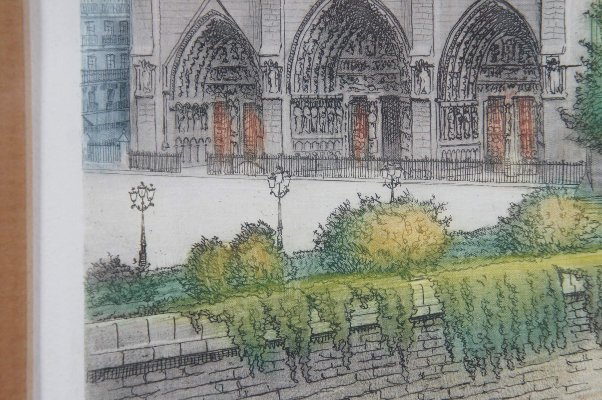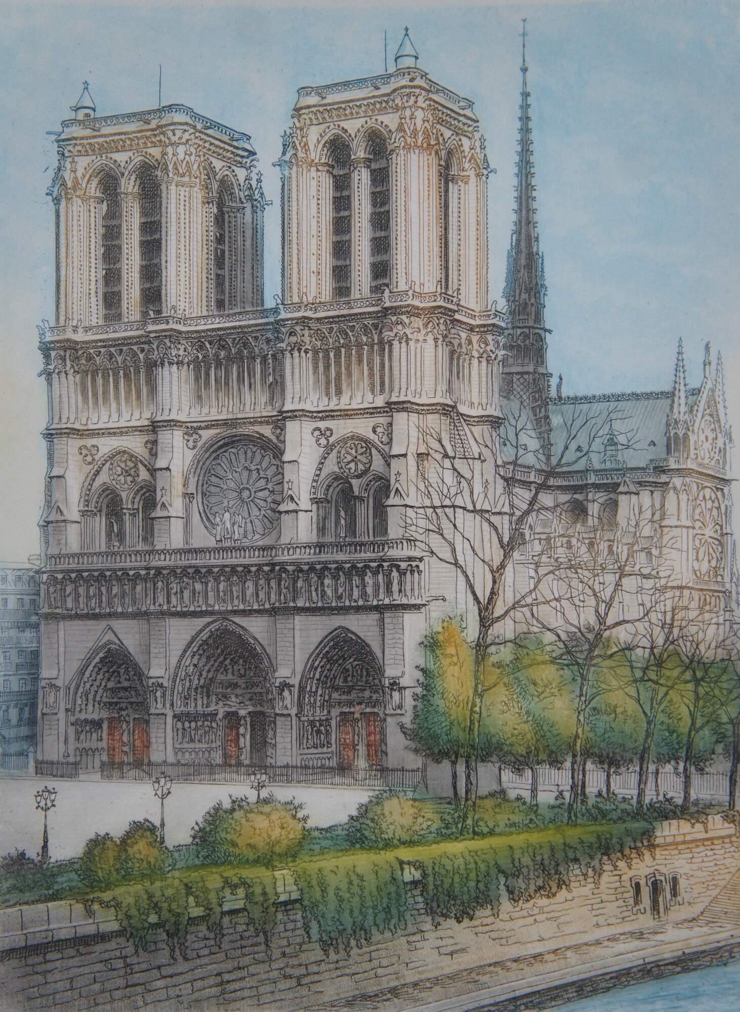 Individual plates are known with color/thematic variations. For example, an etching of Notre Dame – the same plate - is known with two color variations, one of Notre Dame in Spring/Summer, and one of Notre Dame in Winter. Similarly, an etching of Montmartre with Sacre Coeur exists in a day version and a night version.