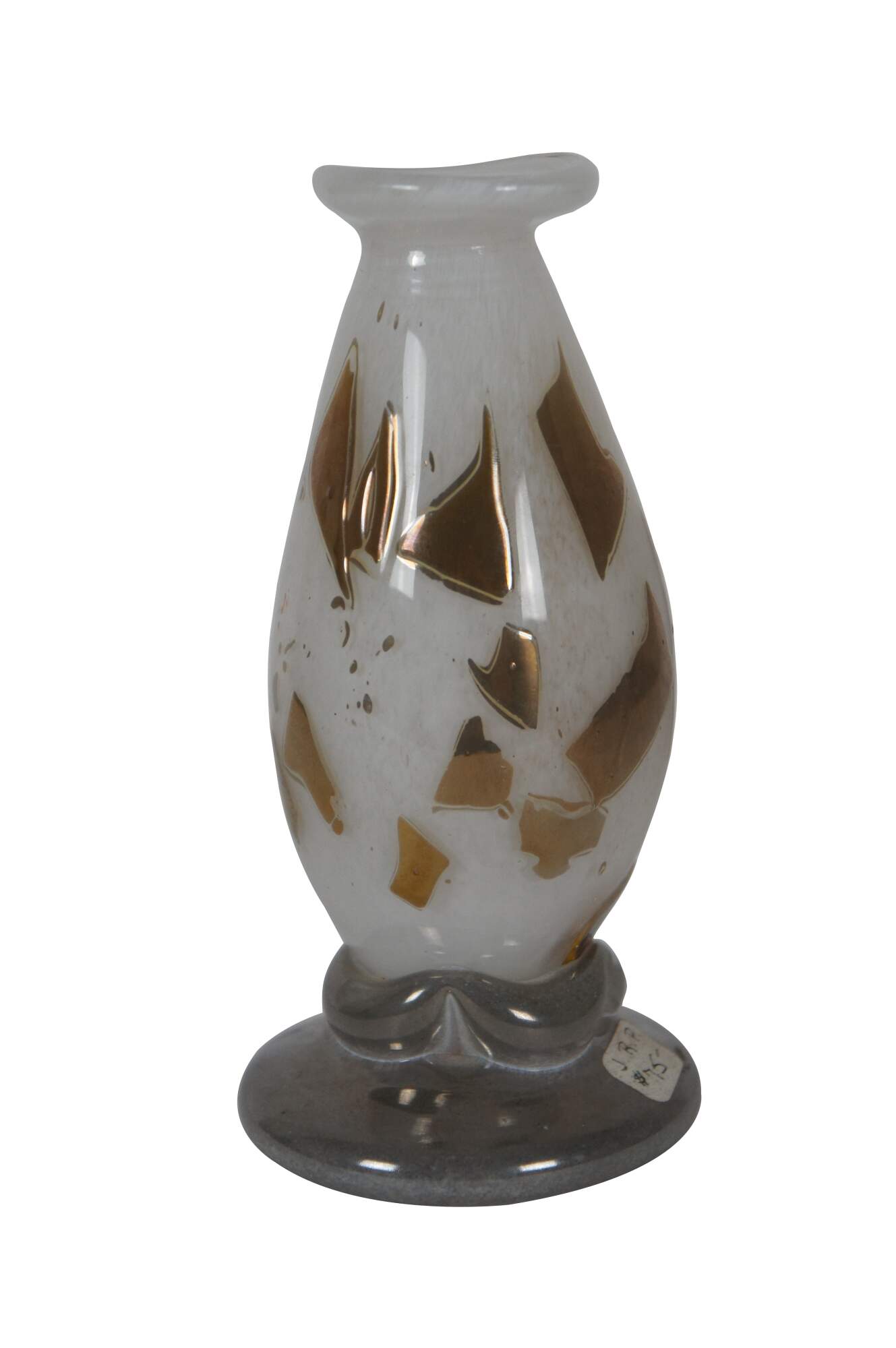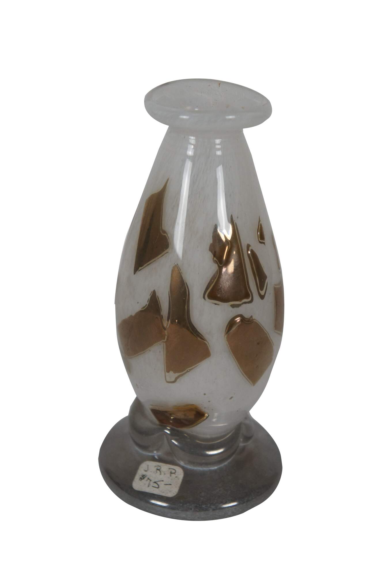 J.R.P. Vintage Hand Blown Abstract Studio Art Glass Fumed Vase White Gold 6