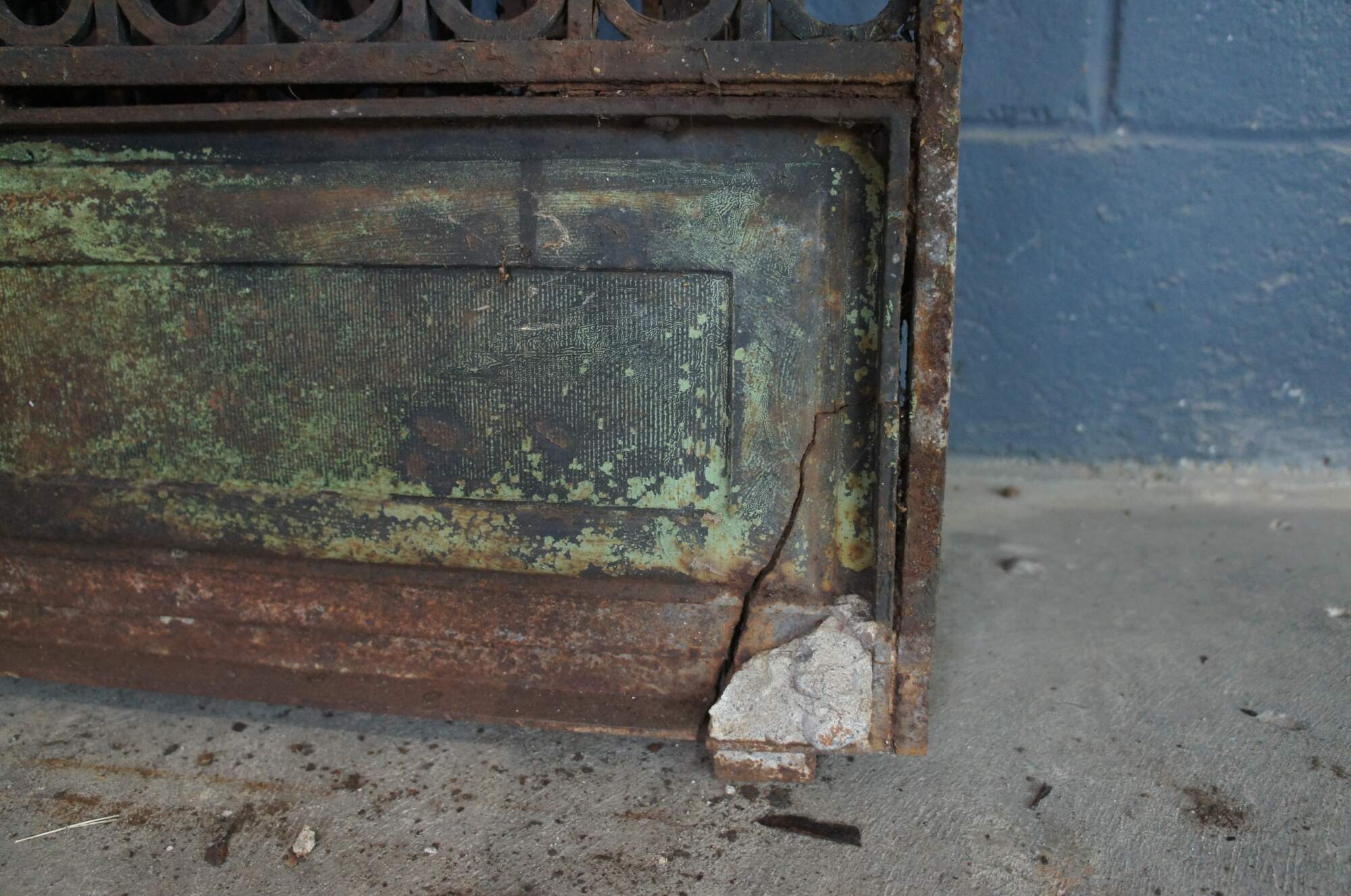 Age, use and weather related wear. Patina and rusting. Some bending to rods and cracking to lower panels. Two lower panels are loose