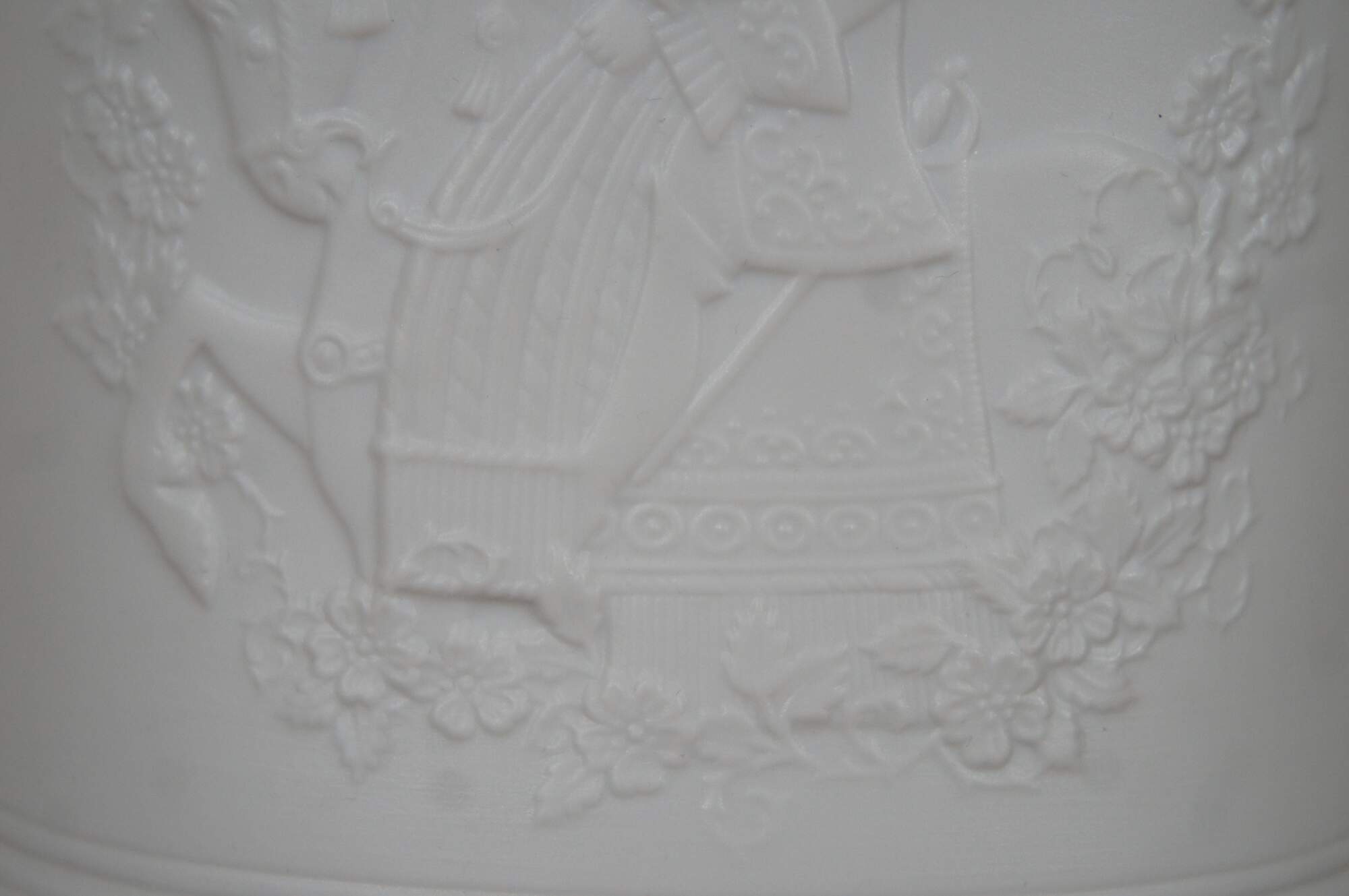 Vintage Kaiser West Germany Low Relief Bisque Vase with King & Queen on Horse