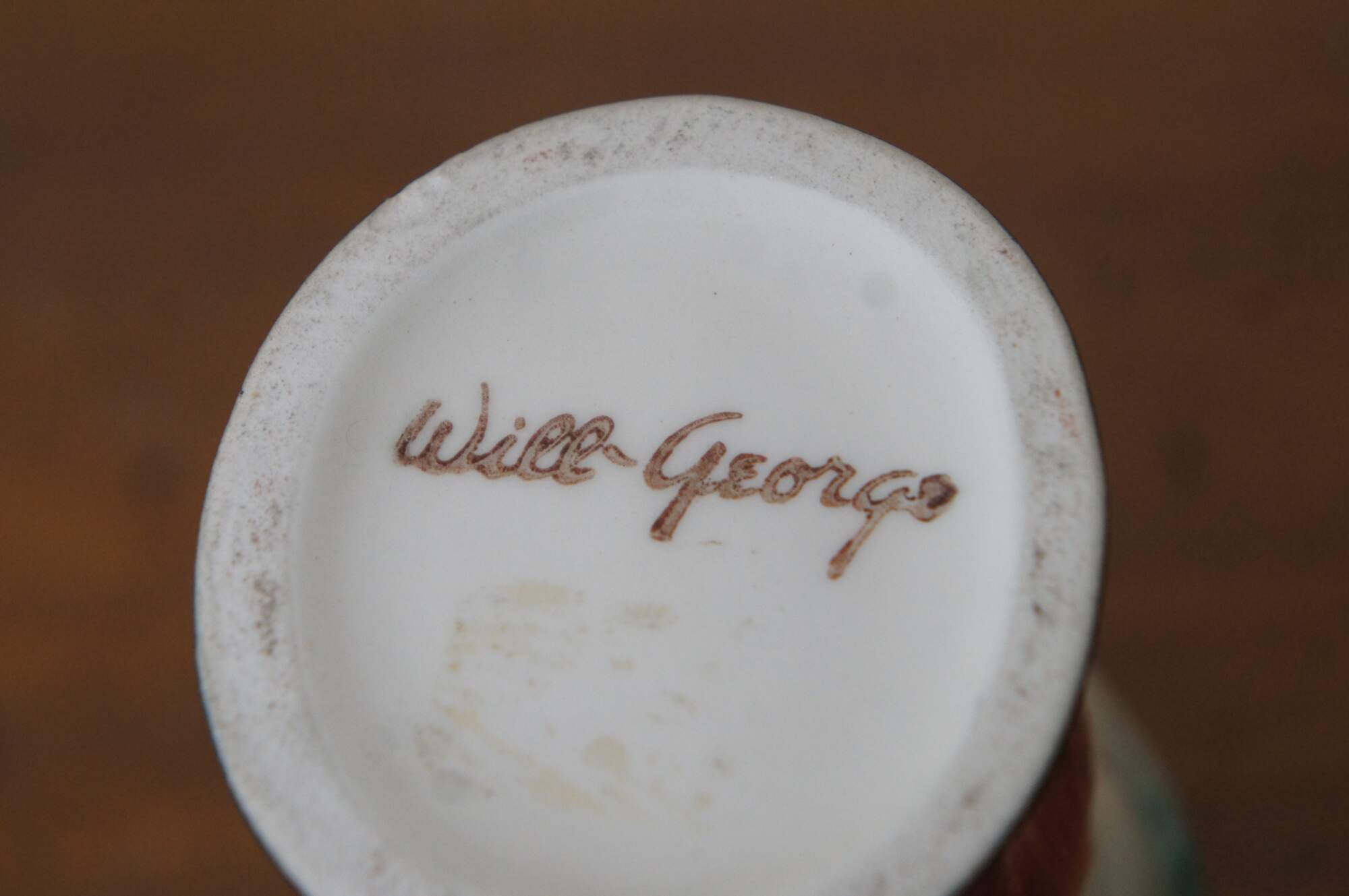 Brothers William and George Climes established the Will-George Company in a Los Angeles garage in 1934. The brothers created porcelain and earthenware with high-quality artware. They gained fame in the late thirties after an actor named Edgar Bergen was introduced to their work. They moved to a facility in Pasadena in the late 30's, then to San Gabriel in 1945 renaming the business as 'The Claysmiths'. The quality porcelain production continued until 1956 when they went out of business and closed.