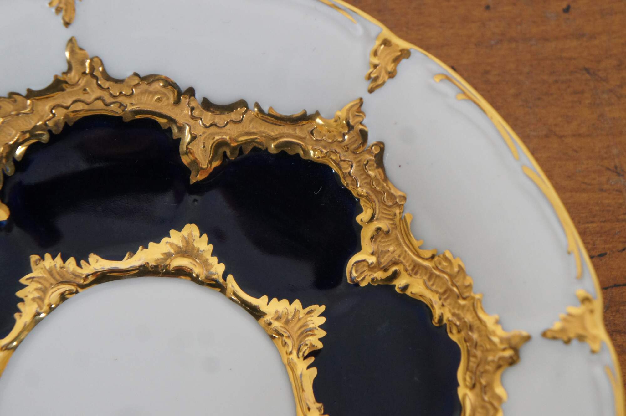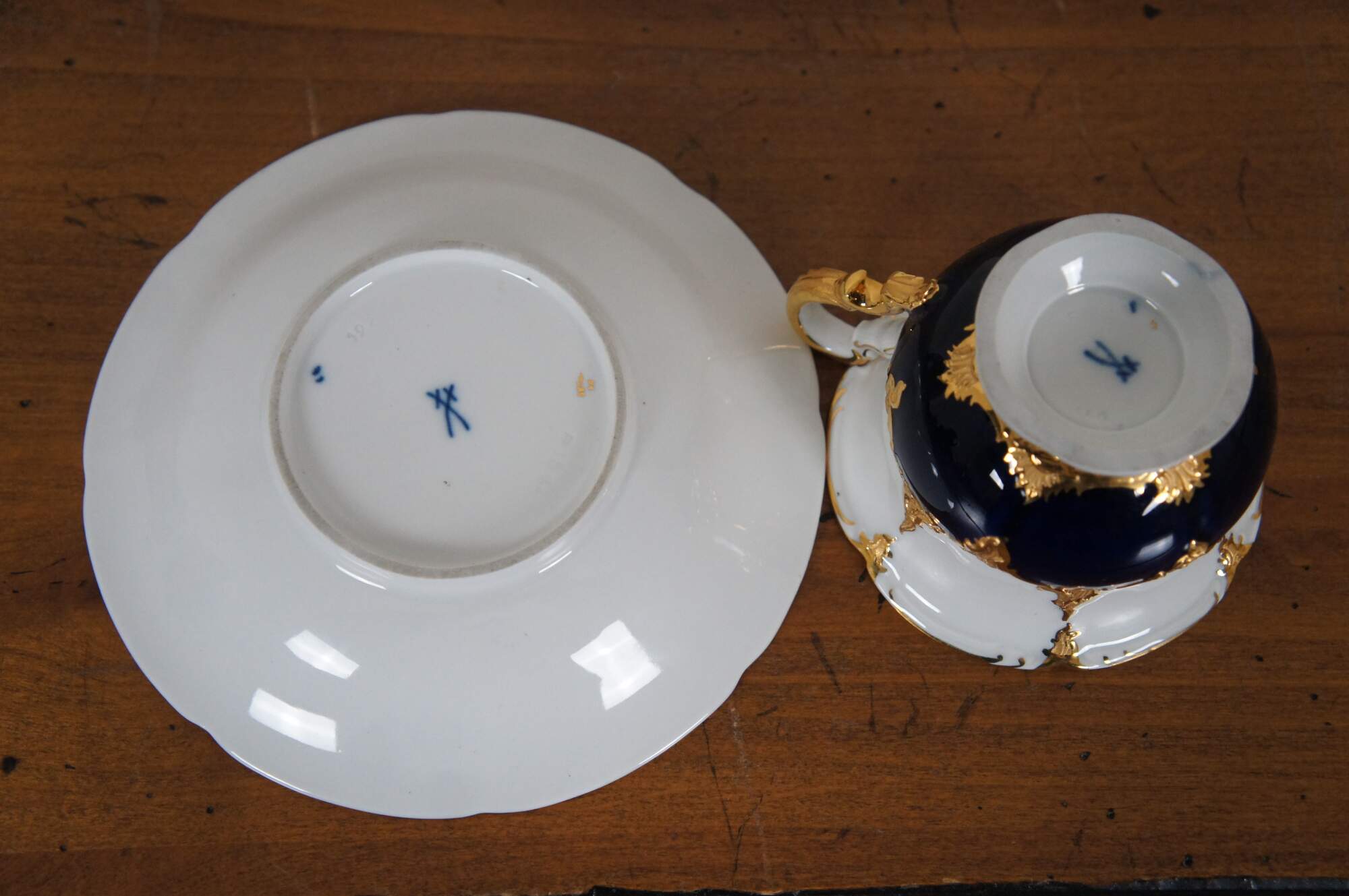 MEISSEN mocha/espresso cup with saucer, ¨B-Form¨, cobalt blue and white background with rich gold decoration and sword mark