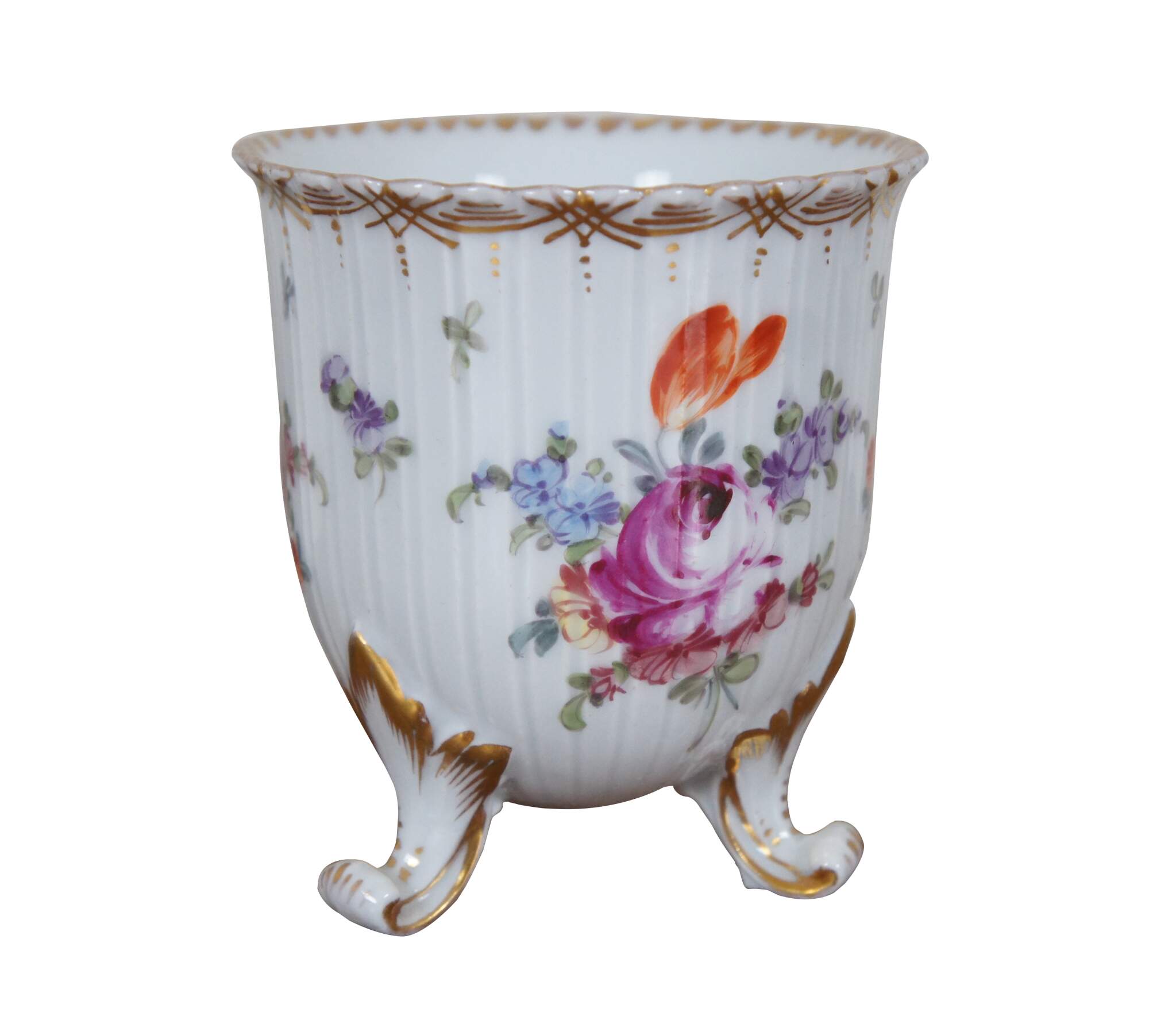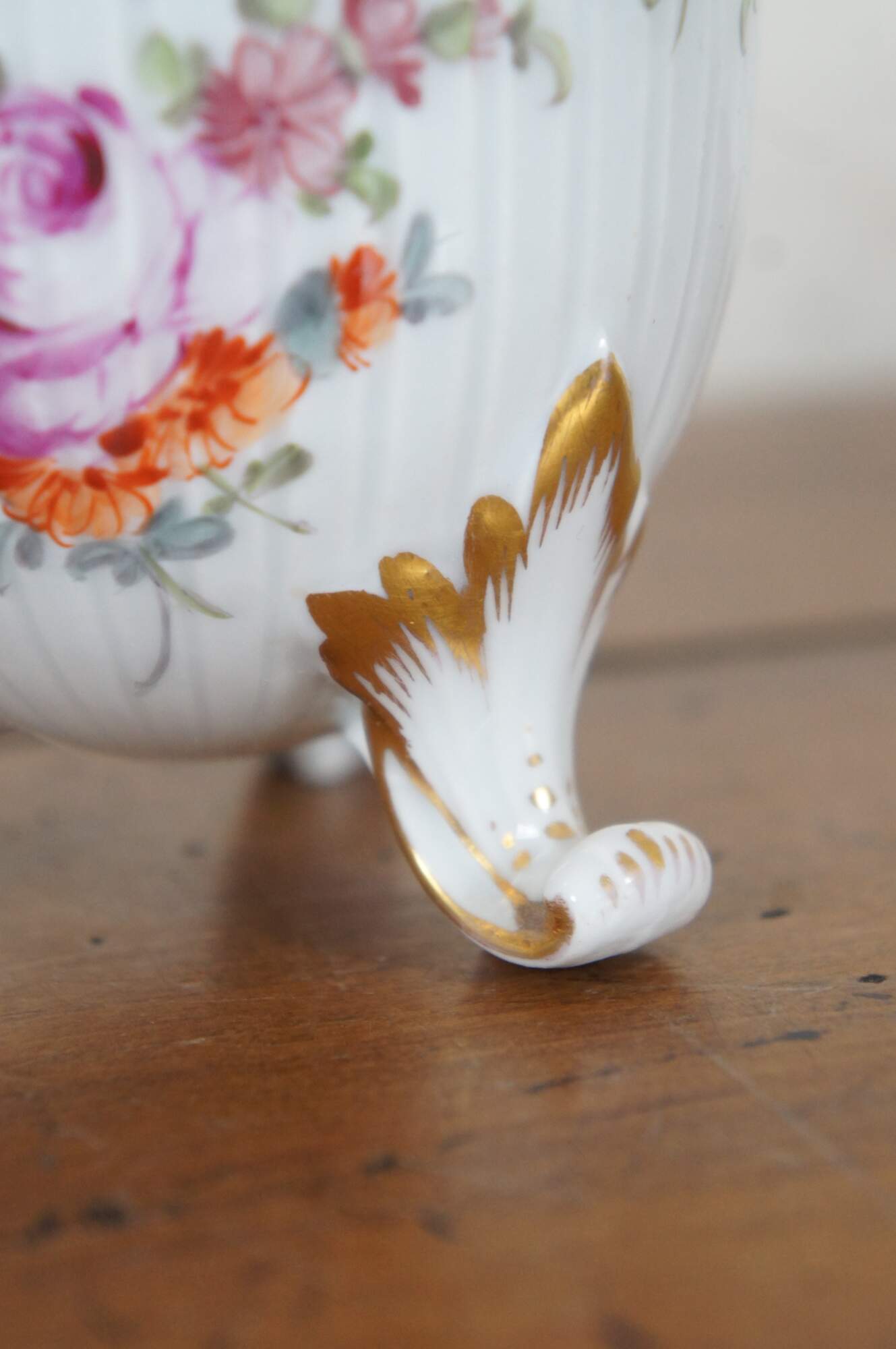 Hand-painted antique Dresden Porcelain with a floral motif and with the Dresden mark on the underside. Beautiful and a perfect example of period Dresden porcelain.