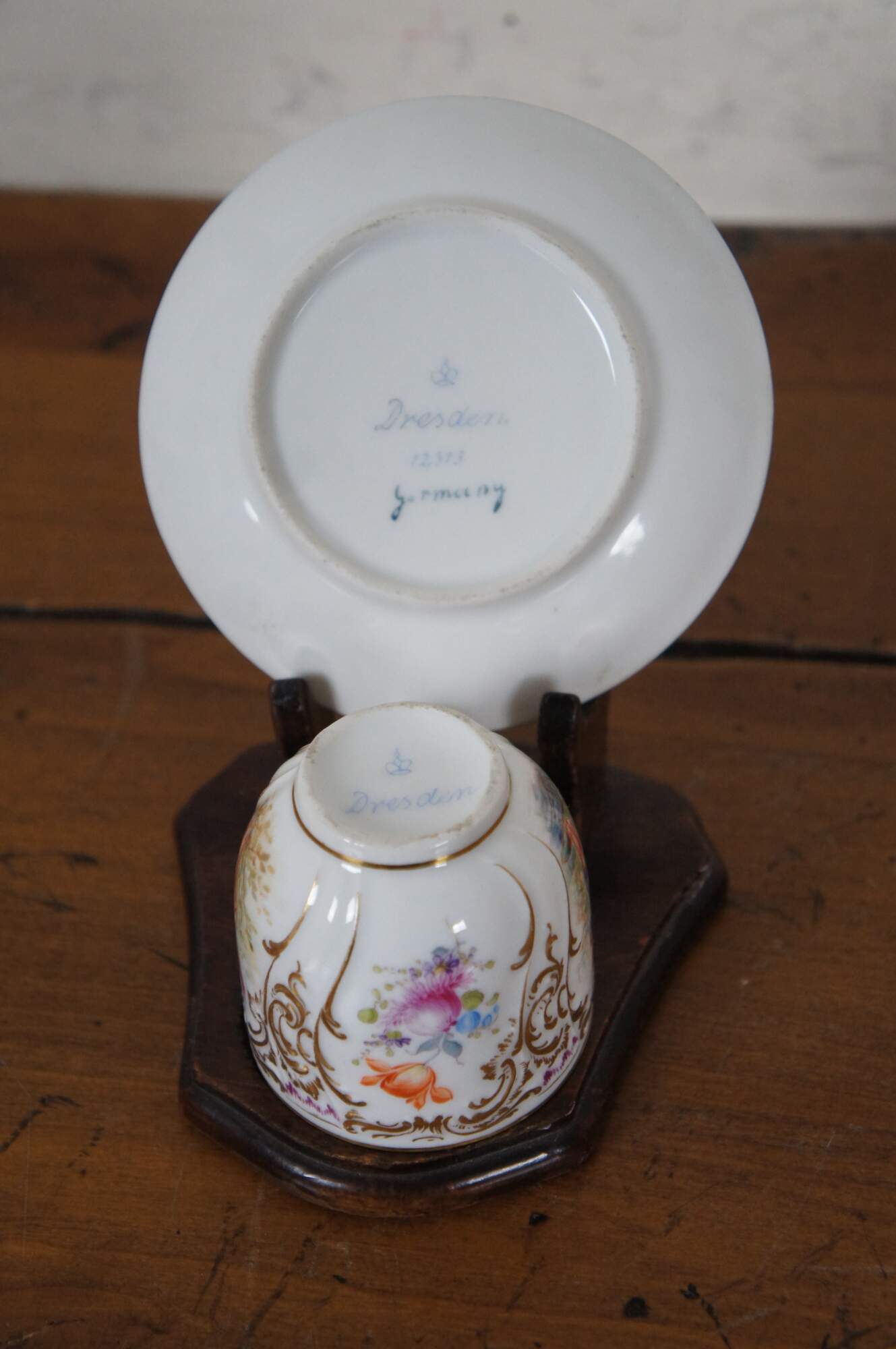 Marked 12373. Includes wooden display stand.