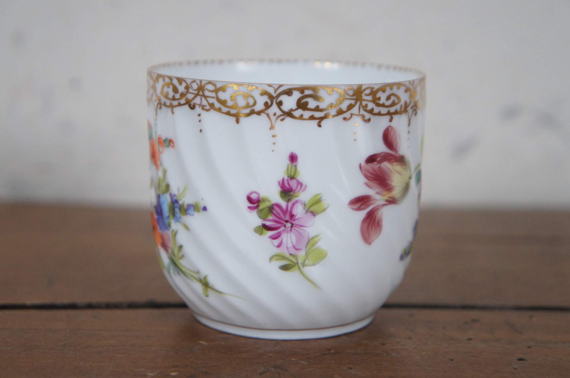 Beginning in the 18th century, Dresden housed over 200 painting shops; but the Dresden style is always associated with wares bearing the blue crown mark first registered in 1883 by Richard Klemm (Karl Richard Klemm, located in Striesen and founded in 1869. The Klemm Dresden crown was registrered in the RWZR under number 24), Donath & Co. ( Donath & Co, located in the Wachsbleichstrasse 25 and founded in 1872. The Donath Dresden crown was registered in the RWZR under number 25), Oswald Lorenz Oswald Lorenz, located in Dresden as a commission agent. The Lorenz Dresden crown was registered in the RWZR under number 26), and Adolph Hamann (Adolf Hamman, located in the Serrestrasse 8 and founded in 1866. The Hamman Dresden crown was registered in the RWZR under number 27). The style they employed used a mixture of Meissen and Vienna flower and figure painting. Dresden decorators were the first and most successful to employ the style on dinnerware decorated with elaborate and fanciful designs using a profusion of foliage, flowers, fruits, shells and scrolls. All the above studios were decorating porcelain in the style; and marking their pieces with the same Dresden crown mark. It is nearly impossible to identify the exact origin of wares produced at this time. After a few years though, each of these studios did register their own specific marks at the RWZR and it became easier to identify individual studios.