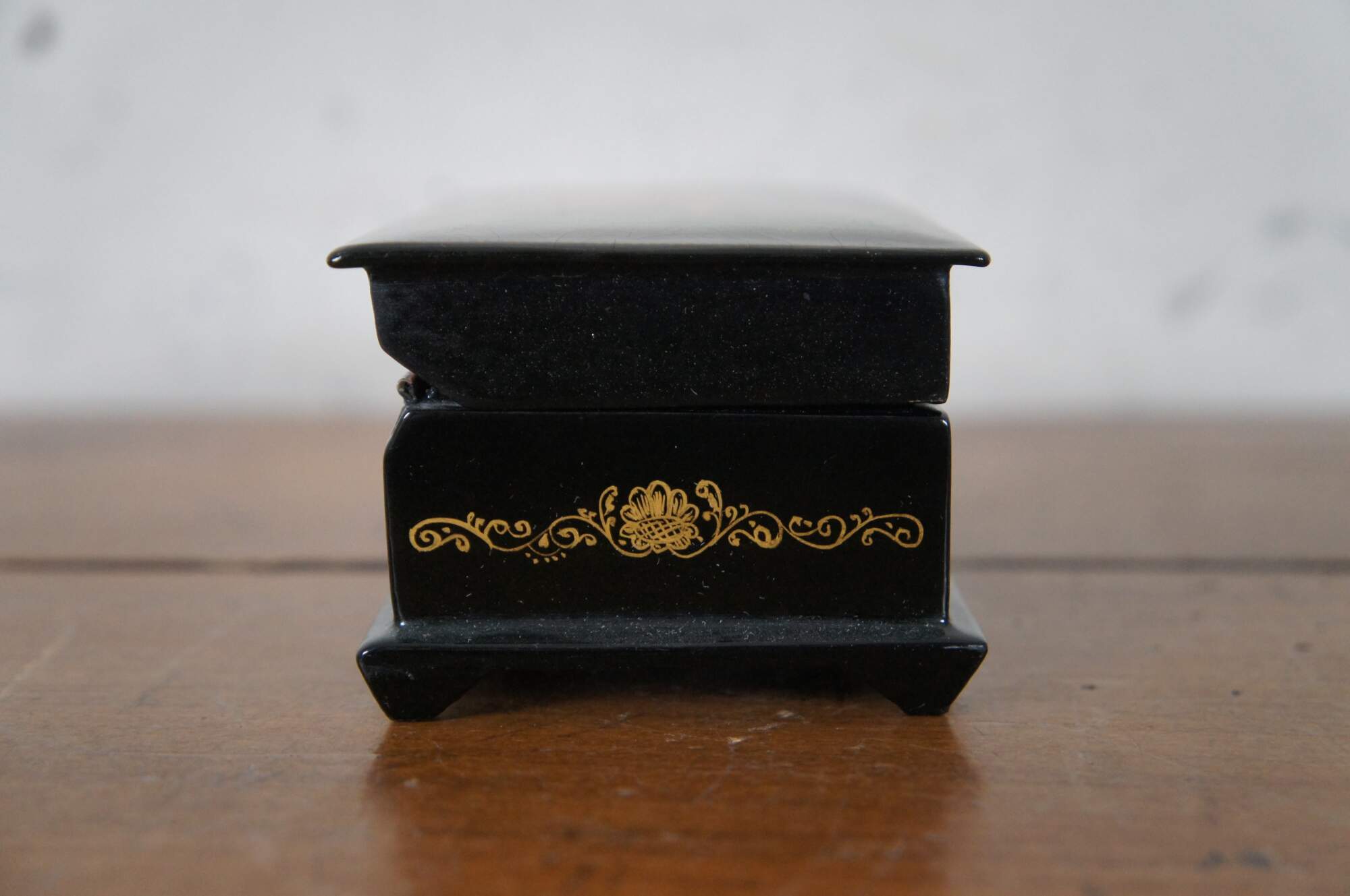 Vintage USSR Russian Firebird folklore / fairy tale keepake trinket box featuring hinged lid, footed base and red interior.