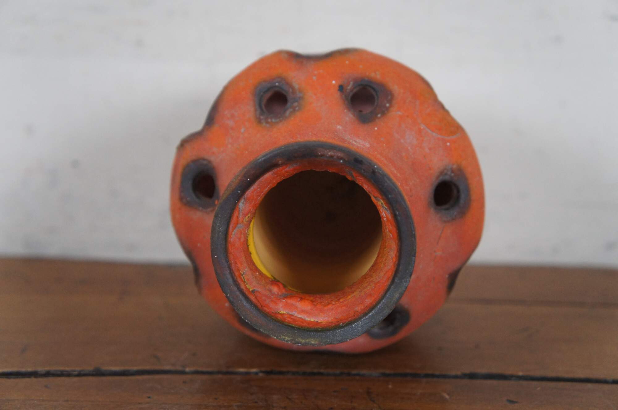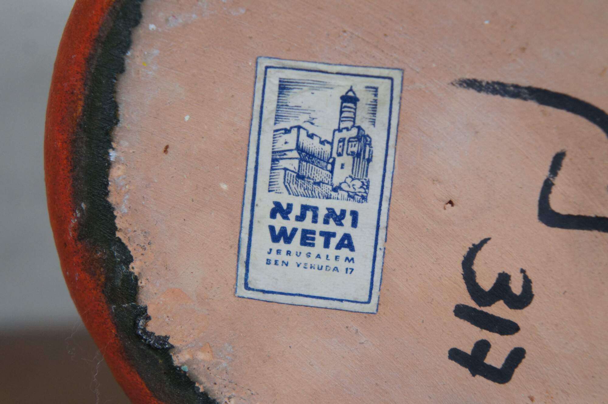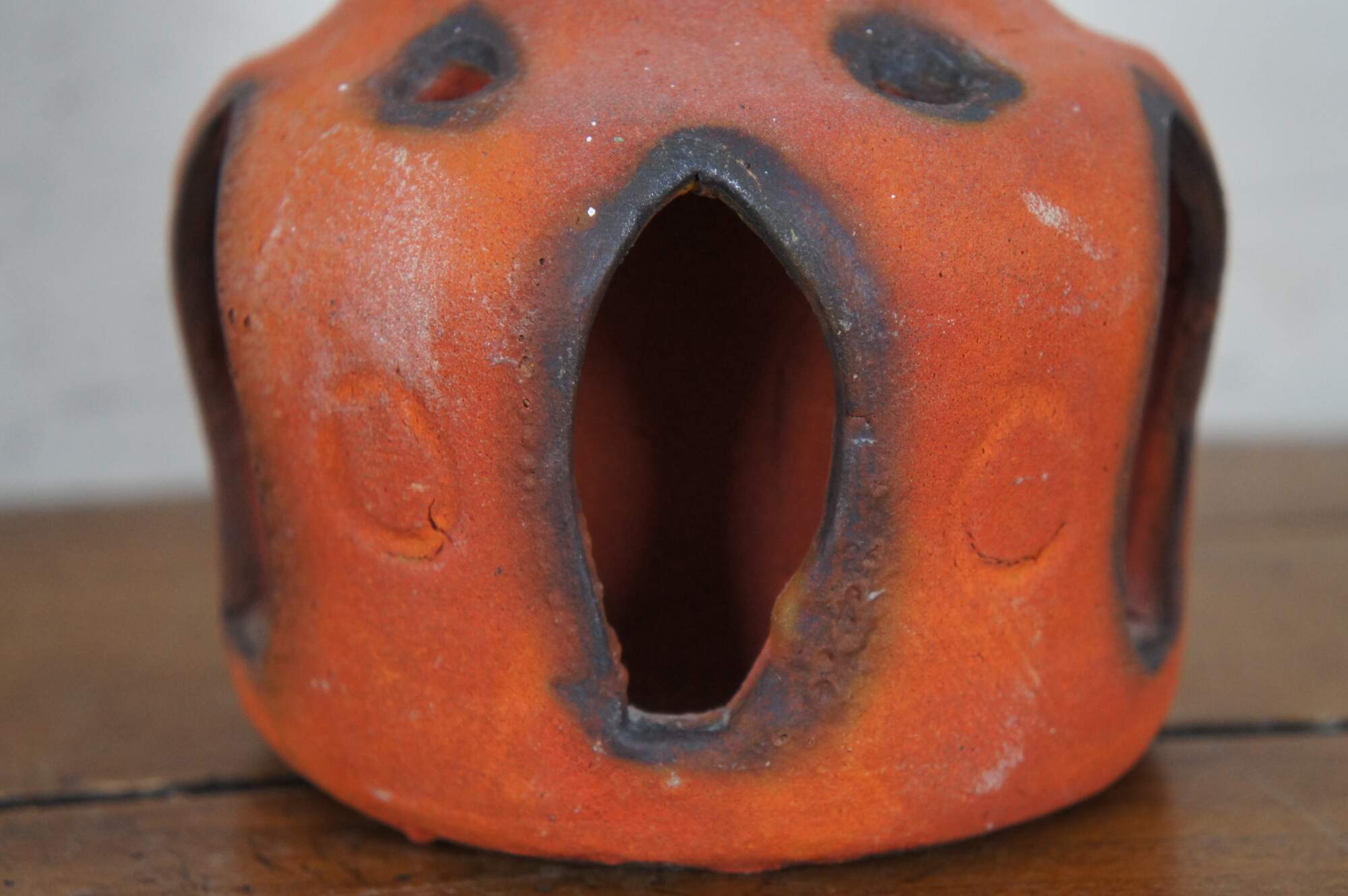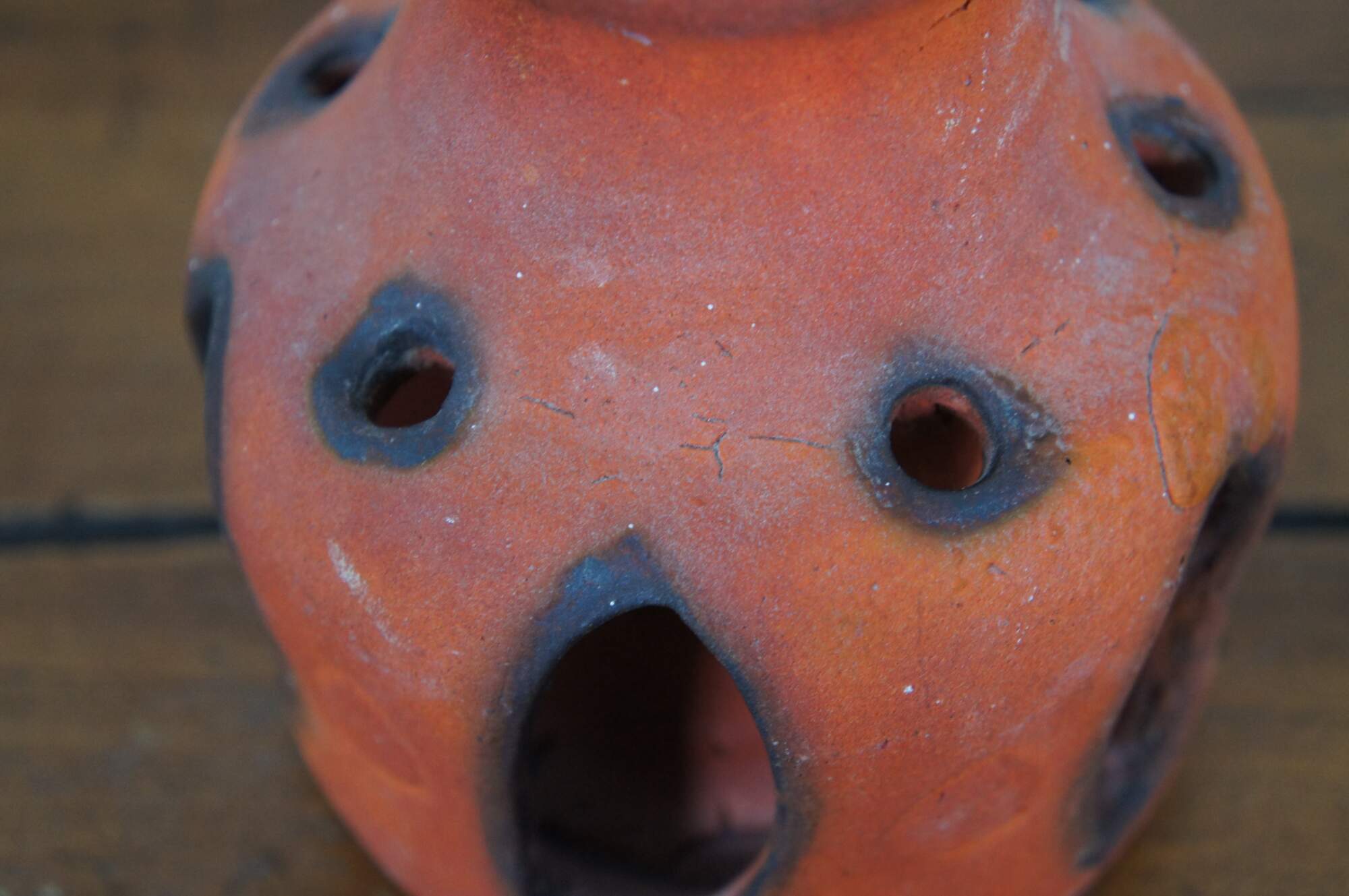 Vintage Israeli earthenware art pottery vessel or bud vase featuring reticulated / pierced / open design in the form of a votive. Purchased on Ben Yehuda Street 17. Weta.