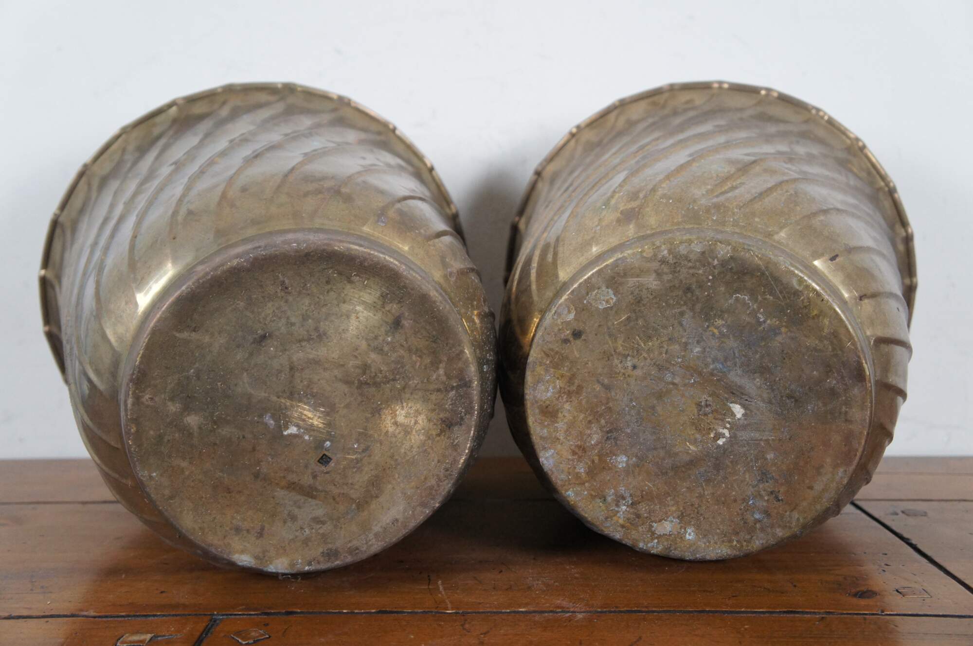 Two vintage brass planters / cachepots or garbage / trash cans featuring sprial design with flared rim. Made in India.