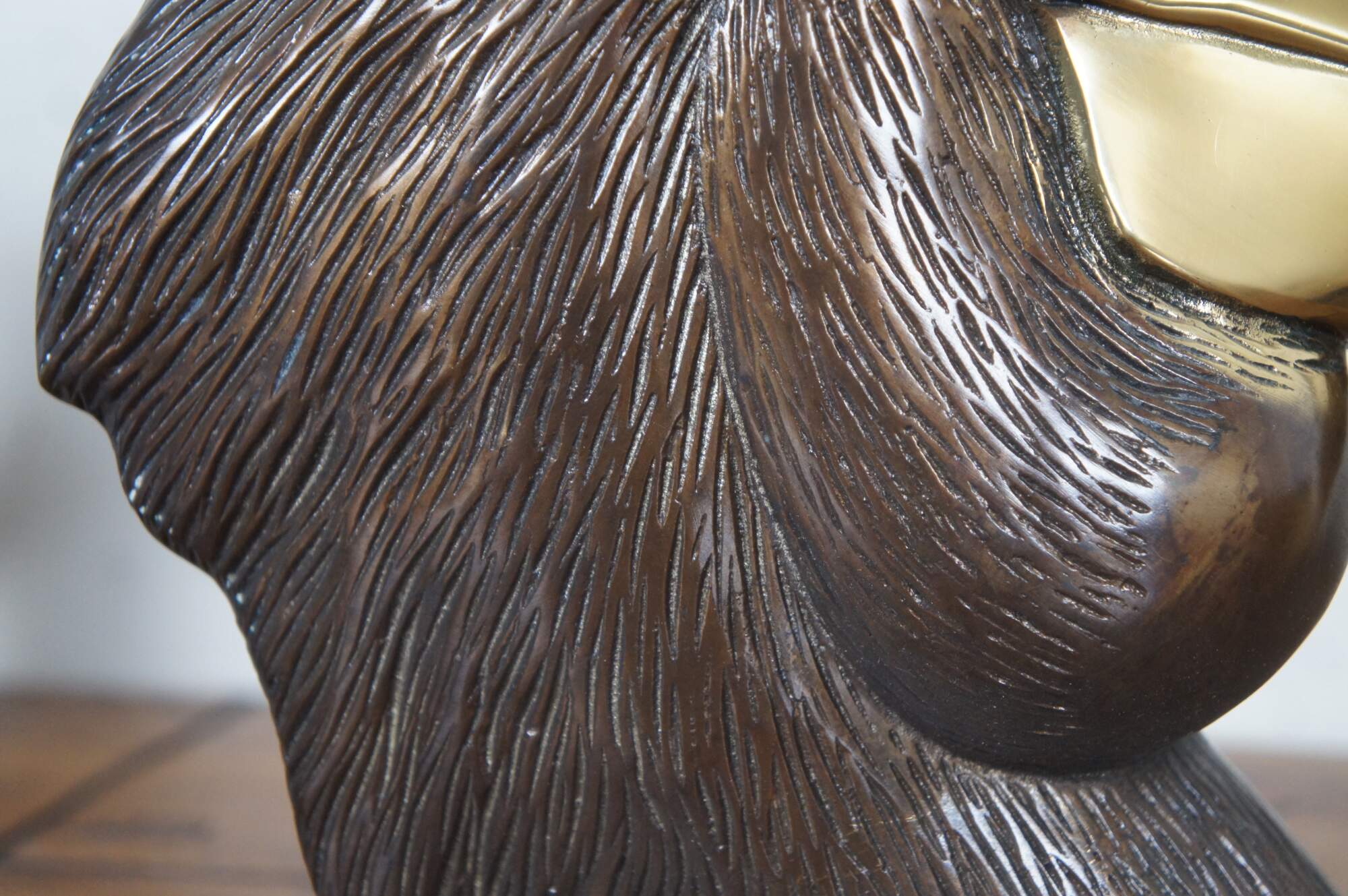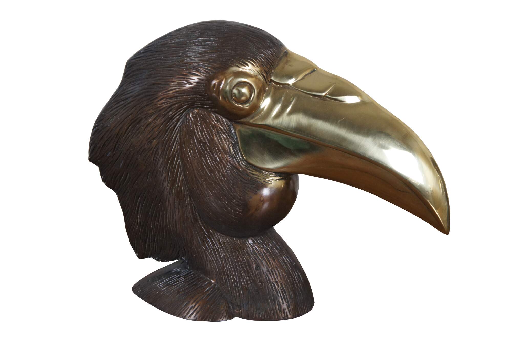 Impressive mid century pair of brass Hornbill Toucan bird bookends or sculptures. Made in Taiwan, Republic of China.