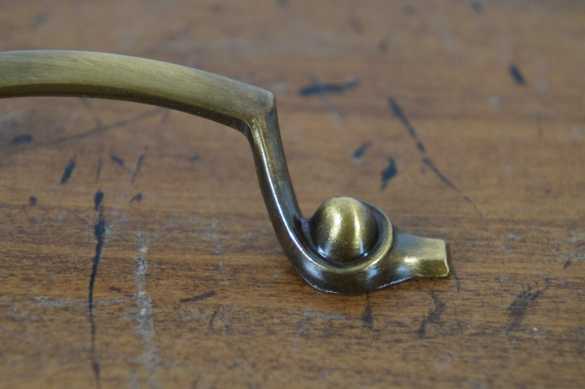 5 Available – Vintage National Lock Co Medalst “Contract-Pak,” hardware item number C283 “Colonial Classic” drawer pulls, die cast in a slightly bowed rectangular shape with studded corners, in an Antique Brass finish (no. 4A). 61-762, 3" center hole, 4.1" length.