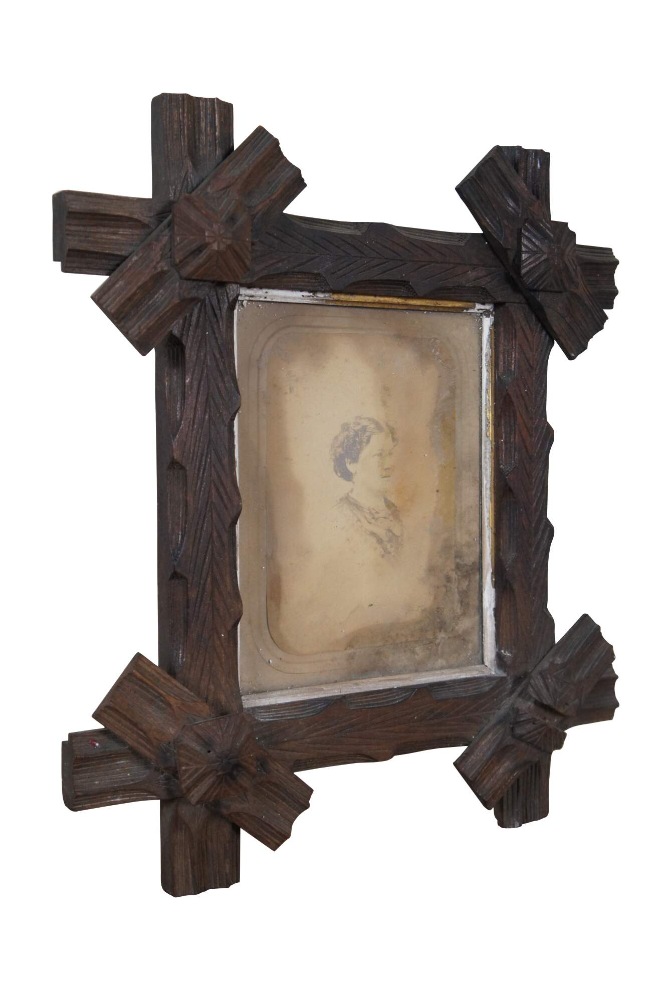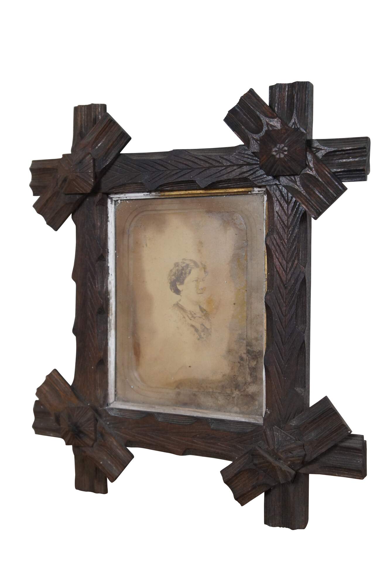 Antique Victorian Adirondack framed photograph portrait of a female.