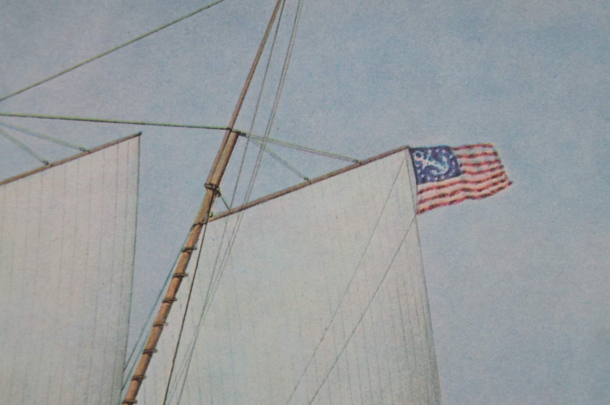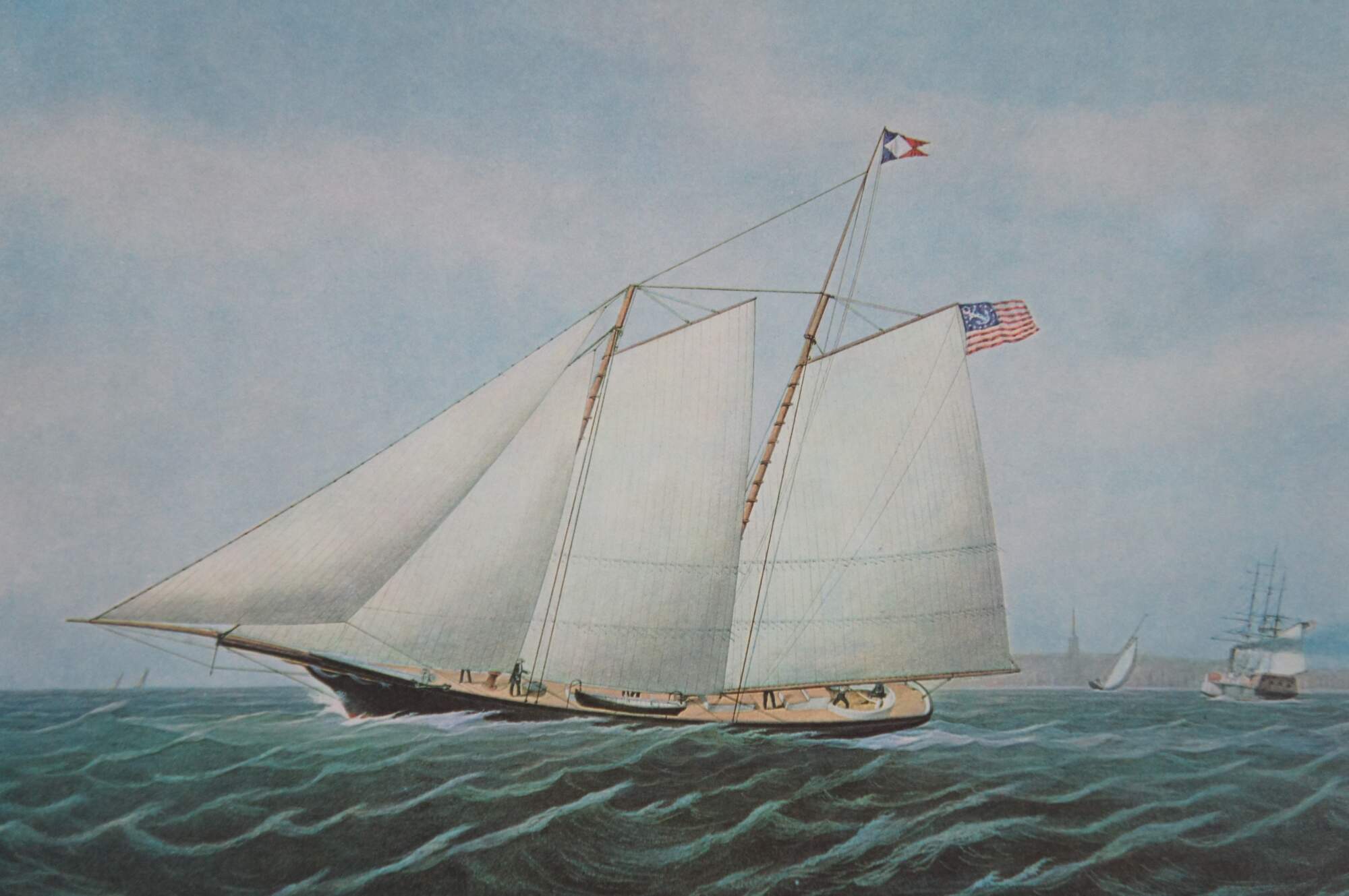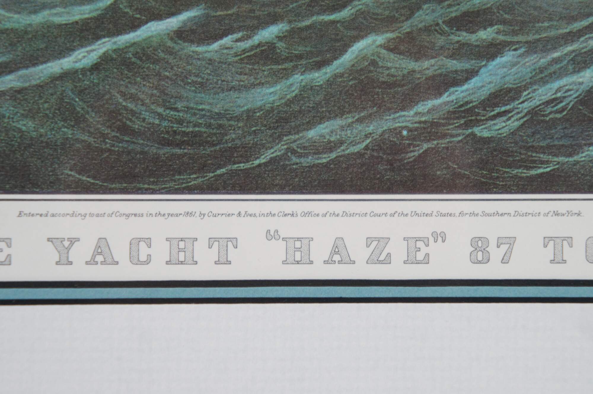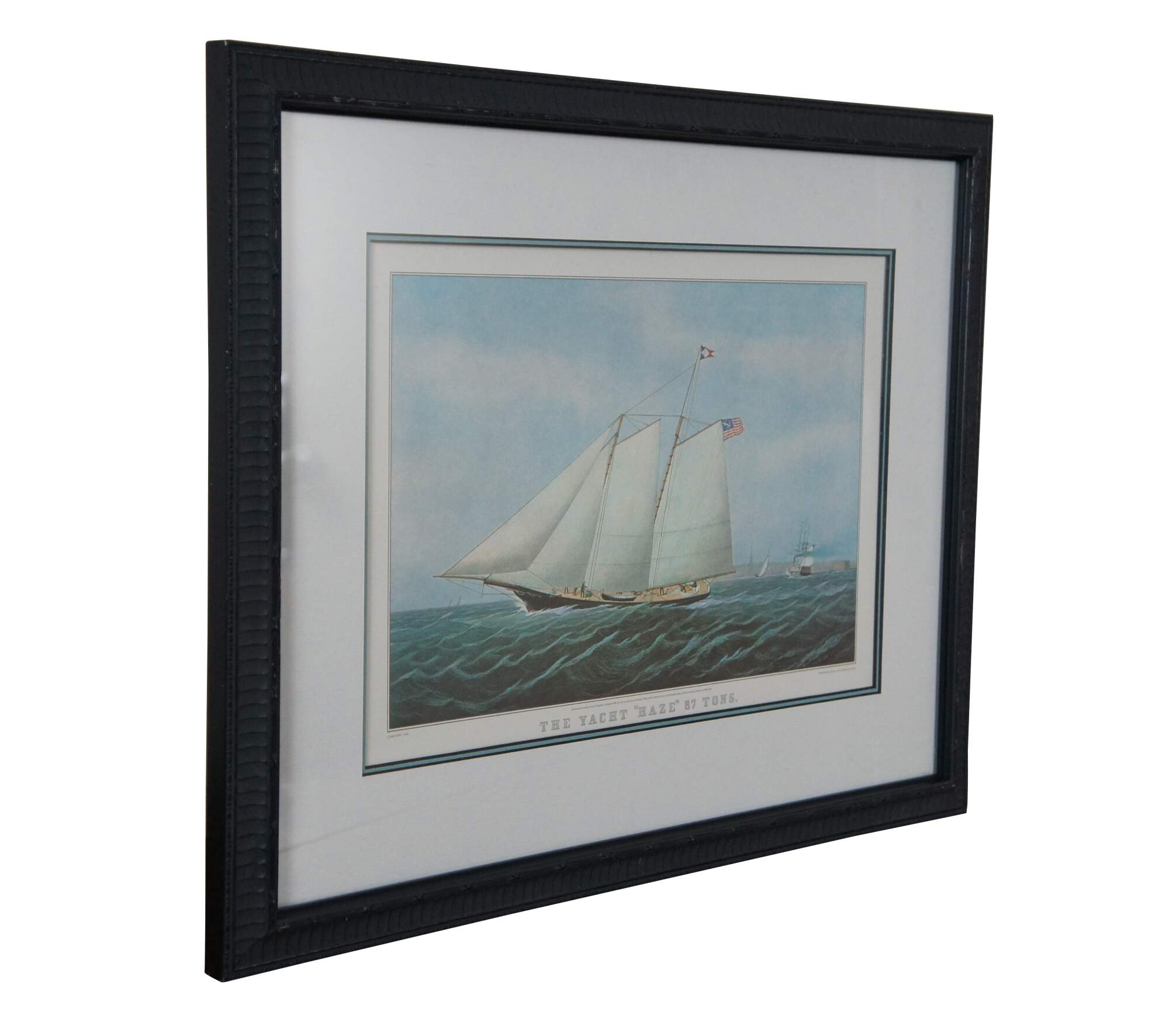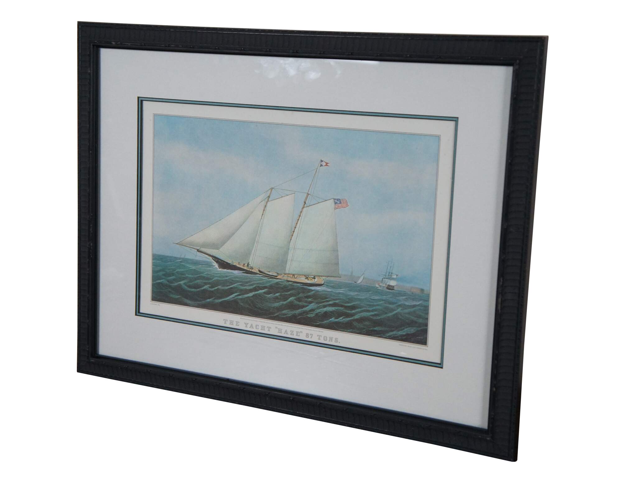 Vintage framed print of “The Yacht ‘Haze’ 87 Tons,” originally by C. Parsons, reprinted from the lithograph by Currier and Ives. Built By George Steers New York, 1861.