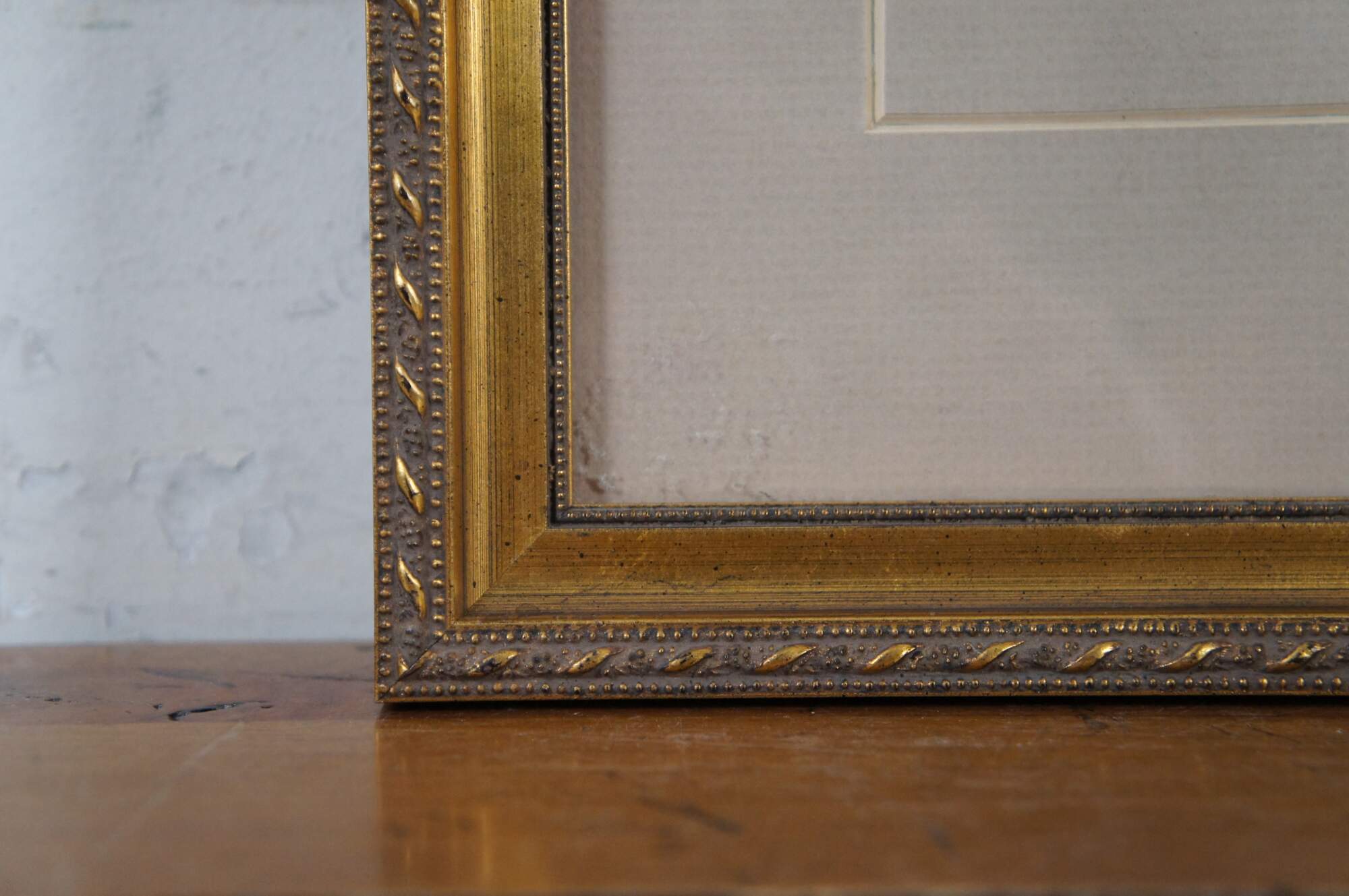 Mid to late 19th century hand colored engraving depicting men and women viewing objects on a table at an auction. Titled New York City - An Auction Sale of Bric-A-Brac From Centennial Exhibition. Published in "Frank Leslie's Illustrated" January 1877. Framed with a unique mat in a gilded frame with beaded and ribbon twist details.