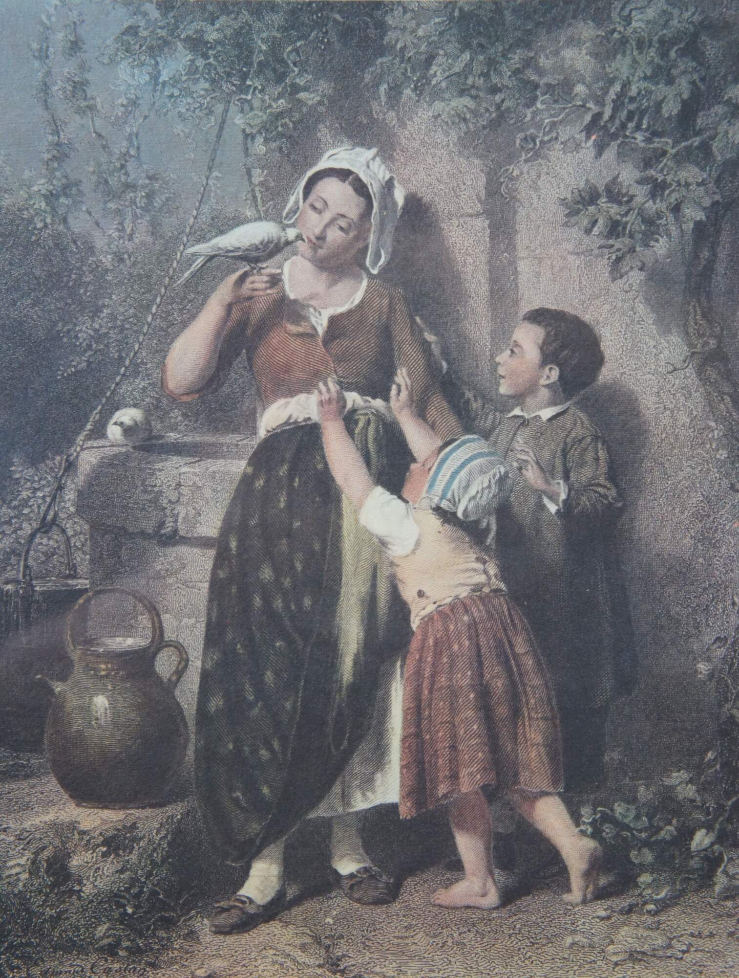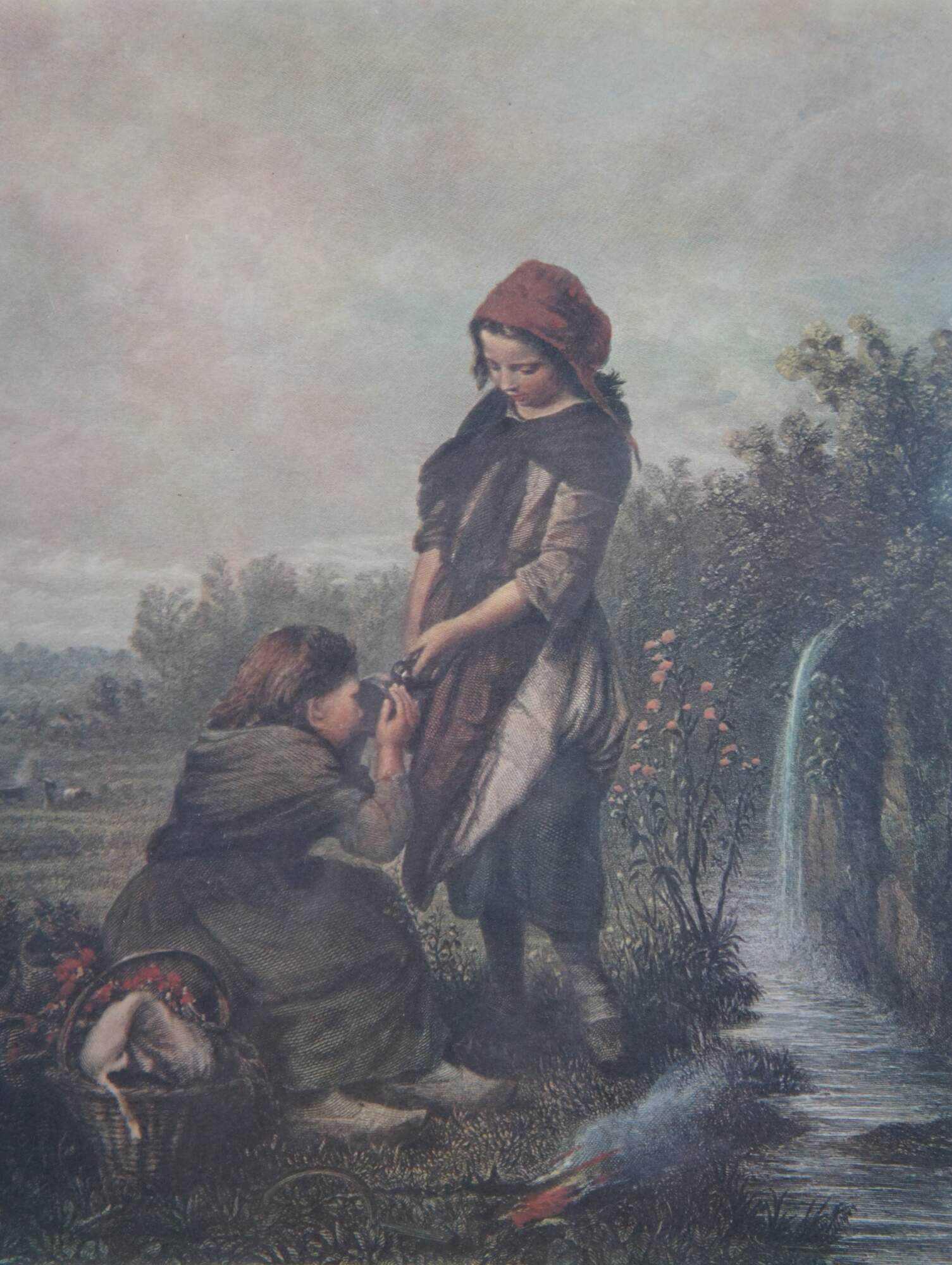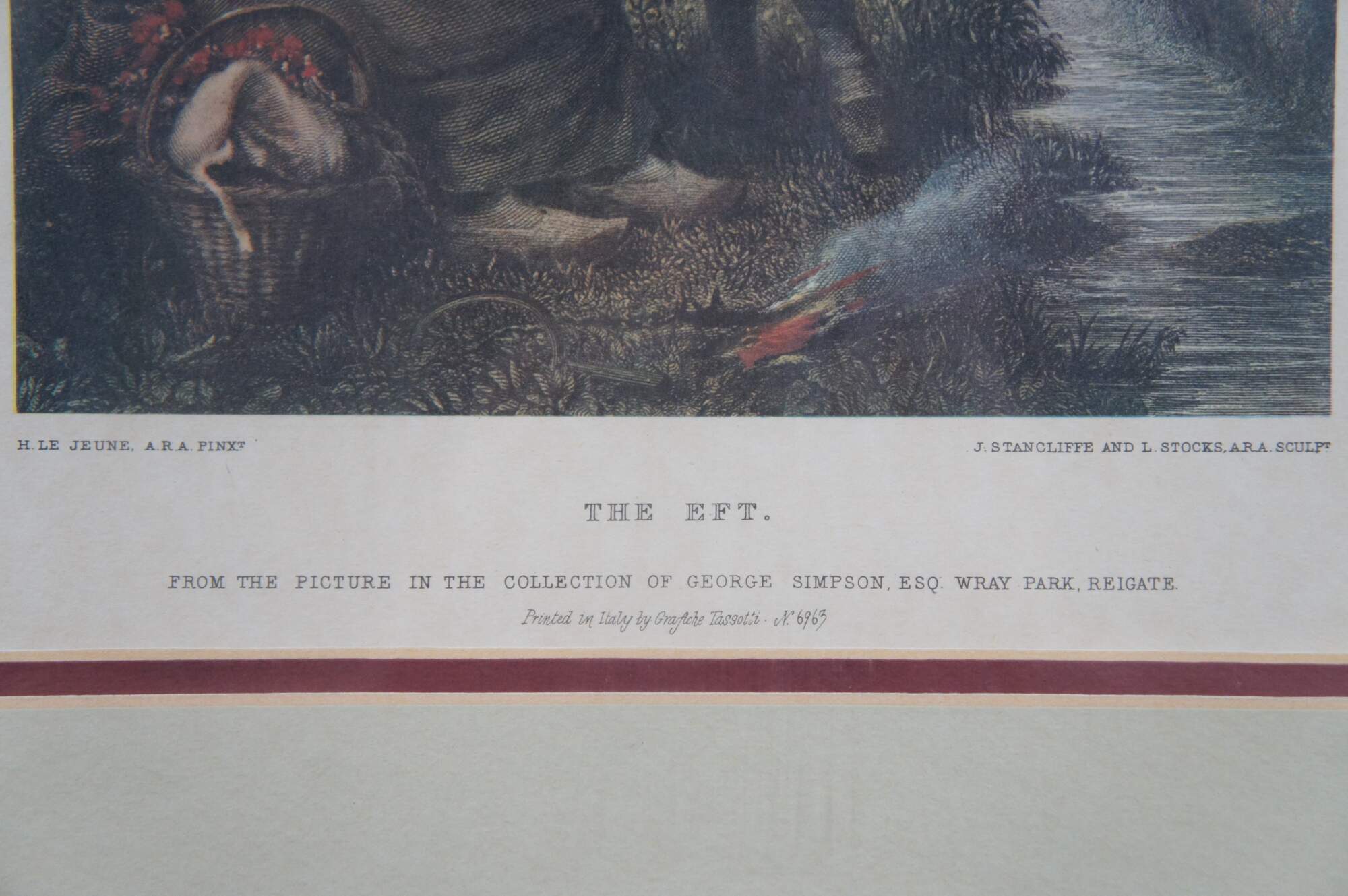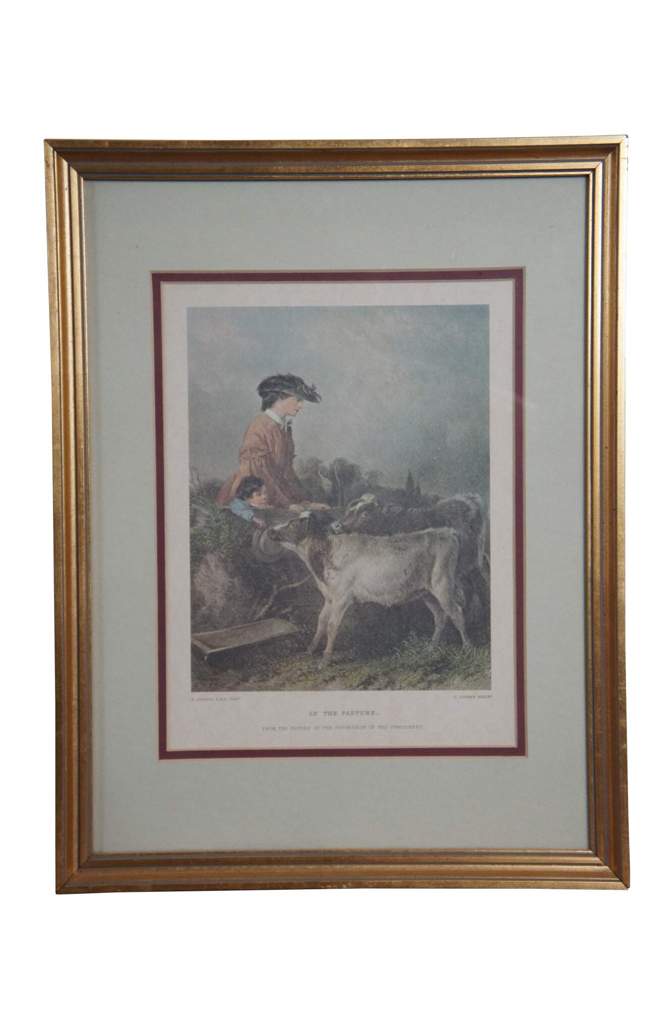 Set of three vintage lithograph prints: "Our Pets" by Edmond Castan, engraved by Thomas Brown for The Art Journal, 1871 / "The Spring" by H. Campotosto (print is incorrectly labeled by the publisher as "The Eft" by H. Le Jeune, engraved by J. Stancliffe and L. Stocks, 1869) / and "In the Pasture" by Richard Ansdell, engraved by C. Cousen for The Art Journal 1869. Printed in Italy by Grafiche Tassotti. Framed by Gargoyles Studio Fine Reproductions of Brooklyn, New York. Item number 1003.