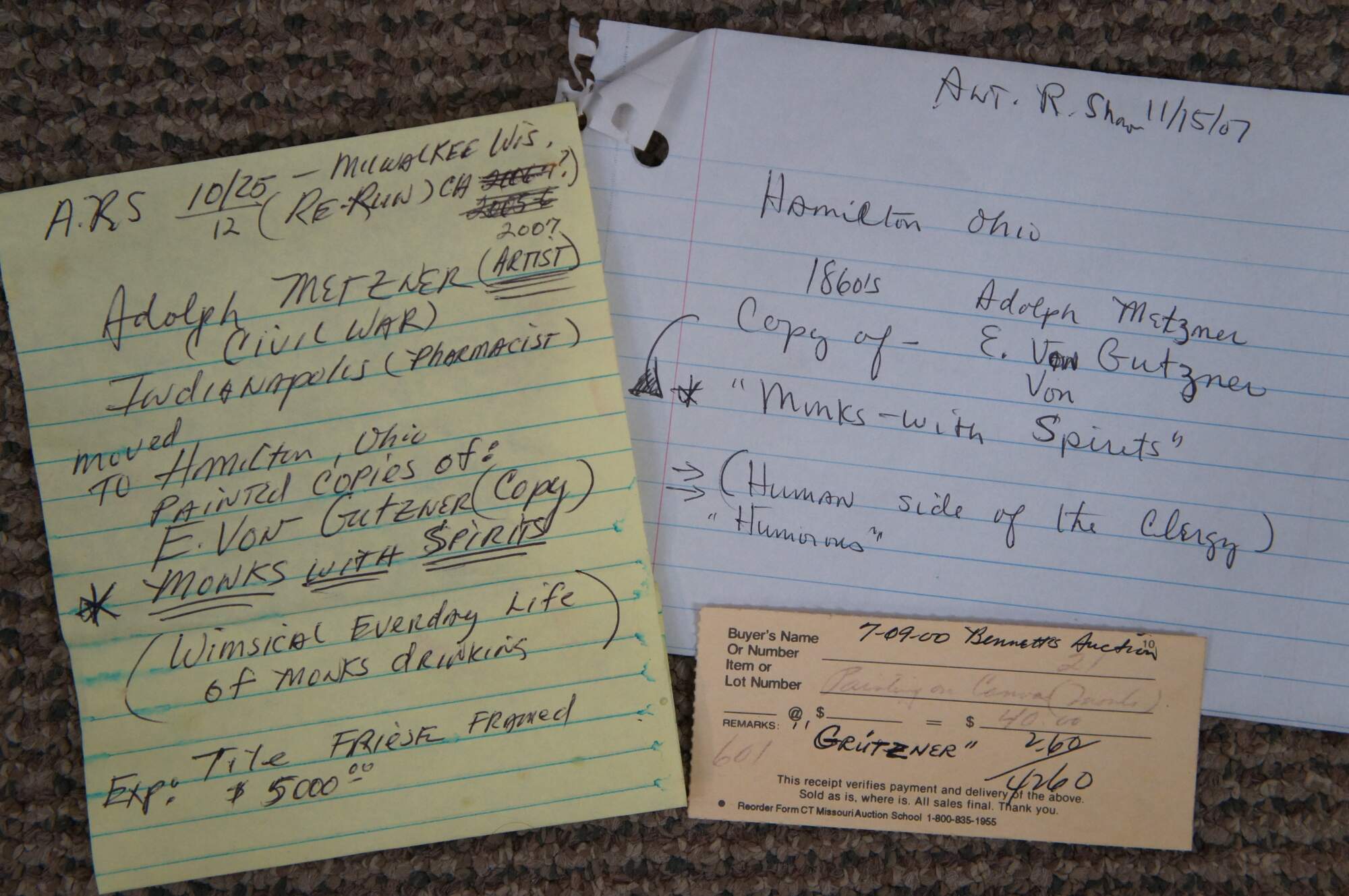 Adolf Metzner was an Indianapolis pharmacist and artist who served in the Civil War and moved to Hamilton, Ohio where he painted copies of Grutzner's whimsical depictions of monks in everyday life.