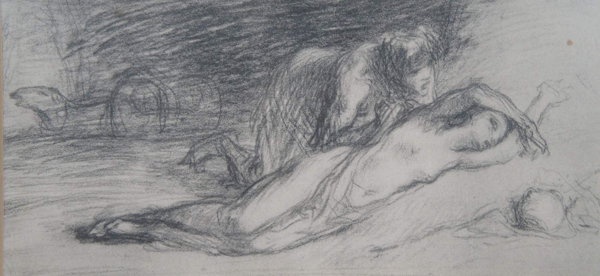 The peasant subjects, which from the early 1850s were to be Millet’s principal concern, made their first important appearance at the Salon of 1848 with The Winnower, later destroyed by fire. In 1849, after a period of great hardship, Millet left Paris to settle in Barbizon, a small hamlet in the forest of Fontainebleau.