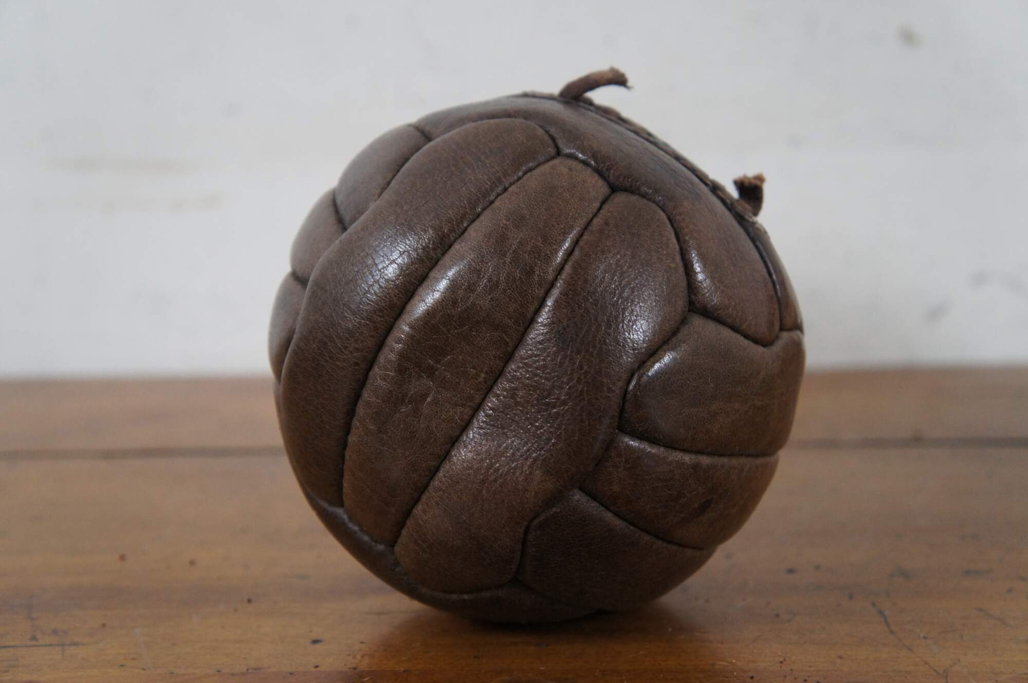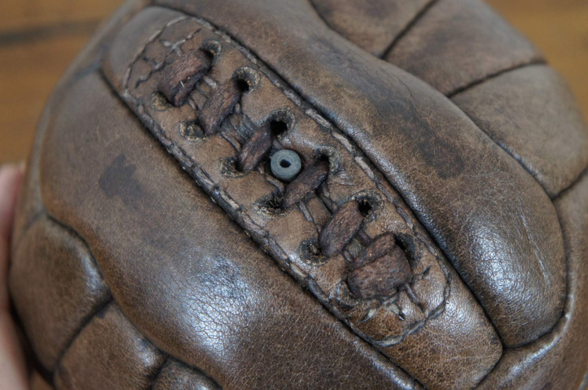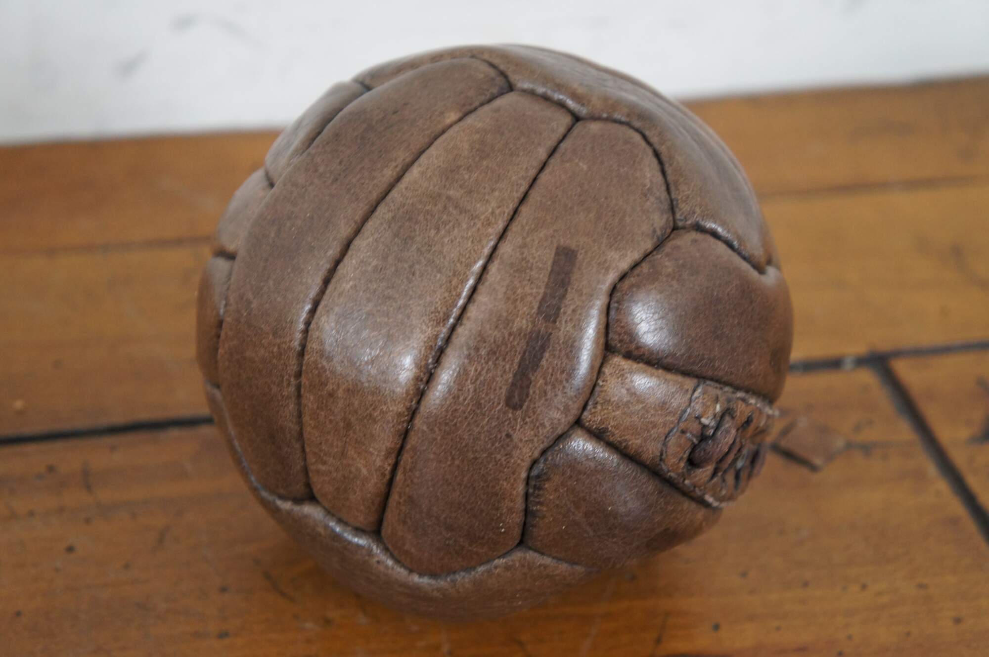 Pair of circa 1930s brown leather footballs / soccer balls manufactured by Mark Cross Company. Made in England.