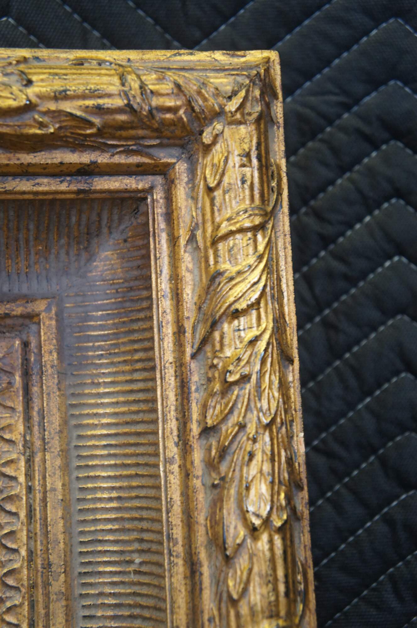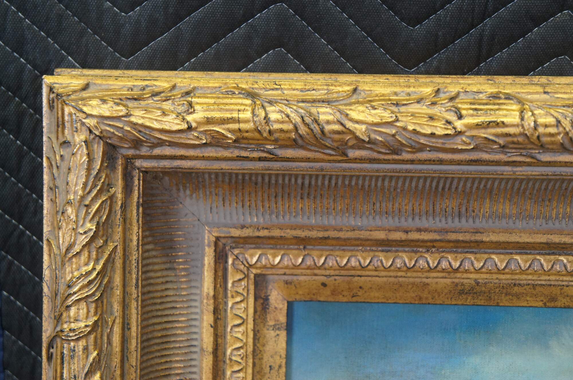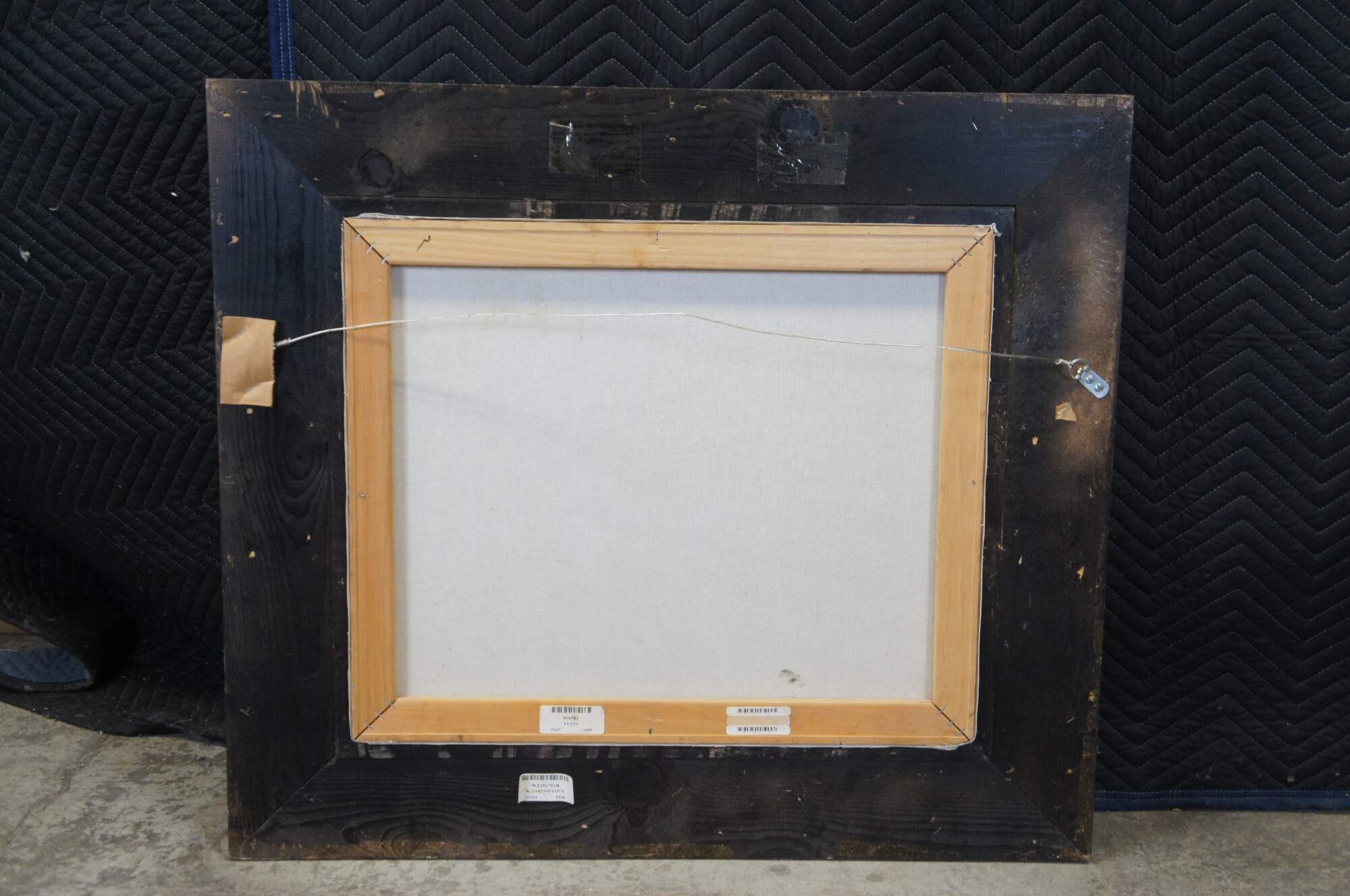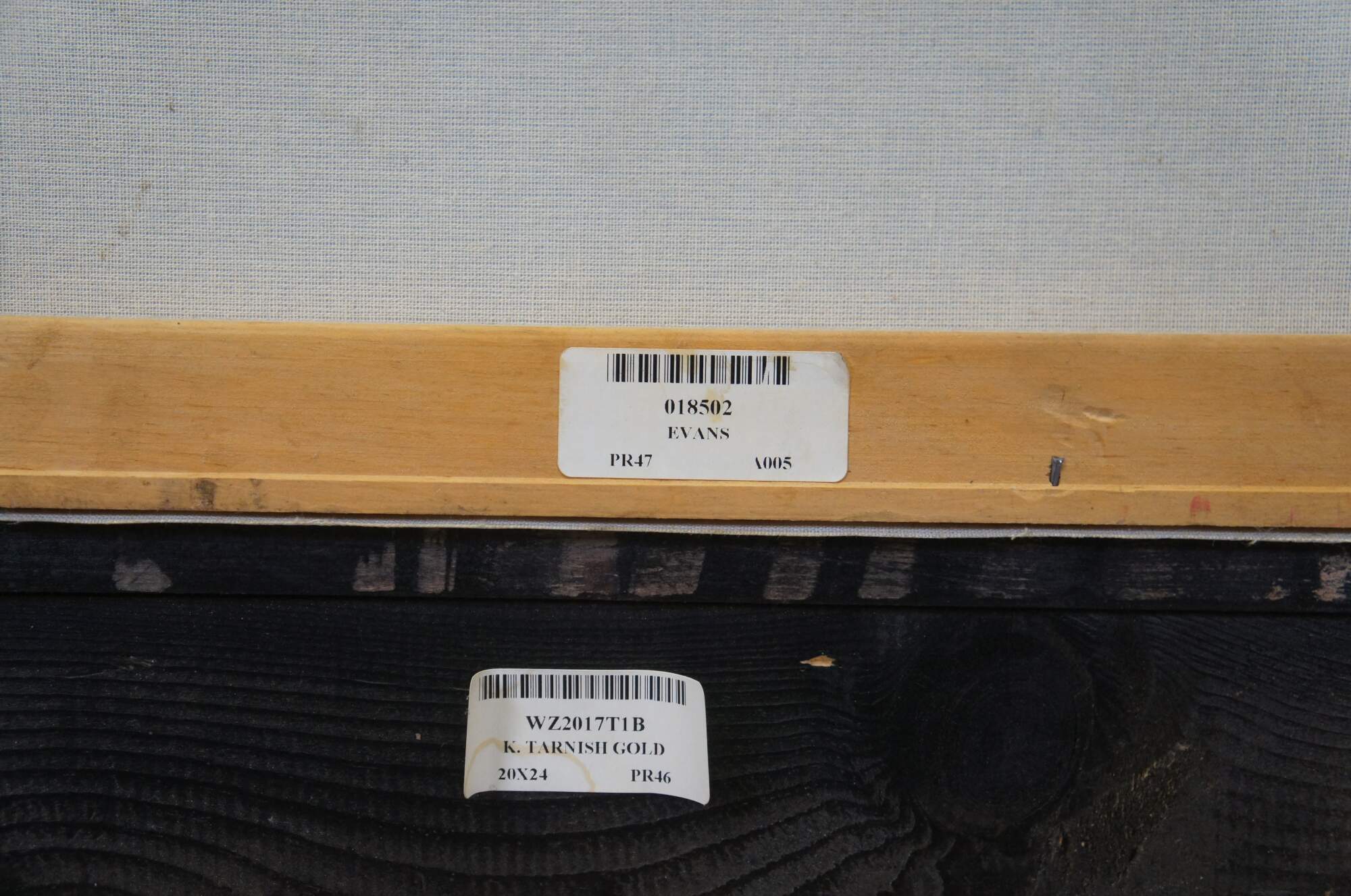Vintage Evans oil painting on canvas featuring a pair of two pointing hunting dogs / foxhounds in the field / countryside. Signed lower right. Framed in gold frame with leaf design.