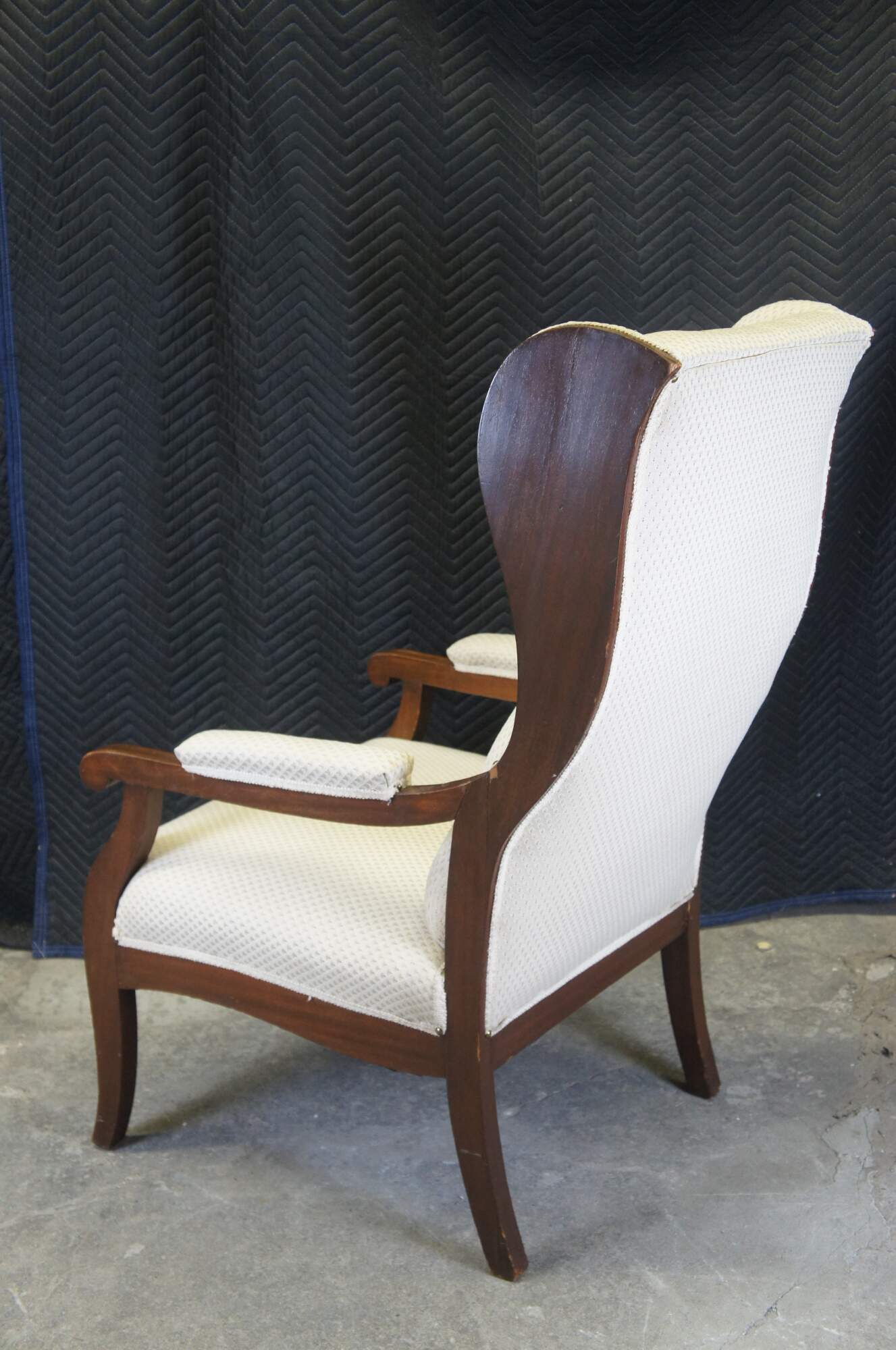 Antique mid to early 19th century German Biedermeier library / lounge armchair. Made of mahogany featuring traditional form with fauteuil padded arms and flared ear / wing back with great lumbar / lower back support. From Hamburg Germany.