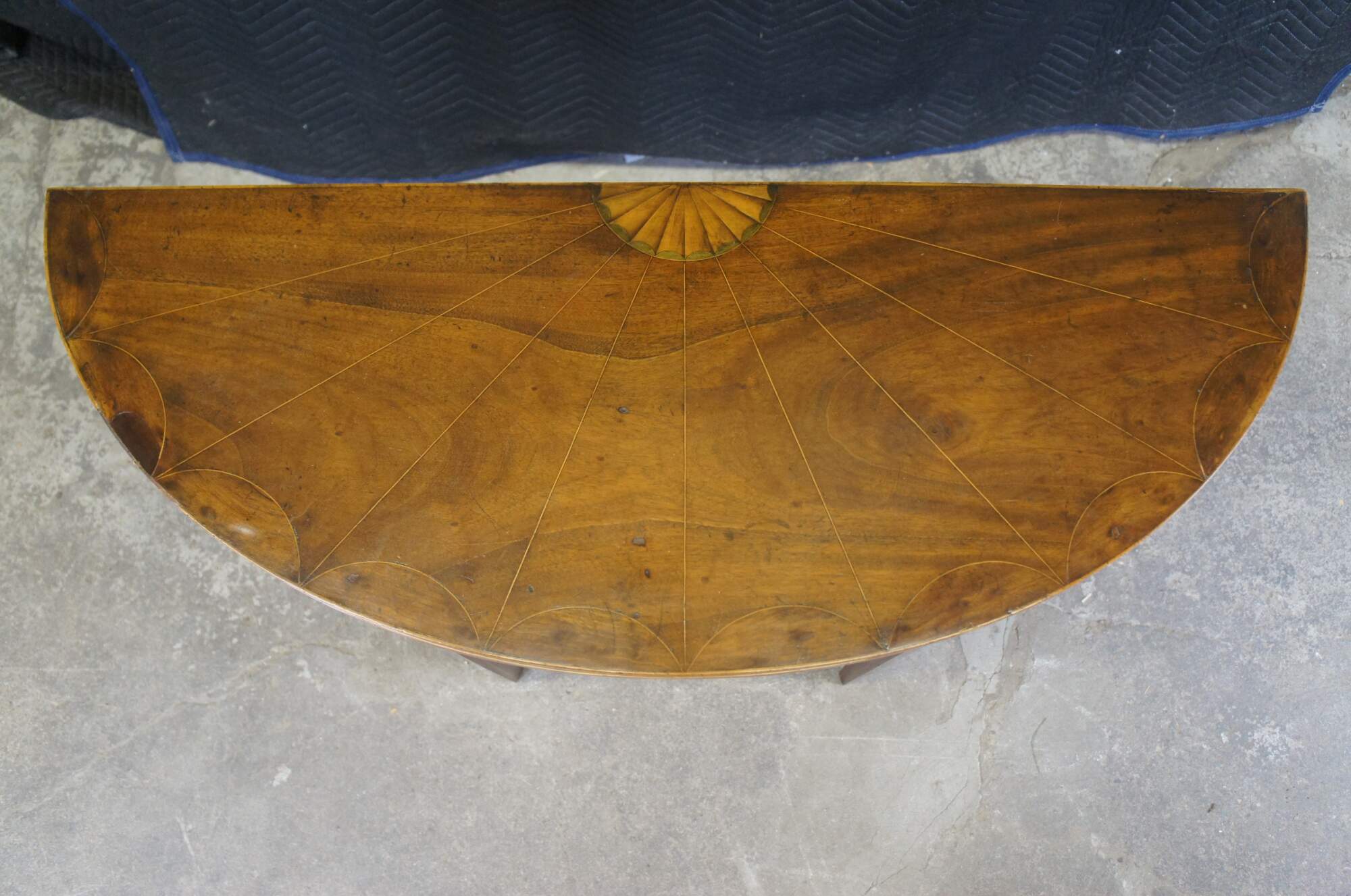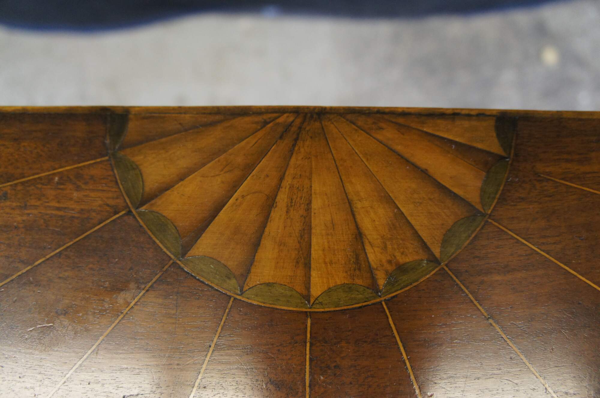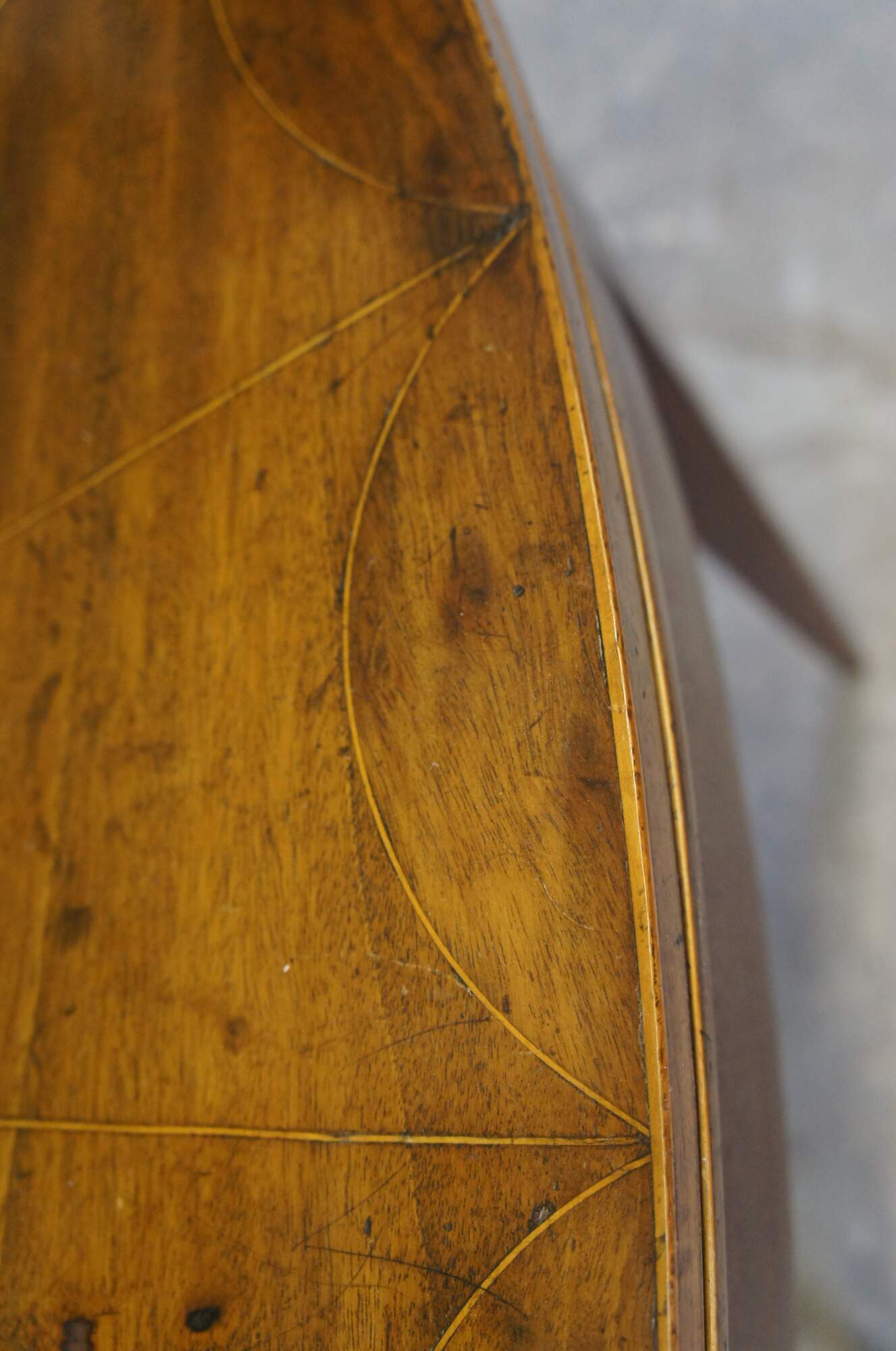 Good antique condition, wear and distressing commensurate with age and use, fading, warping, veneer wear, marking, edge wear.