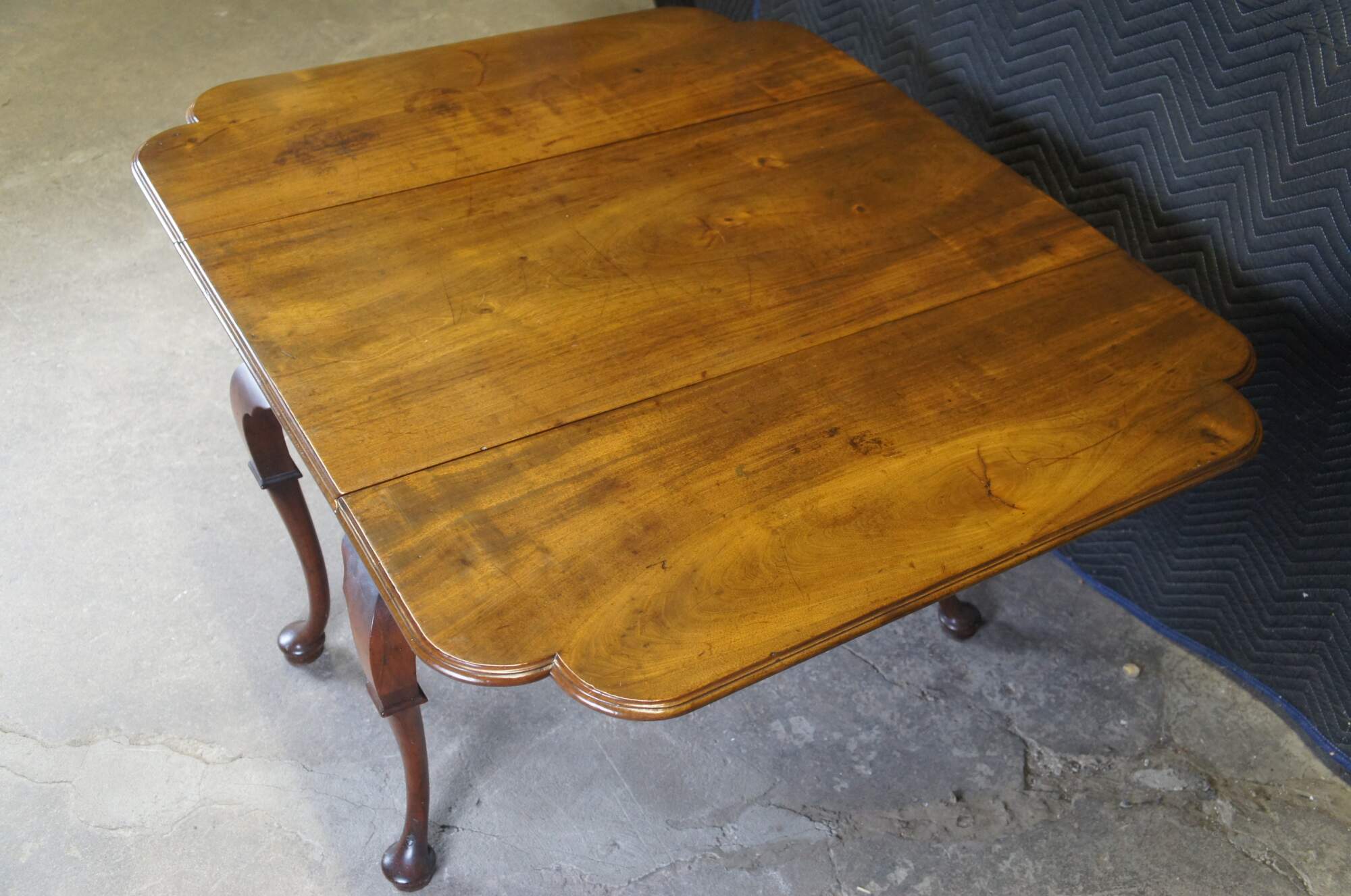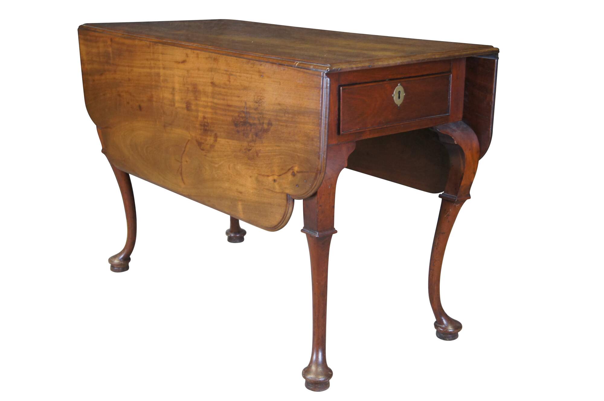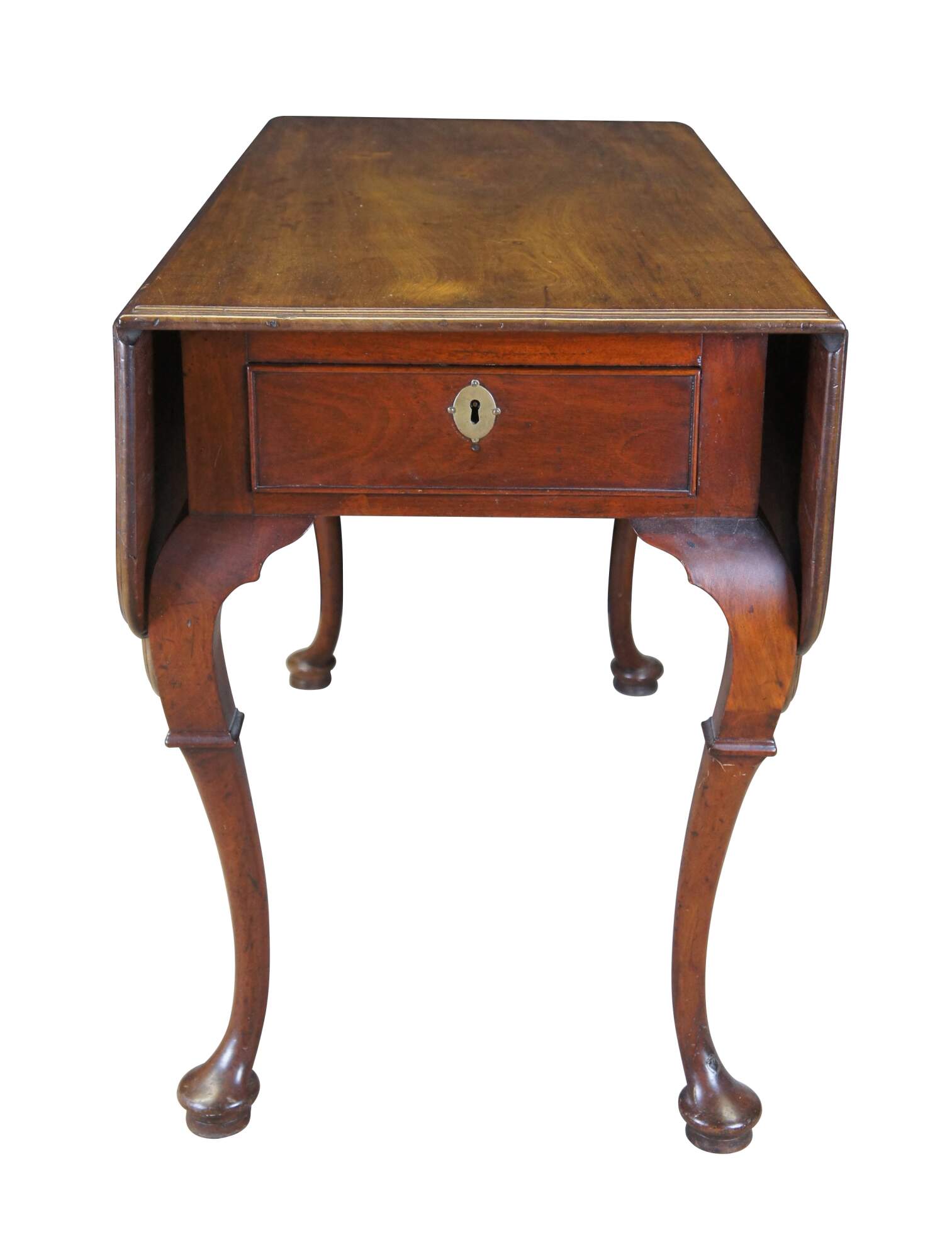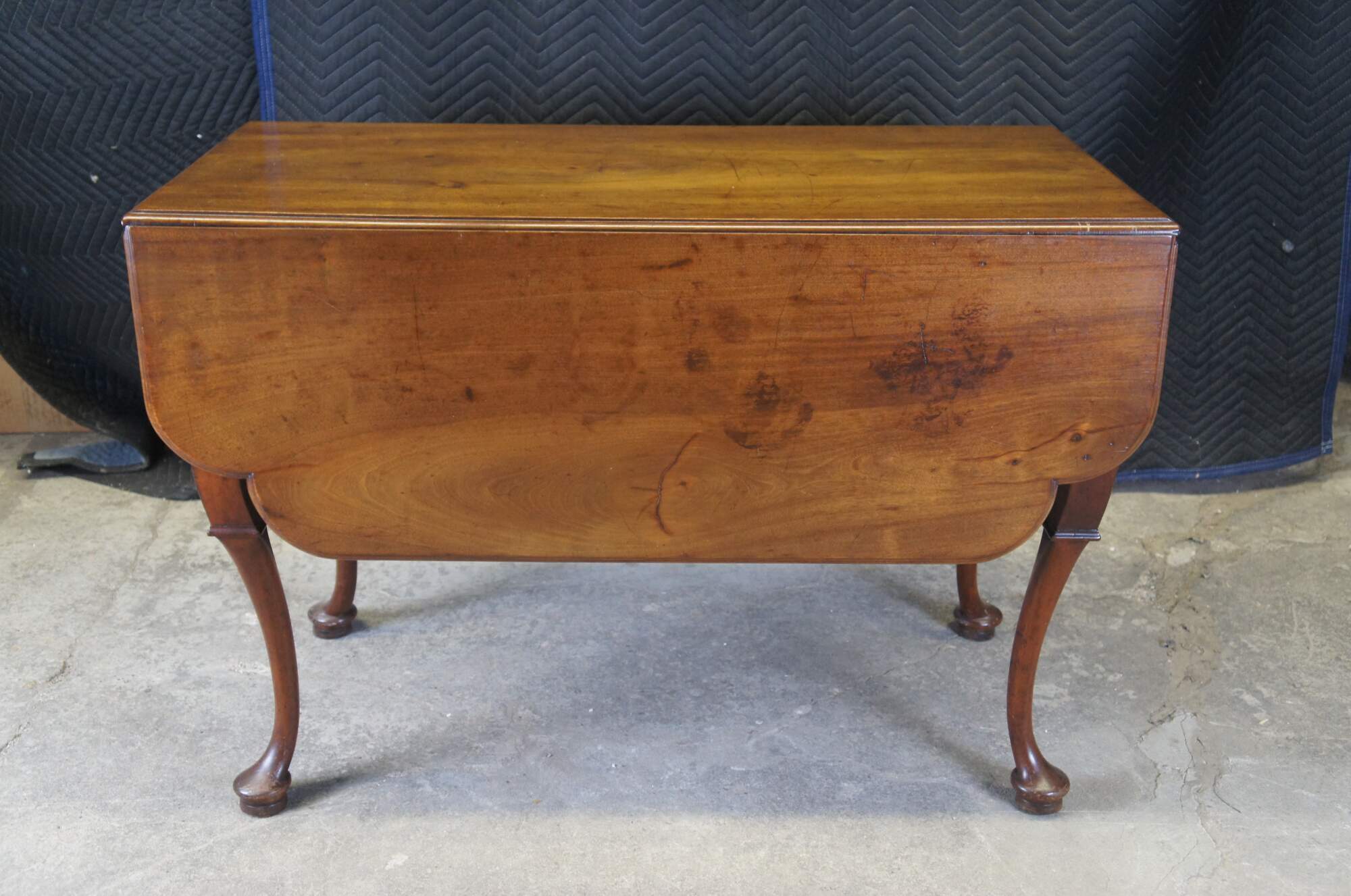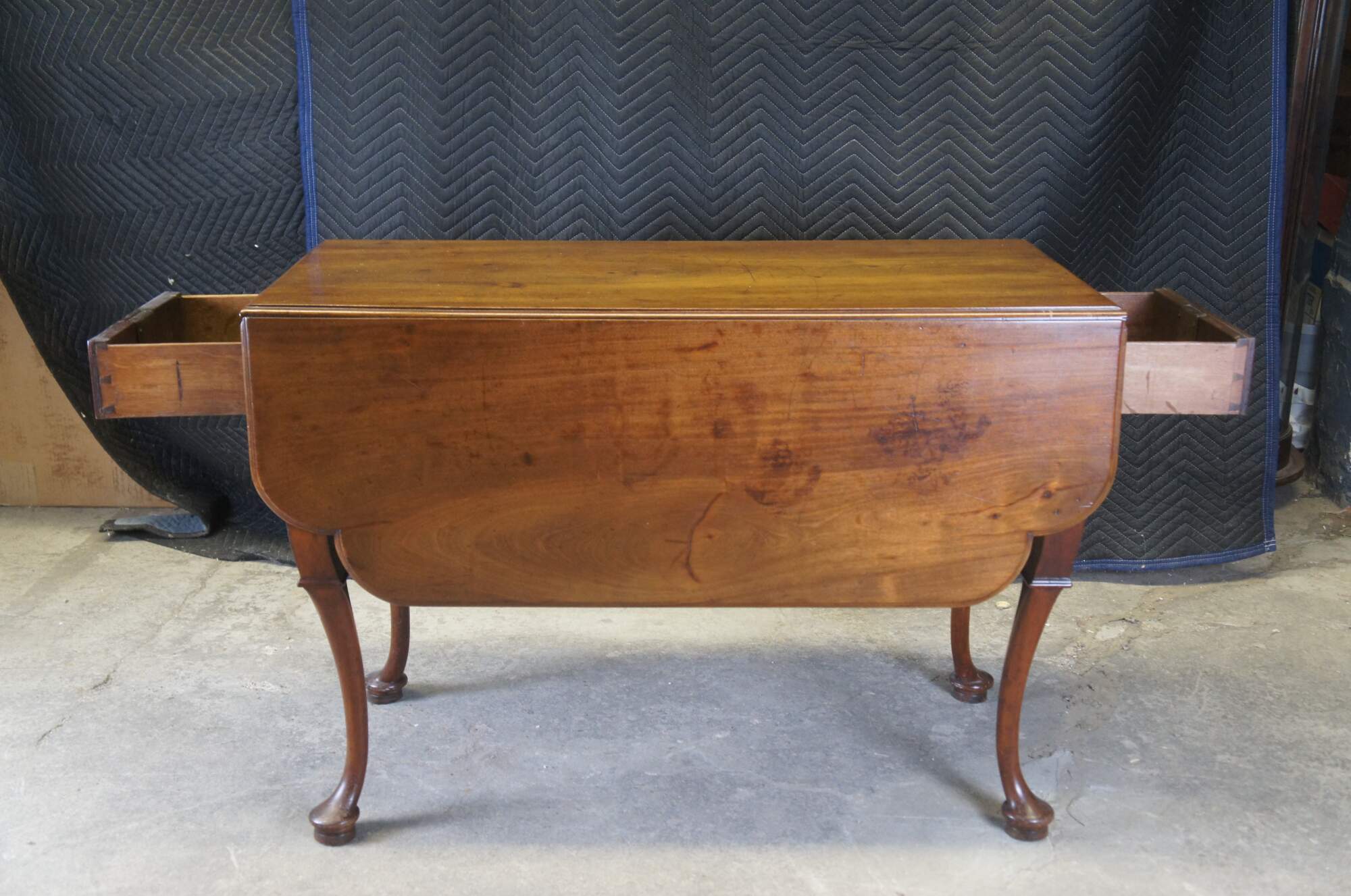 Antique 18th century George II style mahogany drop leaf library / breakfast console table. Made of mahogany featuring large notched leaves with double sided drawers and cabriole pad foot legs.