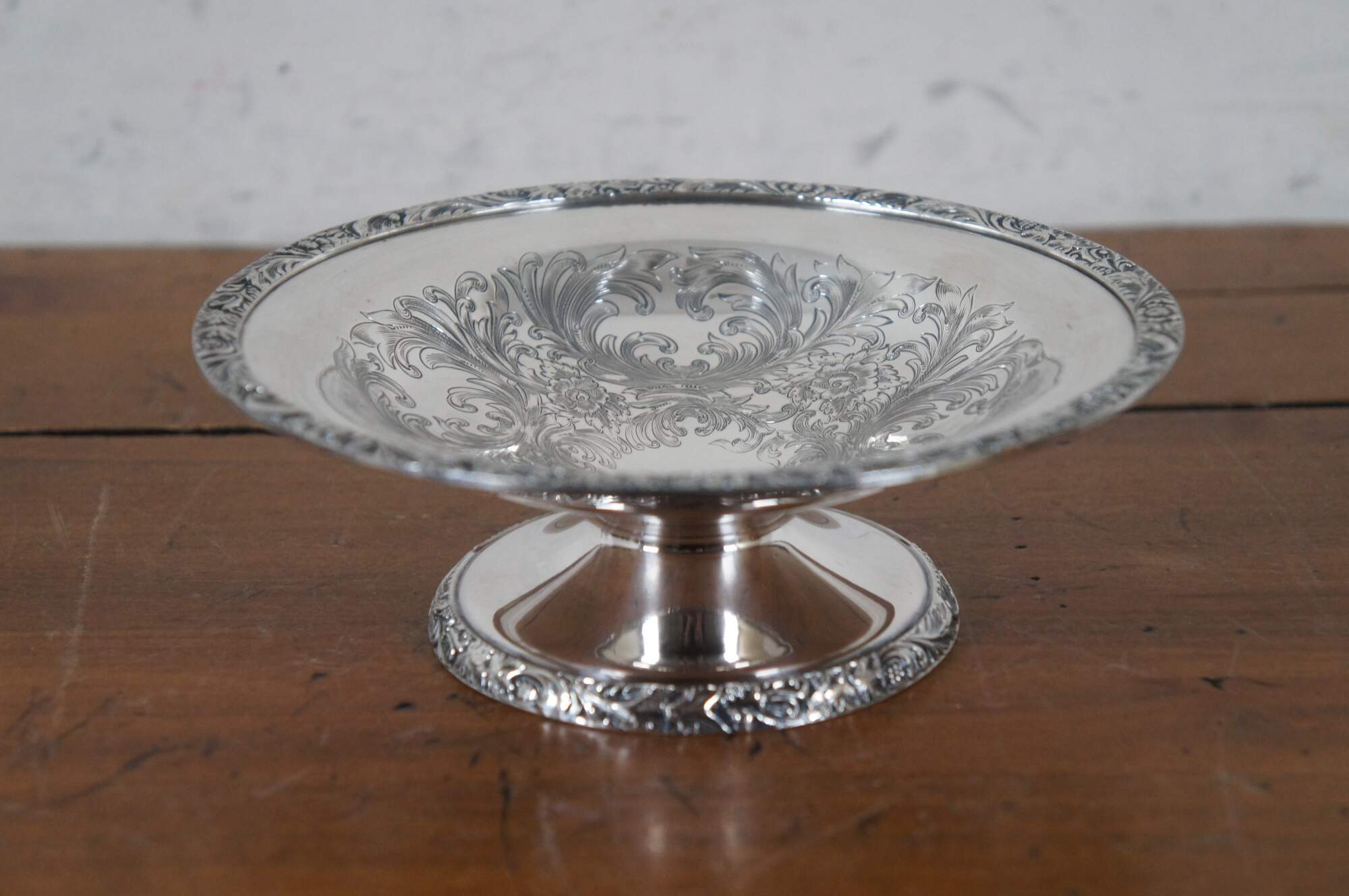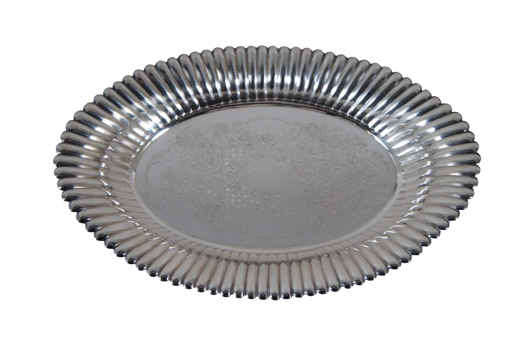Set of 3 vintage assorted silverplate serving dishes. Wilcox Silver Plate Co / International silver Co. Beverly Manor N7062 footed bon bon / nut dish. Wallace Avalon Silverplate 1450 oval dish with fluted sides. And a small card tray / platter marked JLS.