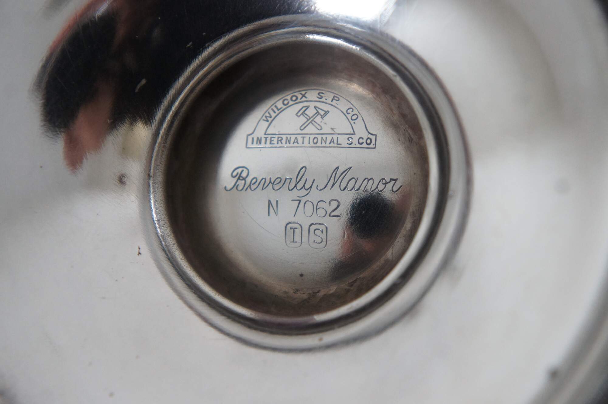 "The firm was organized in 1865 as Wilcox Britannia Co by Jedediah and Horace Wilcox, Charles Parker, Aaron Collins and Hezekiah Miller and others. The firm was active in Meriden, CT with salesrooms at 6 Maiden Lane, New York. The name was changed to Wilcox Silver Plate Co in 1867. In 1869 was acquired Parker & Casper Co, a specialist in silverplate holloware. Wilcox Silver Plate Co was one of the original companies that became part of International Silver Company in 1898. Immediately afterwards (1899) Middletown Silver Plate was closed and the production transferred to Wilcox factory. Superior Silver Co was a Middleton trademark manufactured by Wilcox. The "half circle" mark was introduced in 1921 and registered in 1923. The factory was closed in 1941 because of metal shortage in WWII. After the war Wilcox designs were made in other International Silver Company factories. The trademark was changed to Webster Wilcox in 1961 when the Wilcox Silver Plate Co., E.G. Webster & Son and several other divisions of International Silver were consolidated. Webster-Wilcox was acquired by Oneida in 1981."