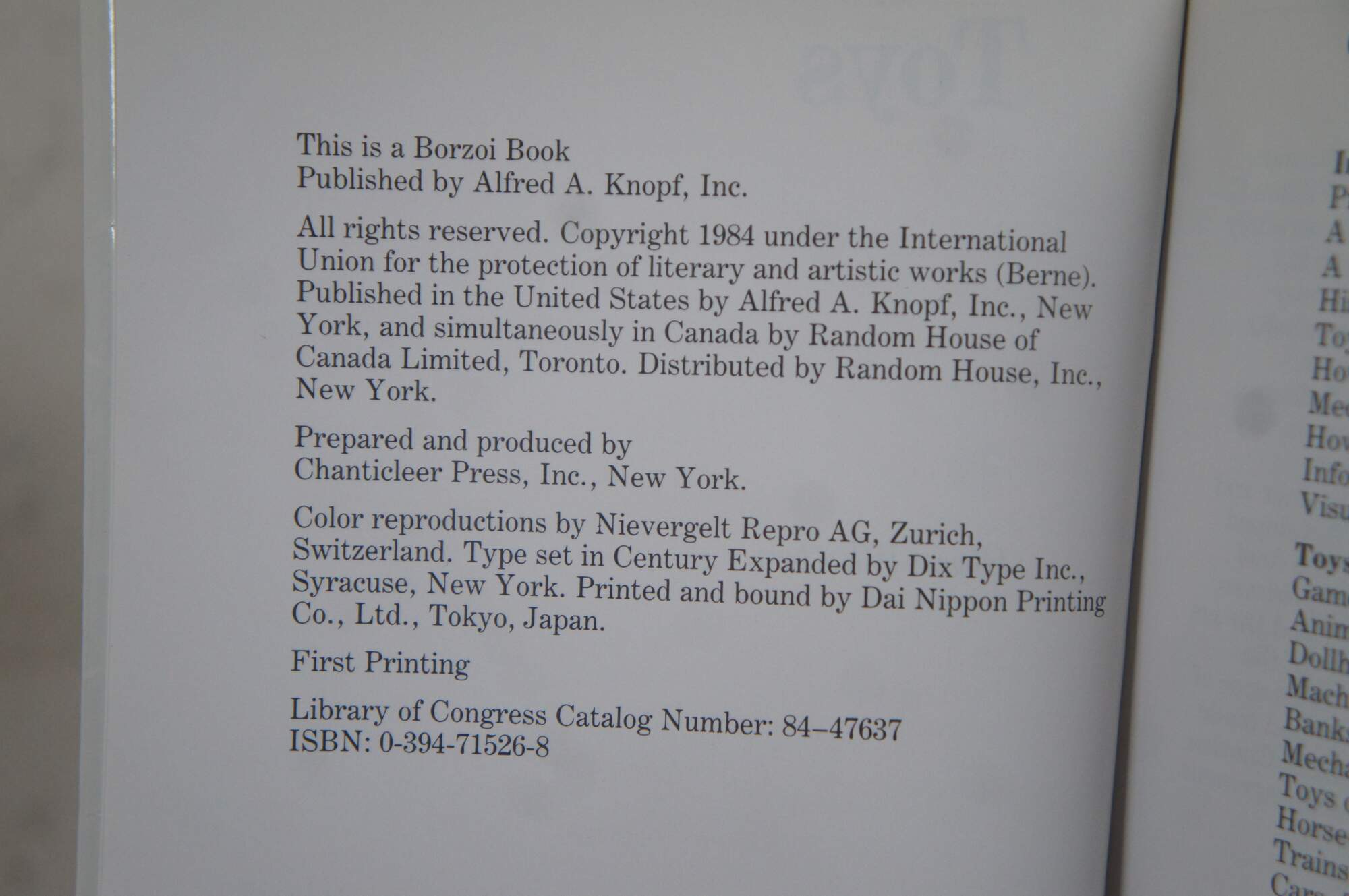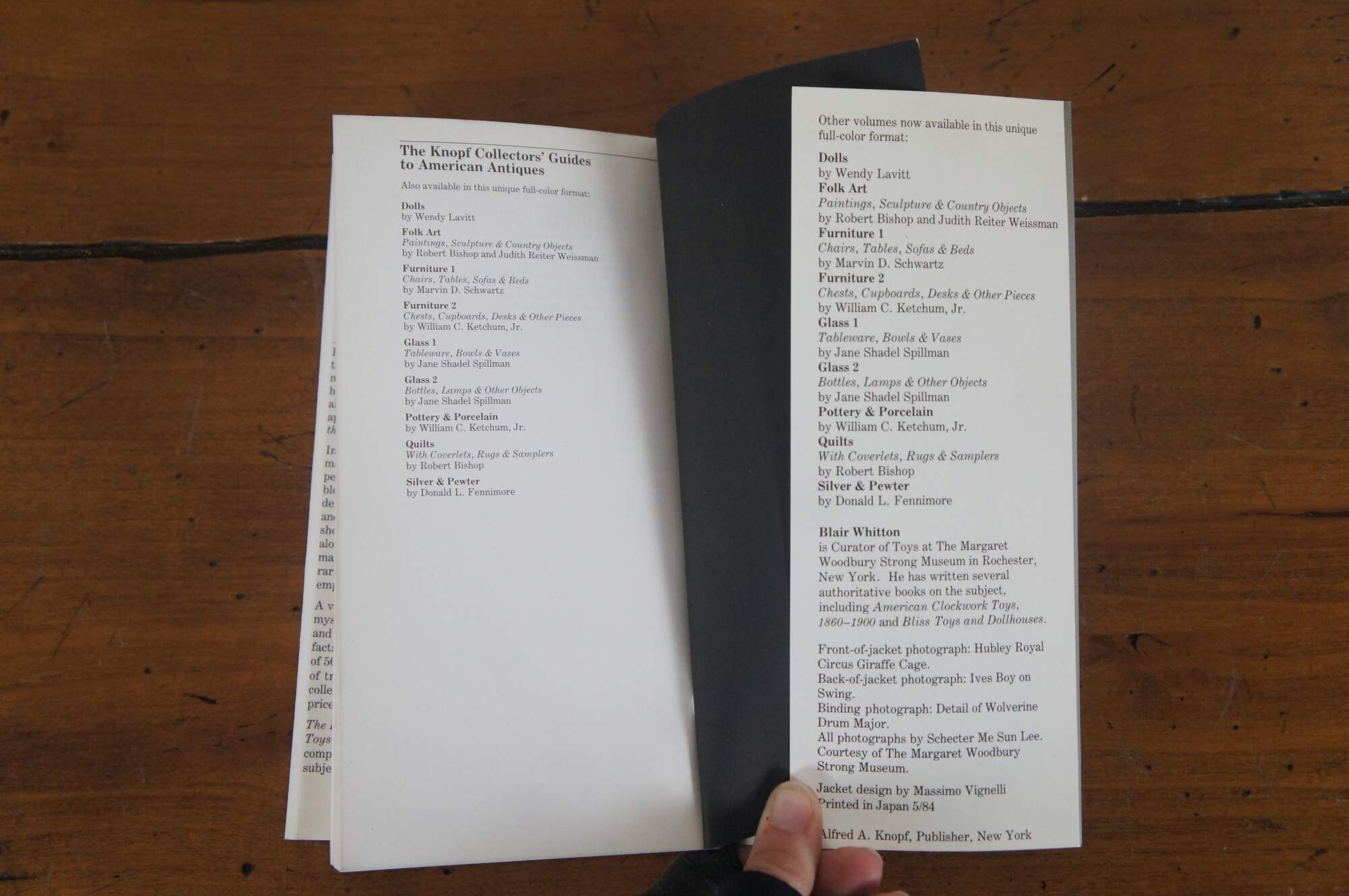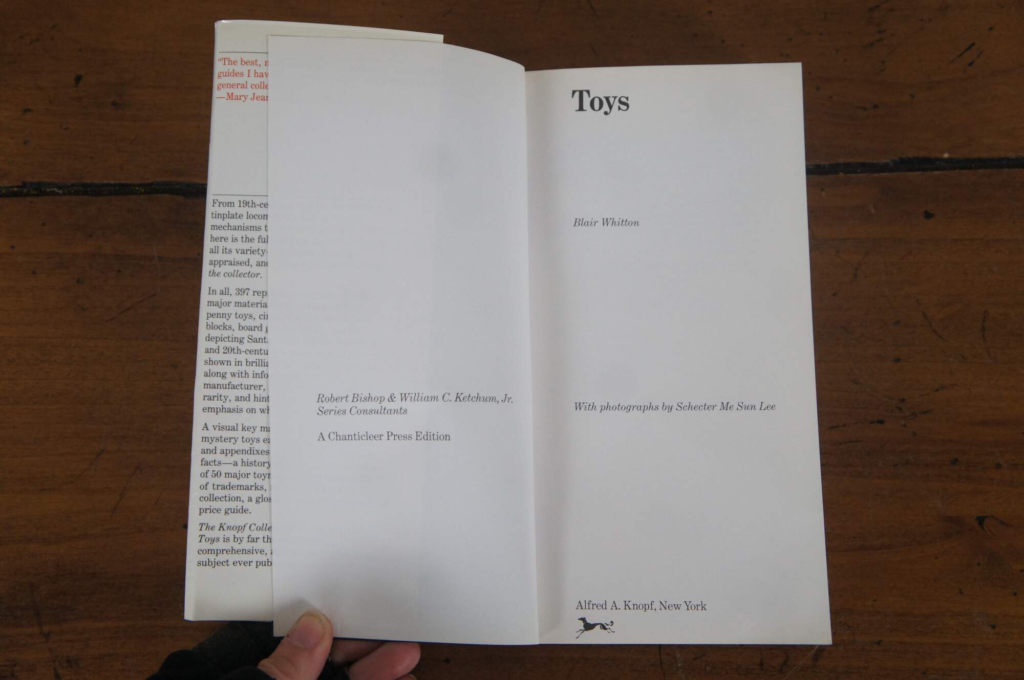 The Knopf Collectors' Guides to American Antiques: Toys - by Blair Whitton - with Photographs by Schecter Me Sun Lee - Robert Bishop & William C. Ketchum, Jr. Series Consultants - A Chanticleer Press Edition - A Borzoi Book - Published by Alfred A. Knopf, Inc. - 1984 - First Printing - ISBN: 0-394-71526-8
