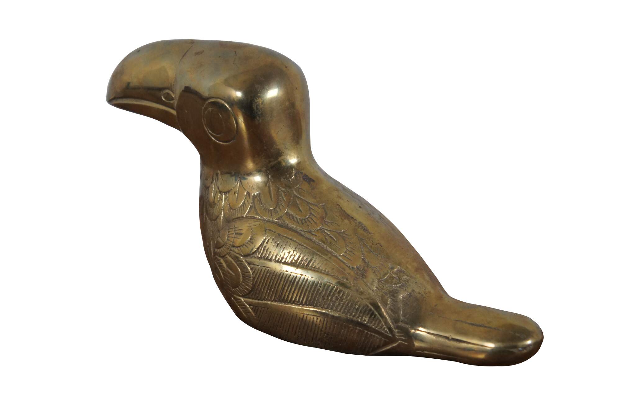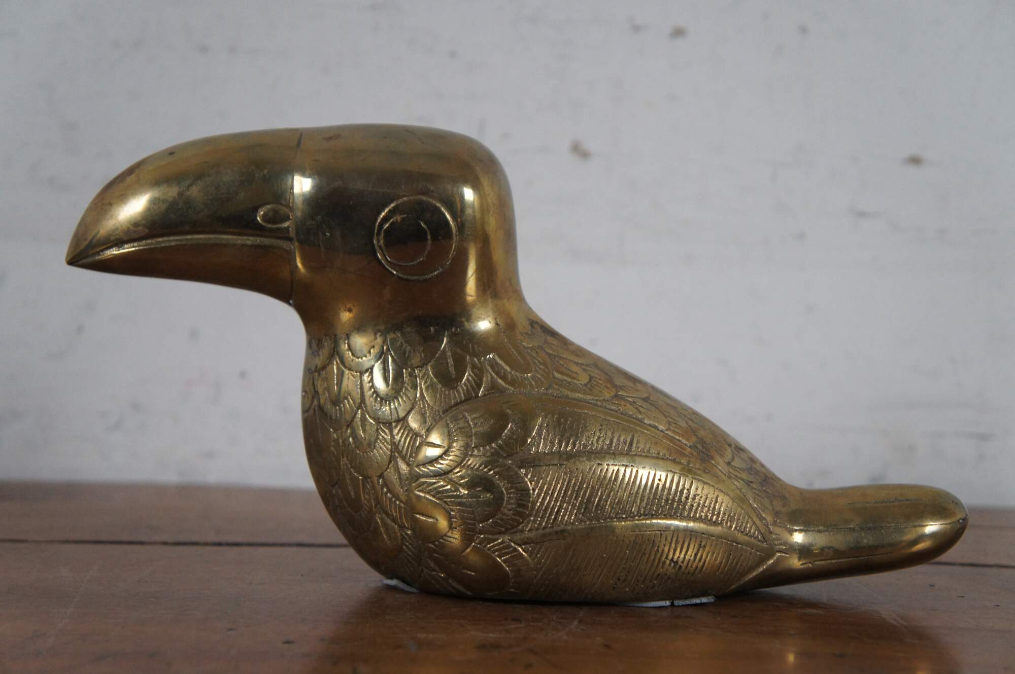 Vintage brass and copper figurine / sculpture in the shape of a toucan / parrot / bird, by Dolbi Cashier for Castilian Imports. Made in Korea.