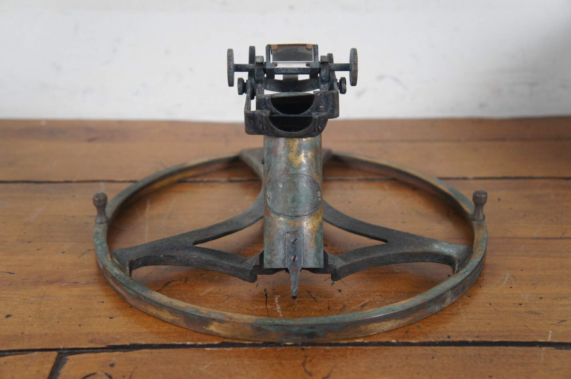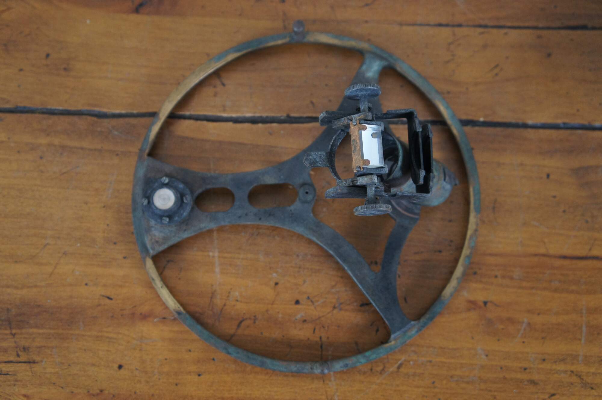 An azimuth circle is a navigation instrument in the form of a brass ring with sights that attaches to the top of a compass to enable the user to take accurate bearings on the sun and terrestrial objects.