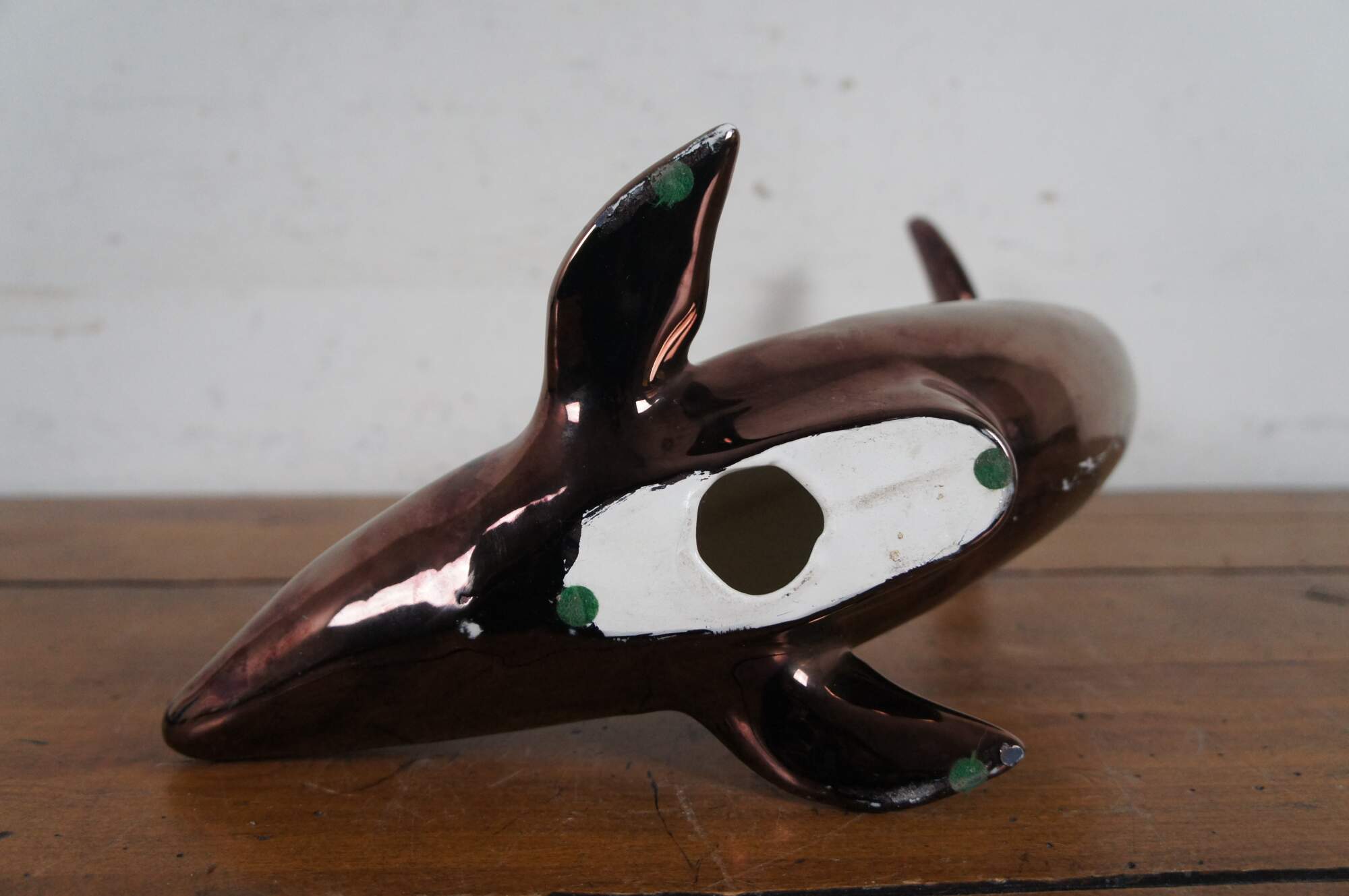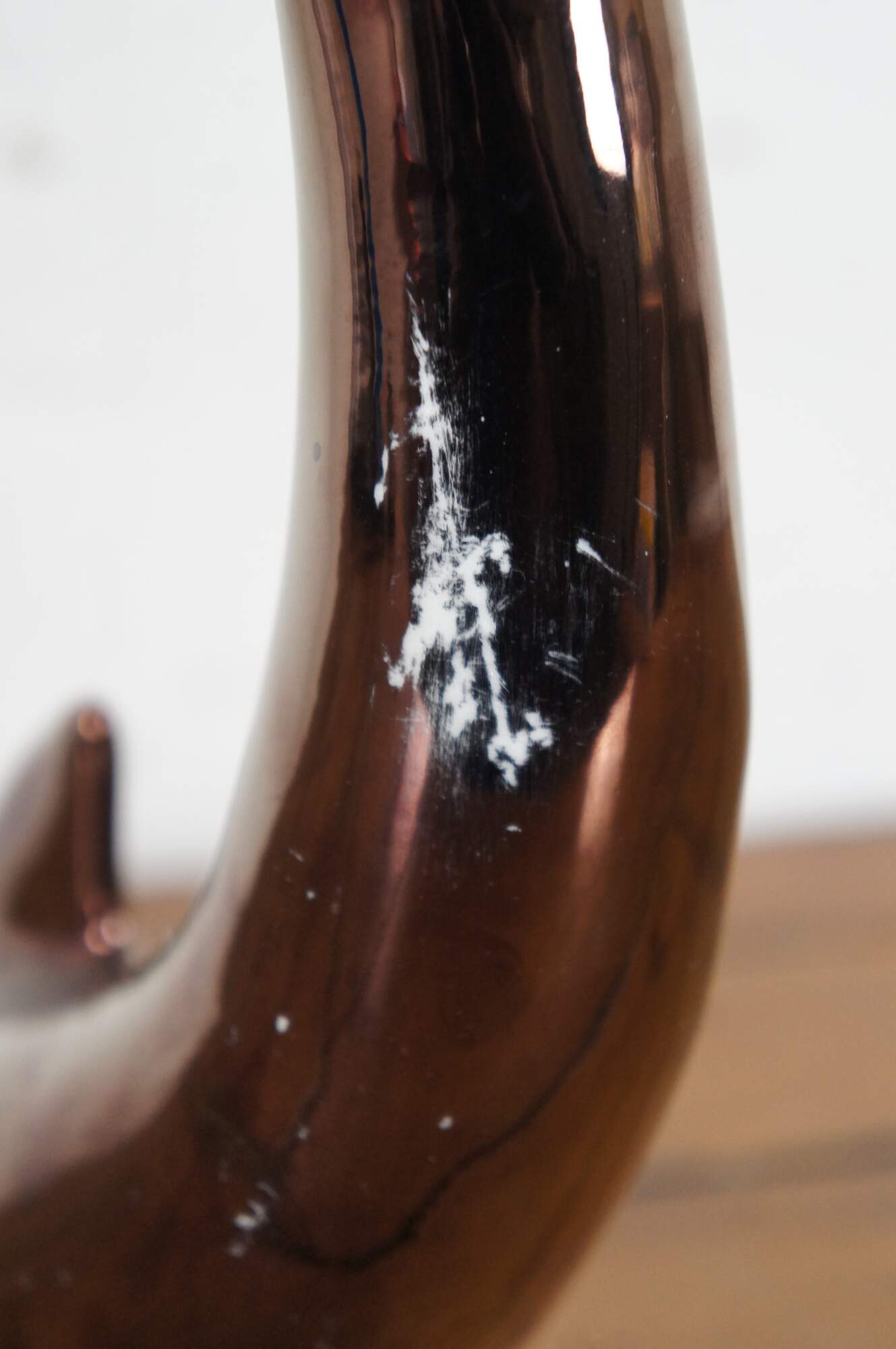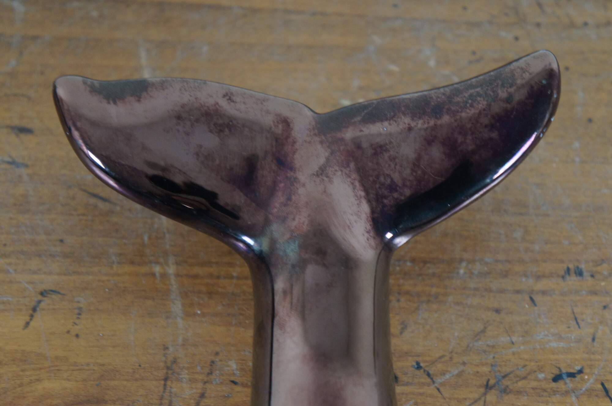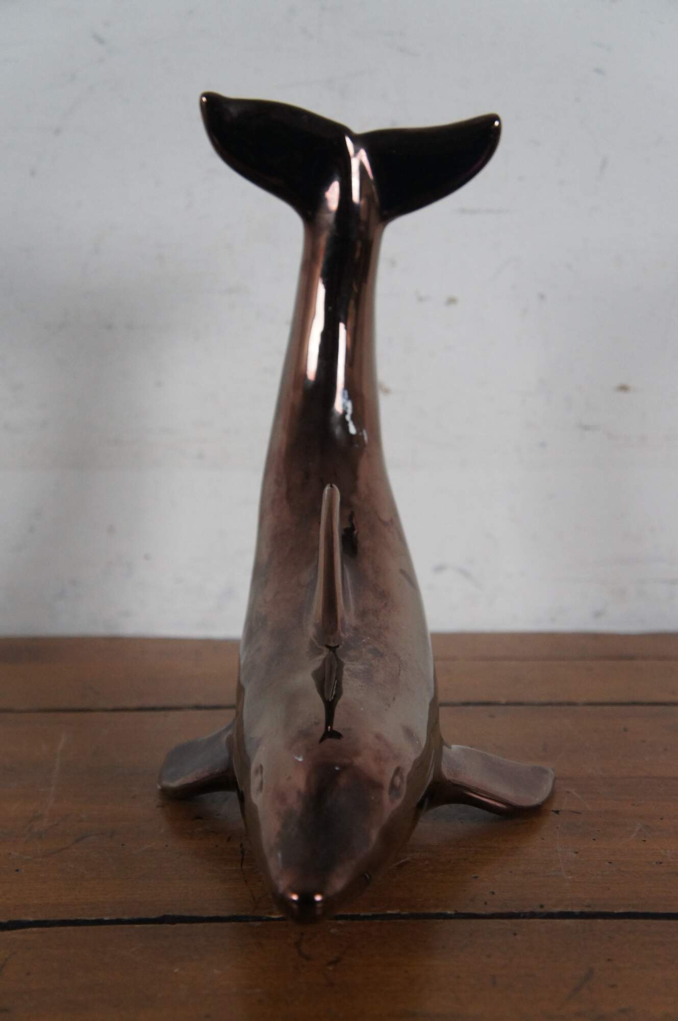 Vintage porcelain sculpture / figurine in the shape of a dolphin with tail in the air, finished in an iridescent / metallic bronze color