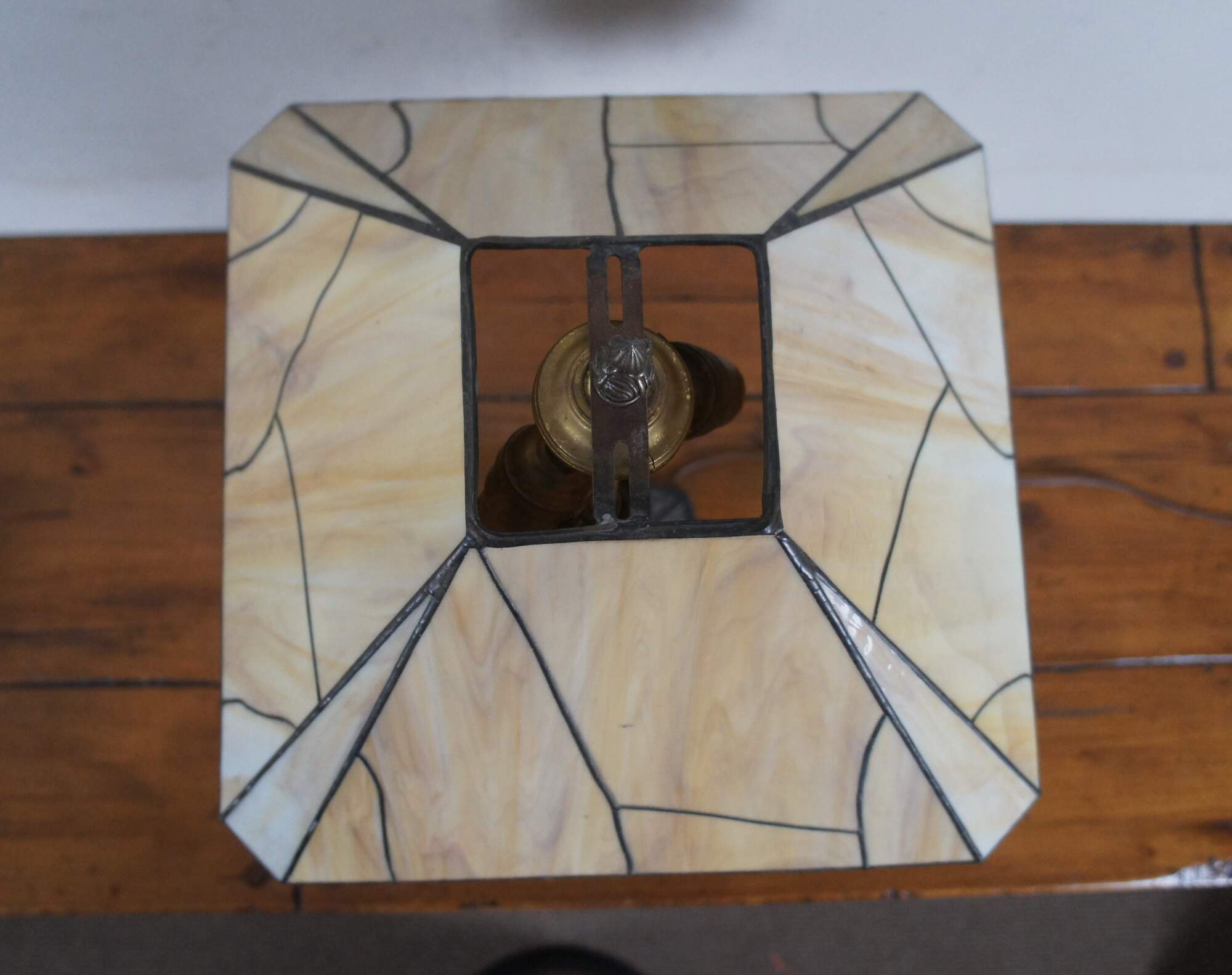 Good Overall - Tarnish; some separation between leading and glass at top of shade; upper cap not attached