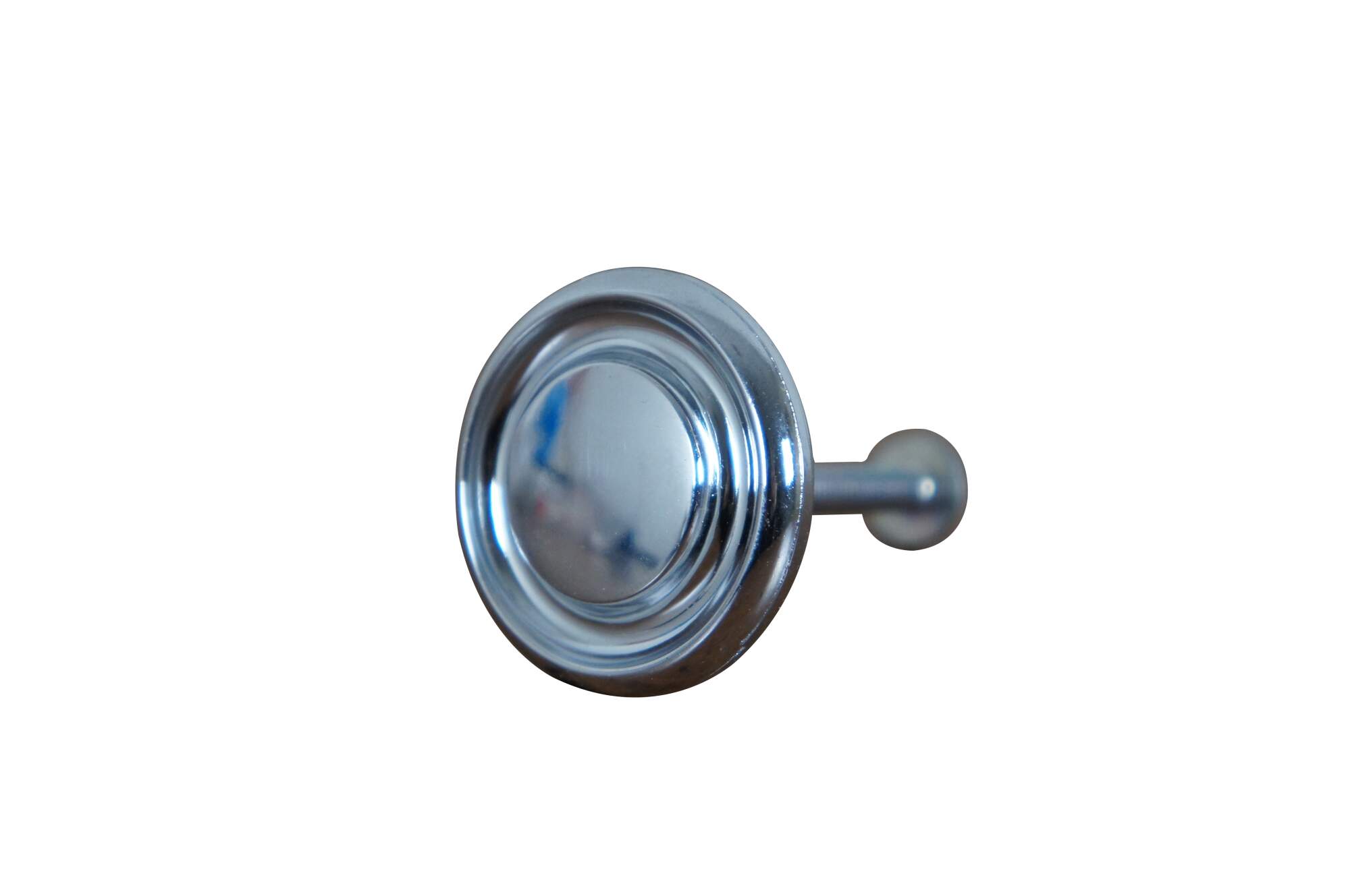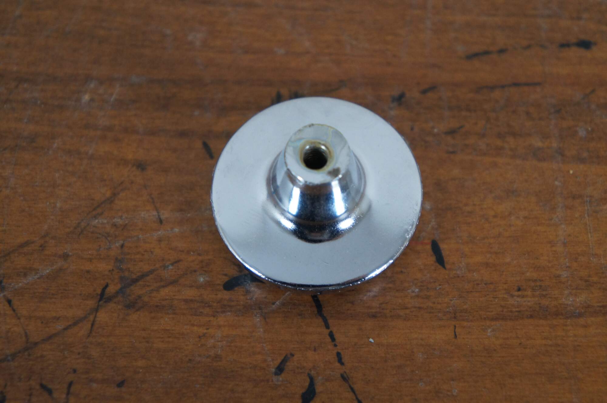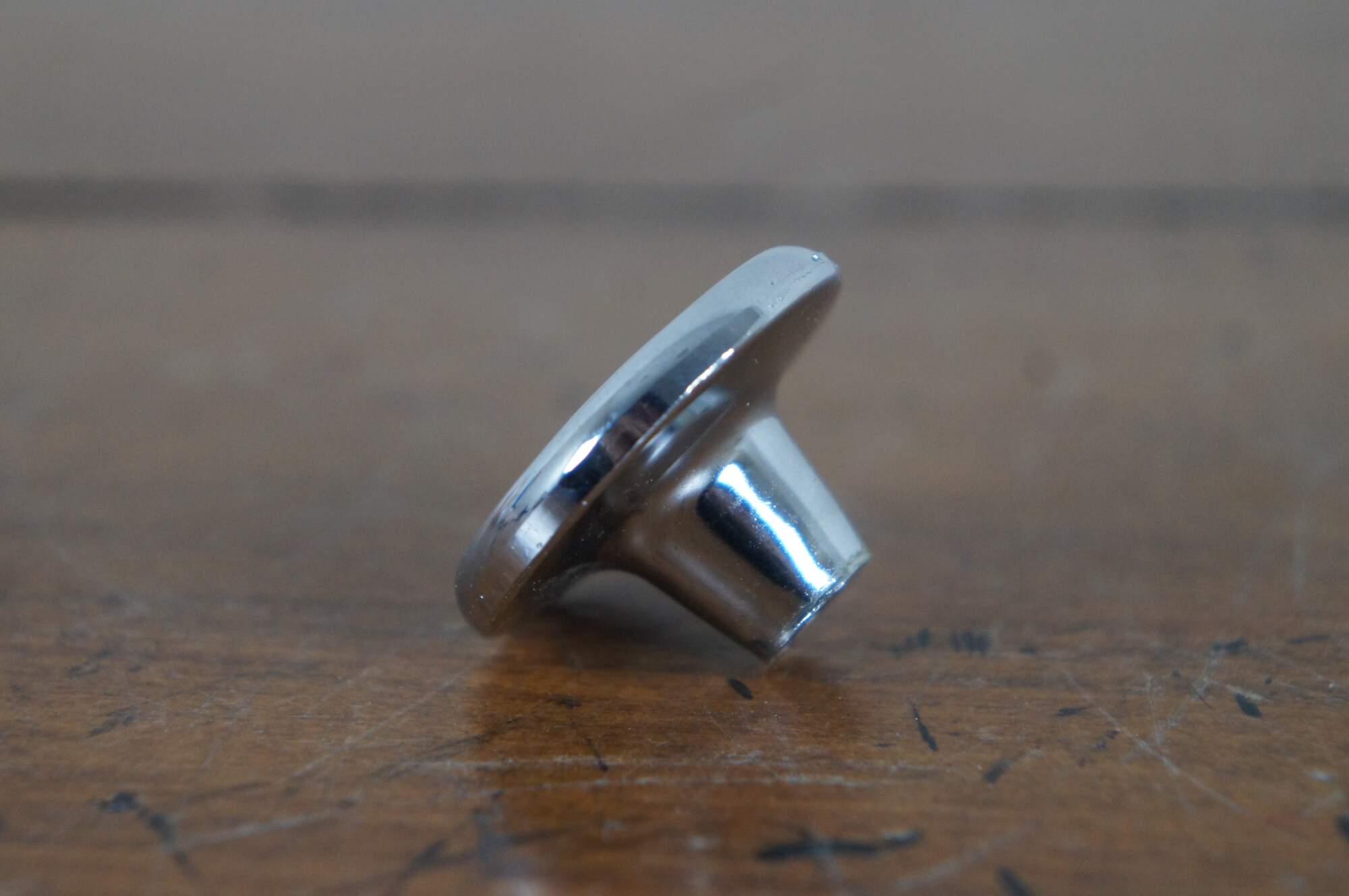 8 Available - Mid to late 20th century old-stock drawer / cabinet pulls. National Lock Company - Medalist, item number C275-26 Knob, Bright Chrome. Round button shape with recessed groove.