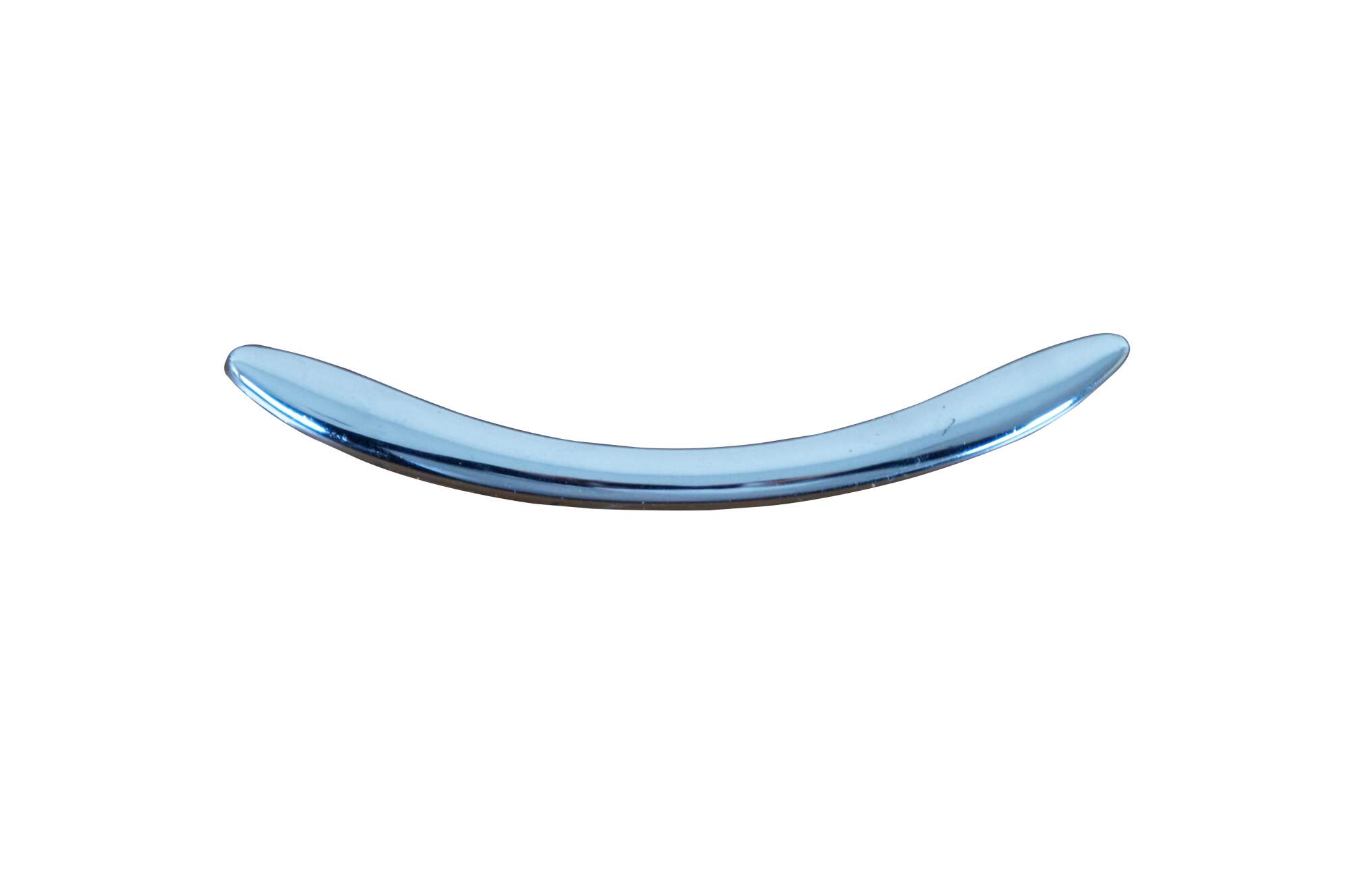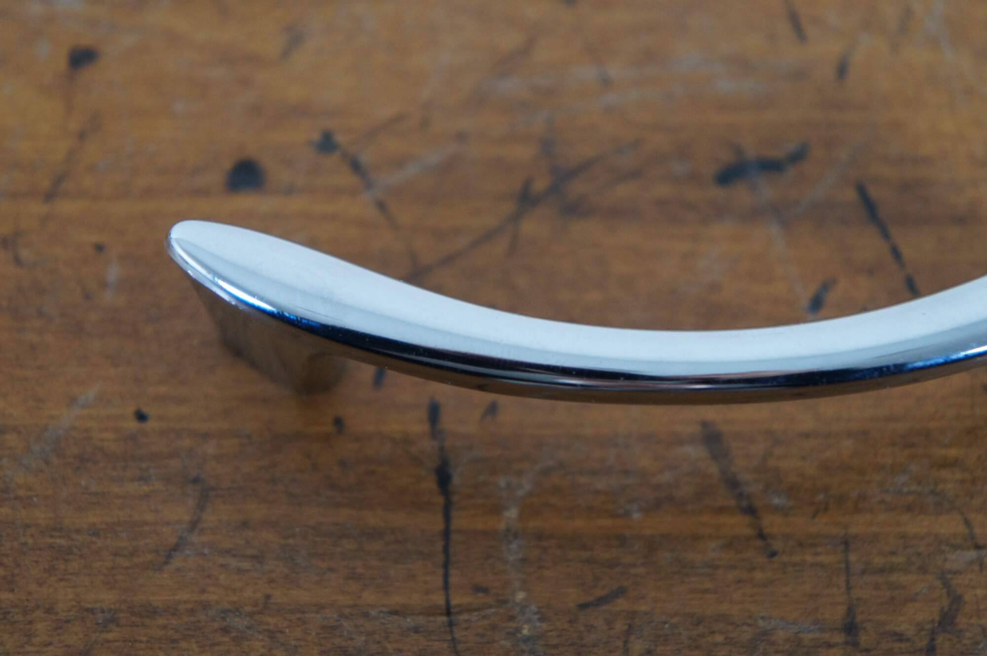 4 Available - Mid to late 20th century old-stock drawer / cabinet pulls. Amerock, item number A-419-26, Polished Chromium Plated. 2.75" Hole Centers. Simple curved / half moon shape.