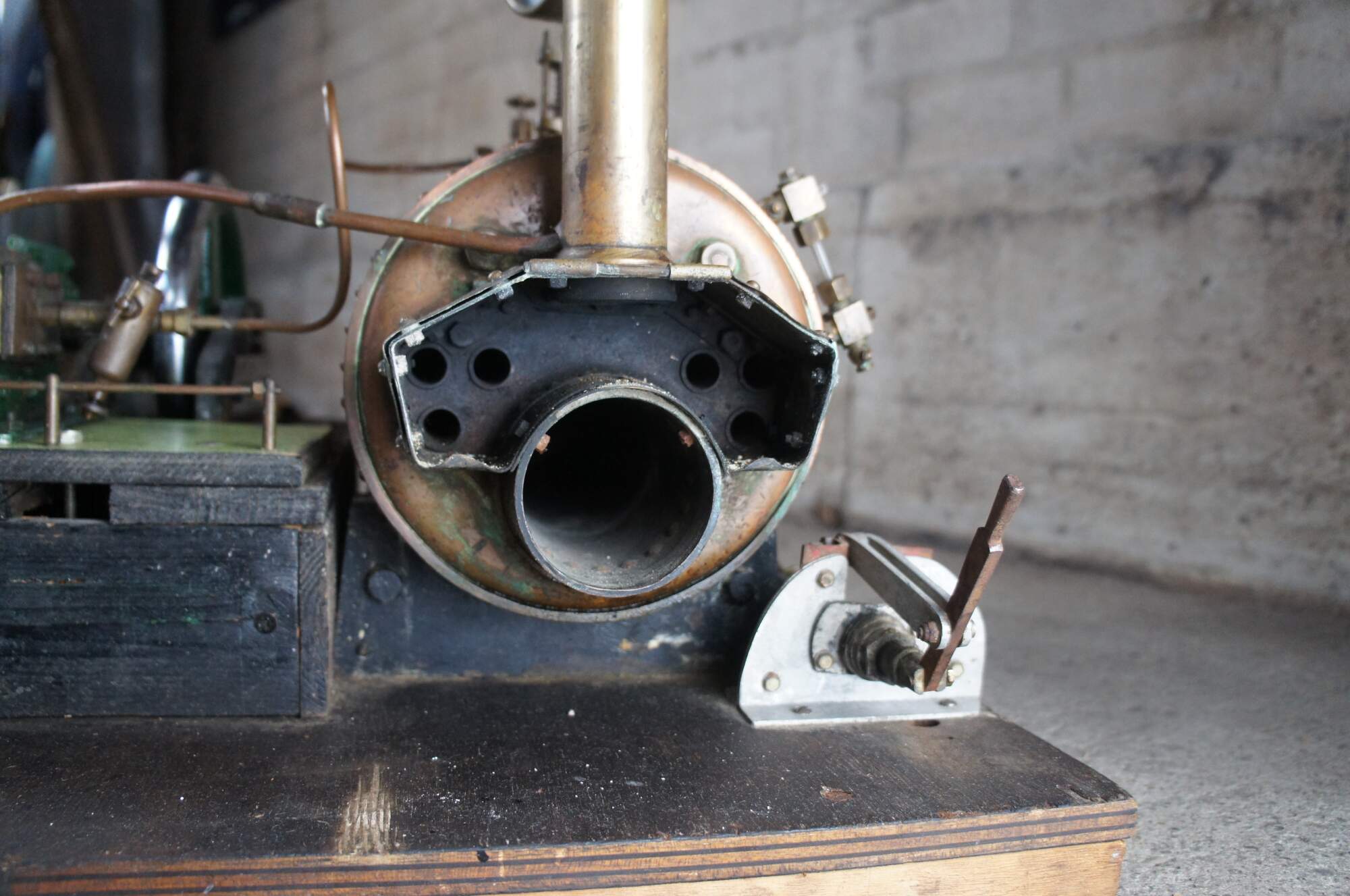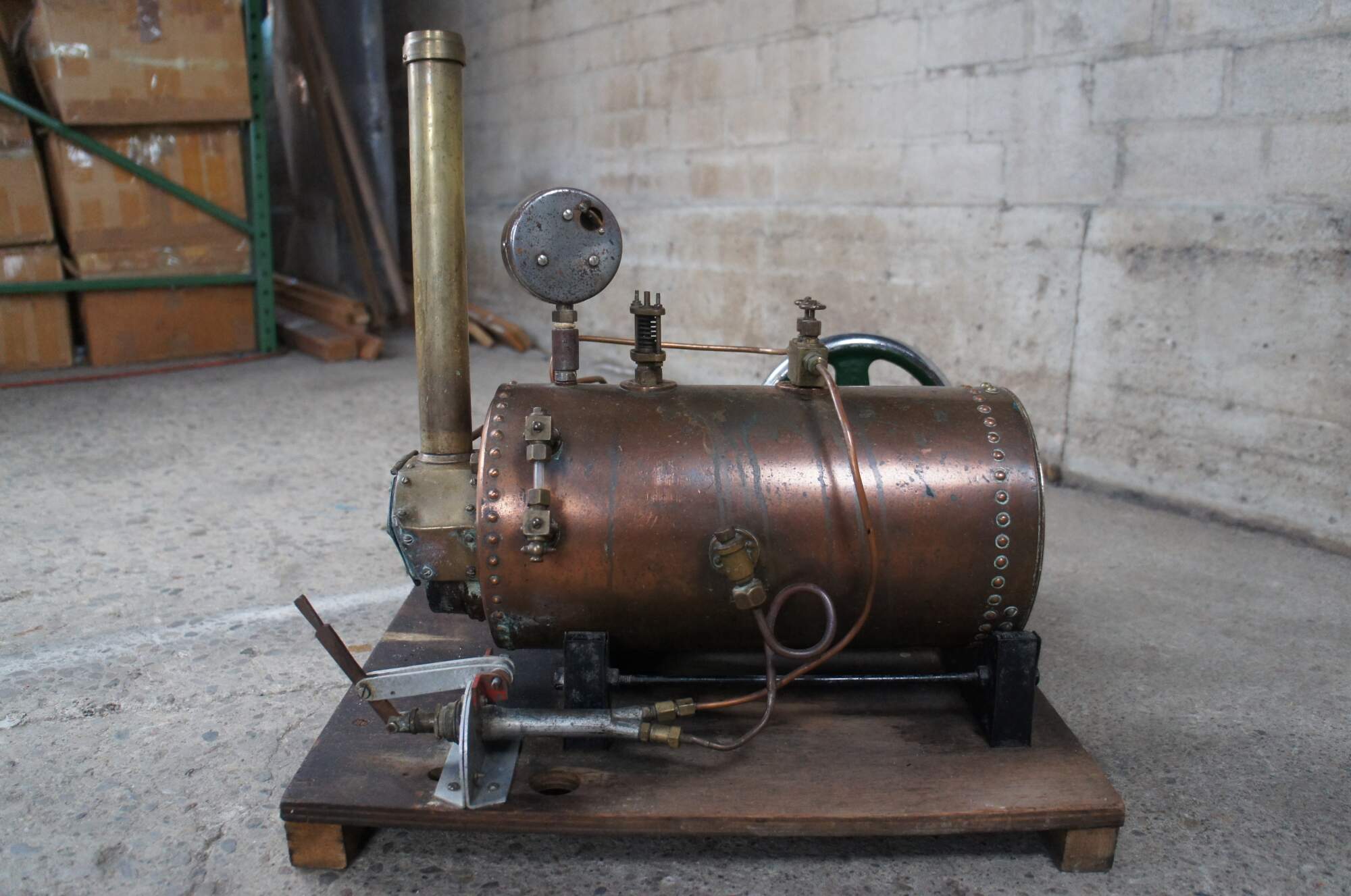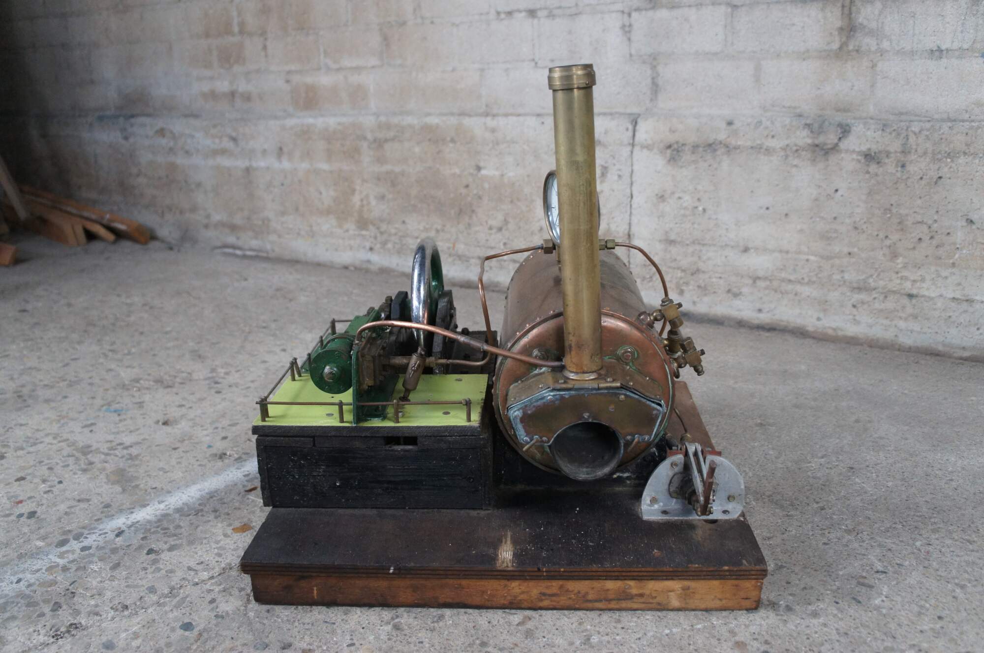 Antique 19th century Schaeffer & Budenberg stationary steam engine model. Made of cast iron featuring copper boiler