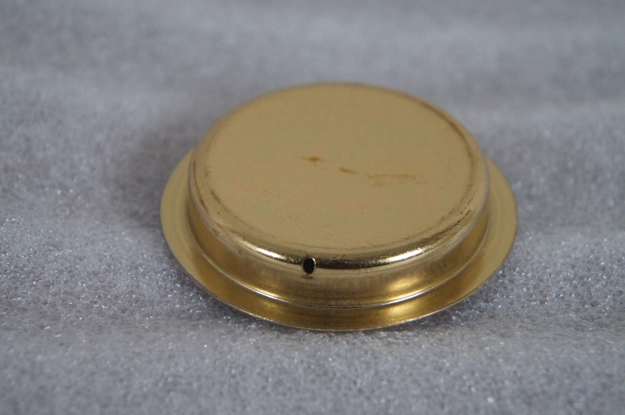 25 Available - Mid to late 20th century old-stock drawer / cabinet pulls. National Lock Company - Medalist, item number C596-3 Cup Pull, Bright Brass. Minimalist round, recessed shape.