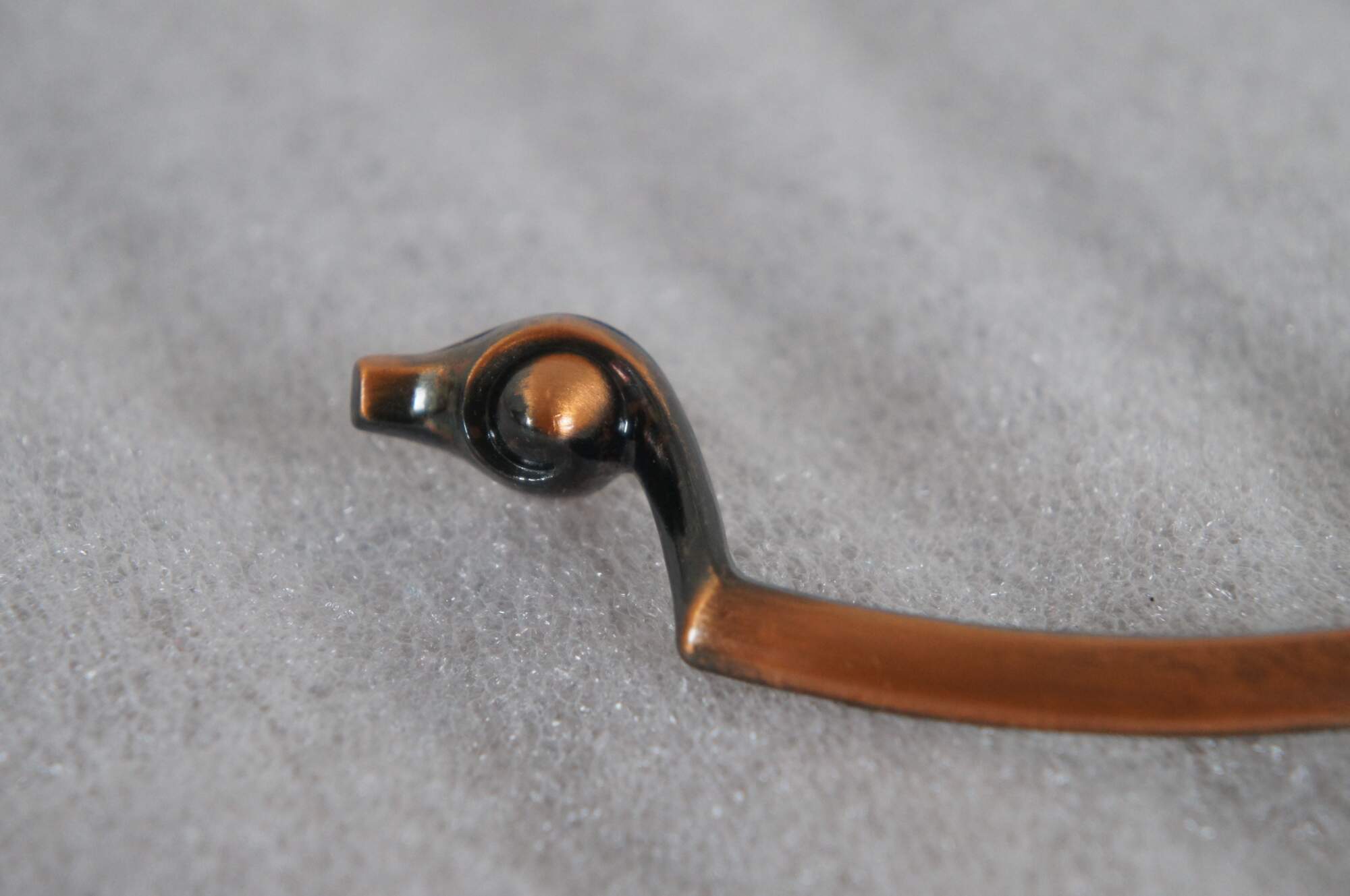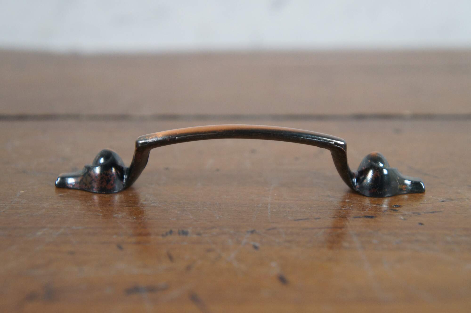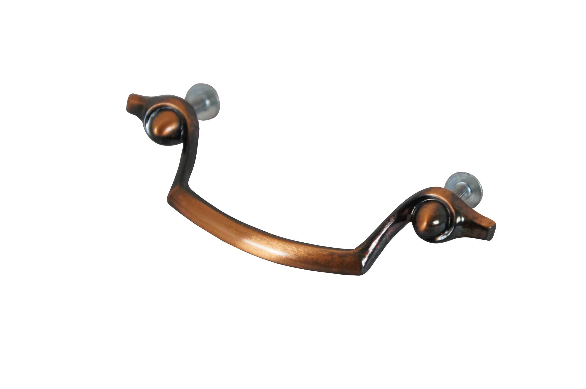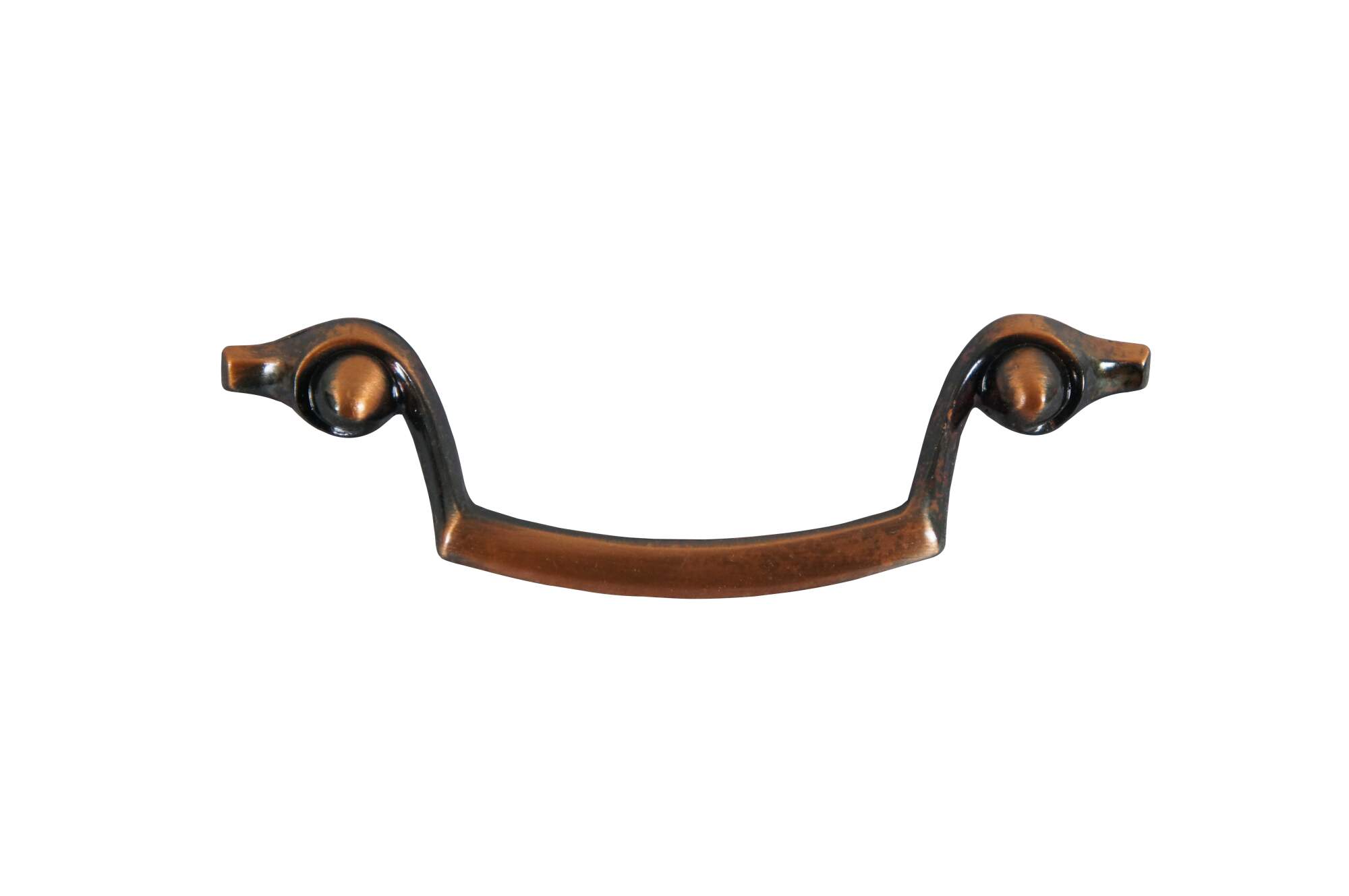 22 Available - Mid to late 20th century old-stock die cast drawer / cabinet pulls. National Lock Company - Medalist, item number C283, "Colonial Classic" Pulls, Old Copper (10D). 3" Hole Centers. Squared-off fixed bail design with ends scrolling around a button.