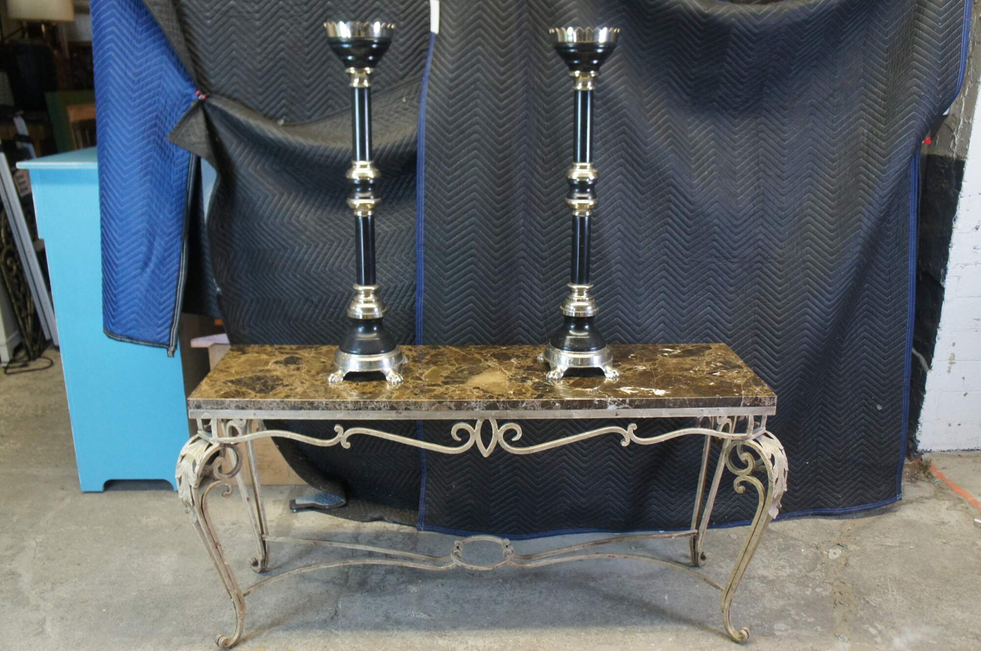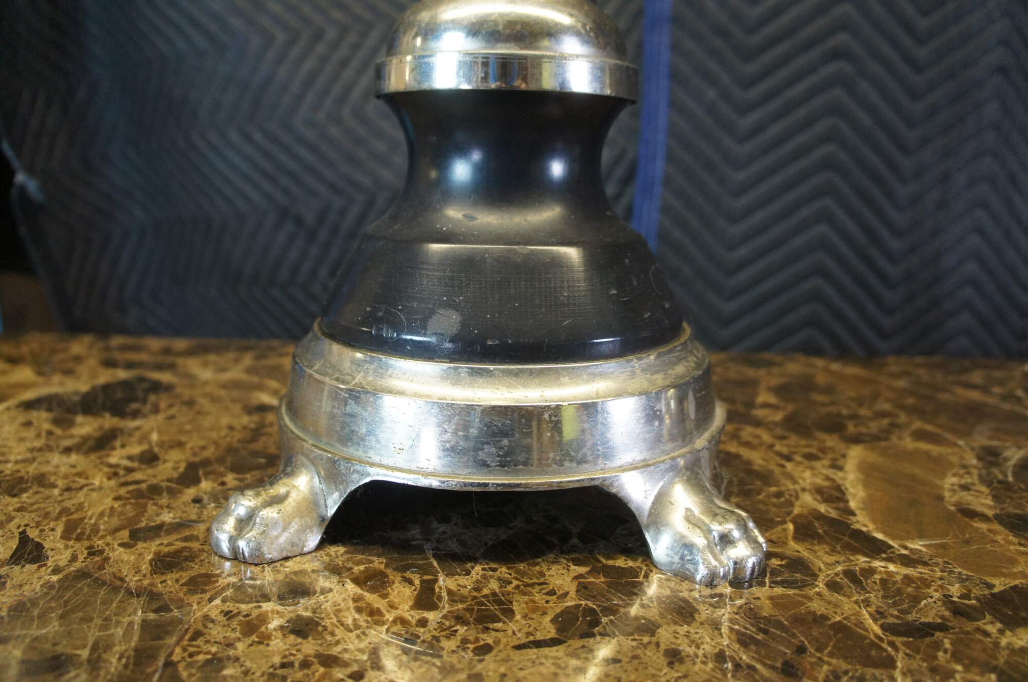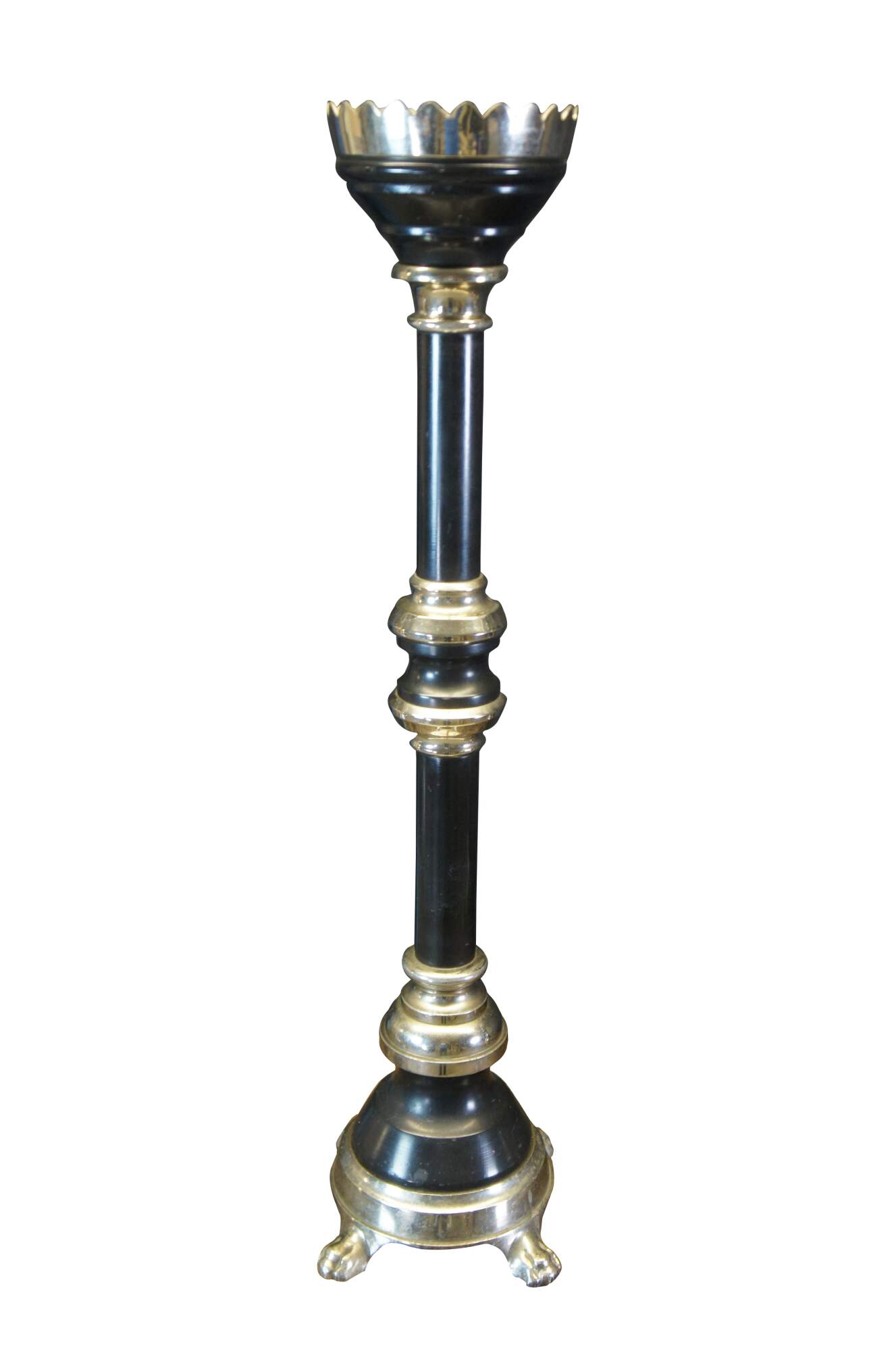 Genuine Art Deco Floor Candle or Altar Sticks, circa 1920s. Made from nickel and ebony wood.