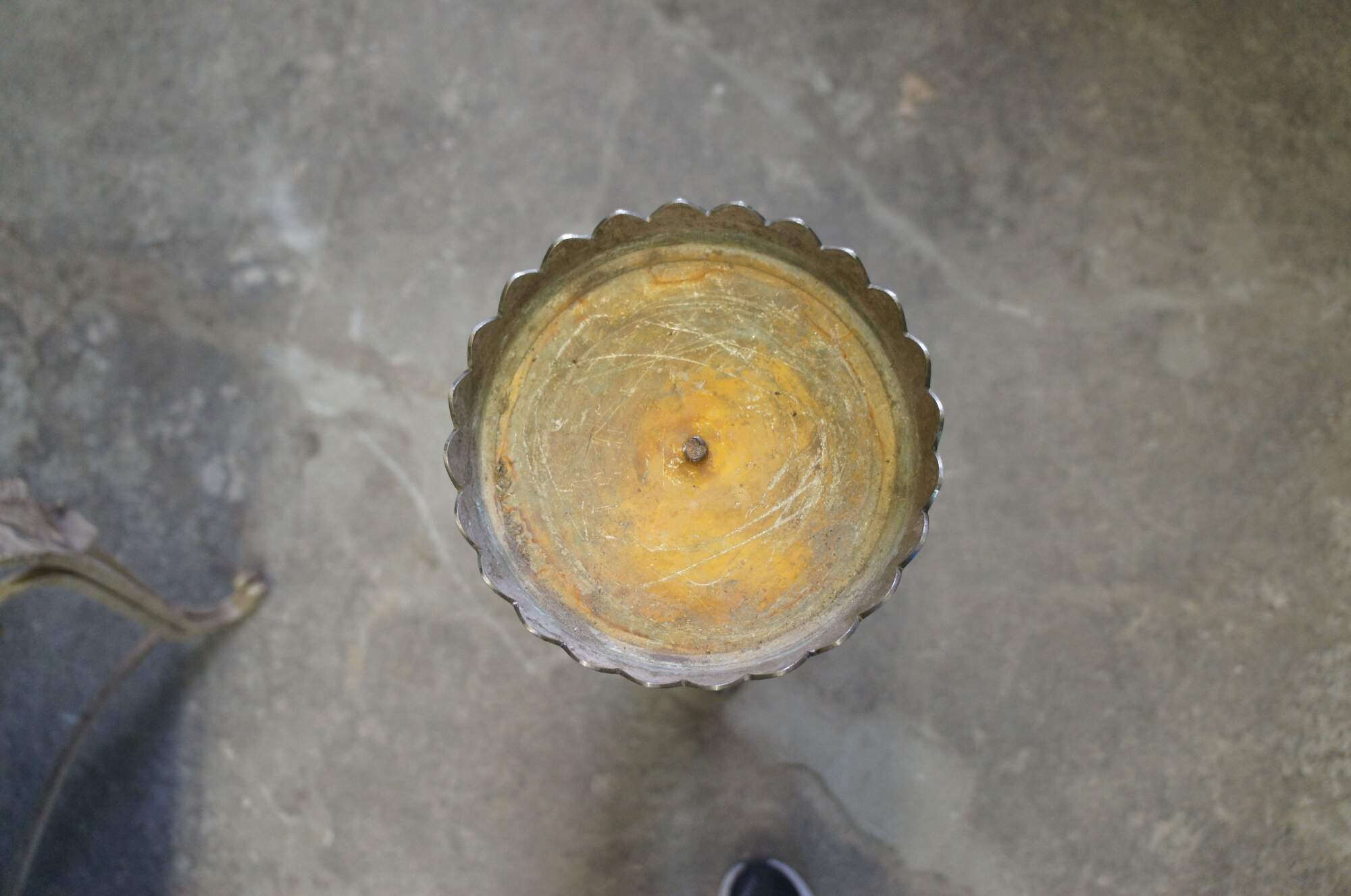 Fair; Age and Use related wear. Marking / Scratching / Finish Wear. Originally had a small candle holder in the center of the cup. Now best used with larger candles