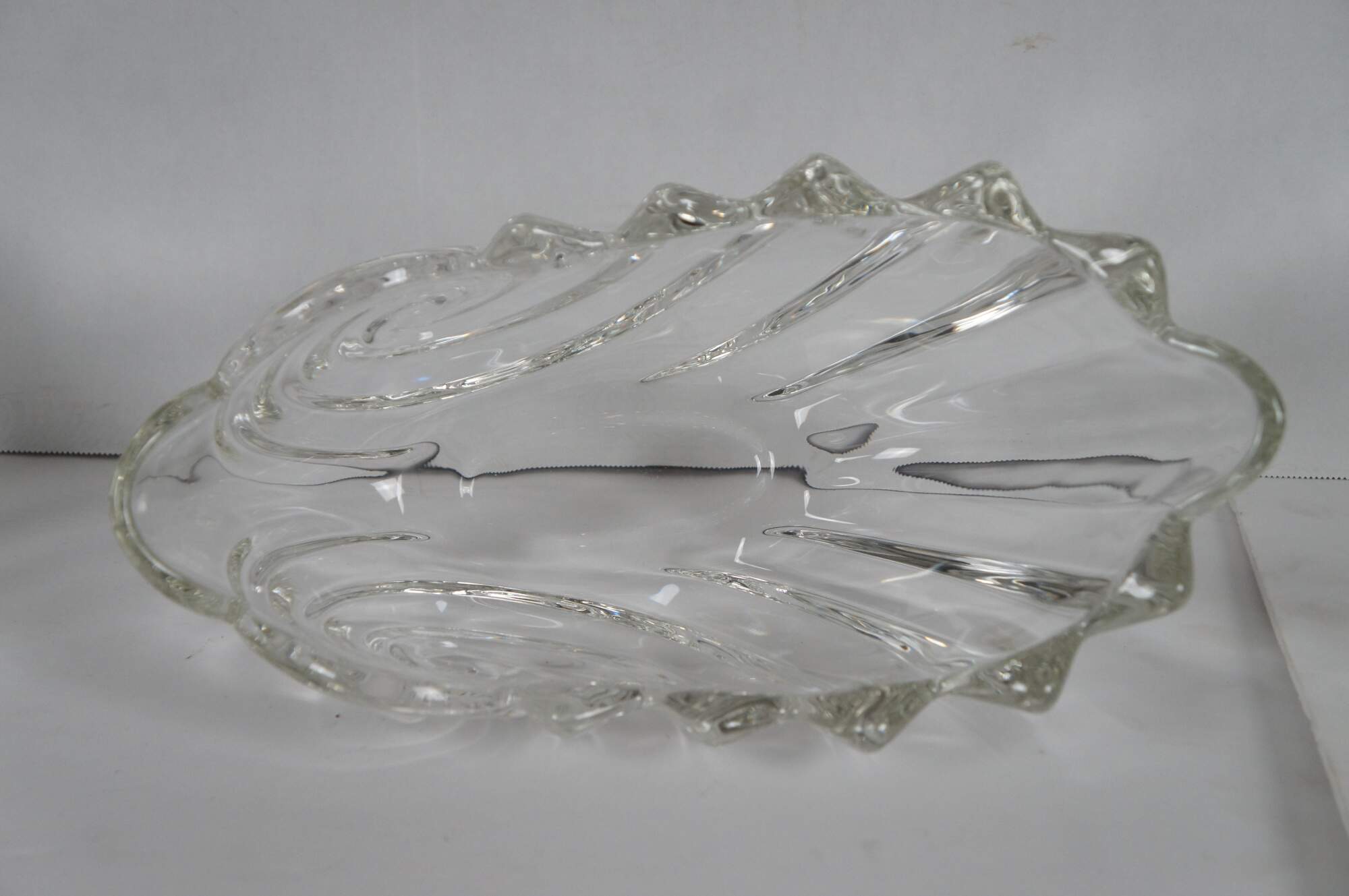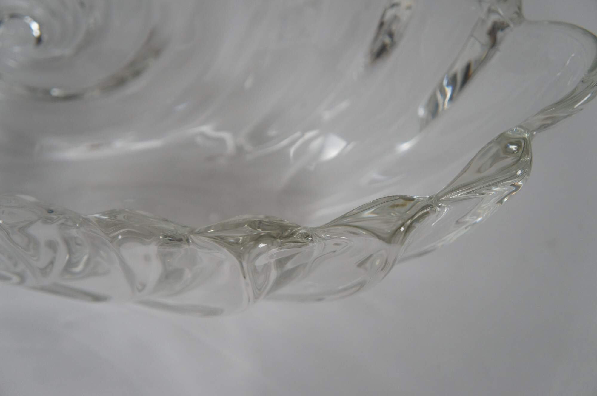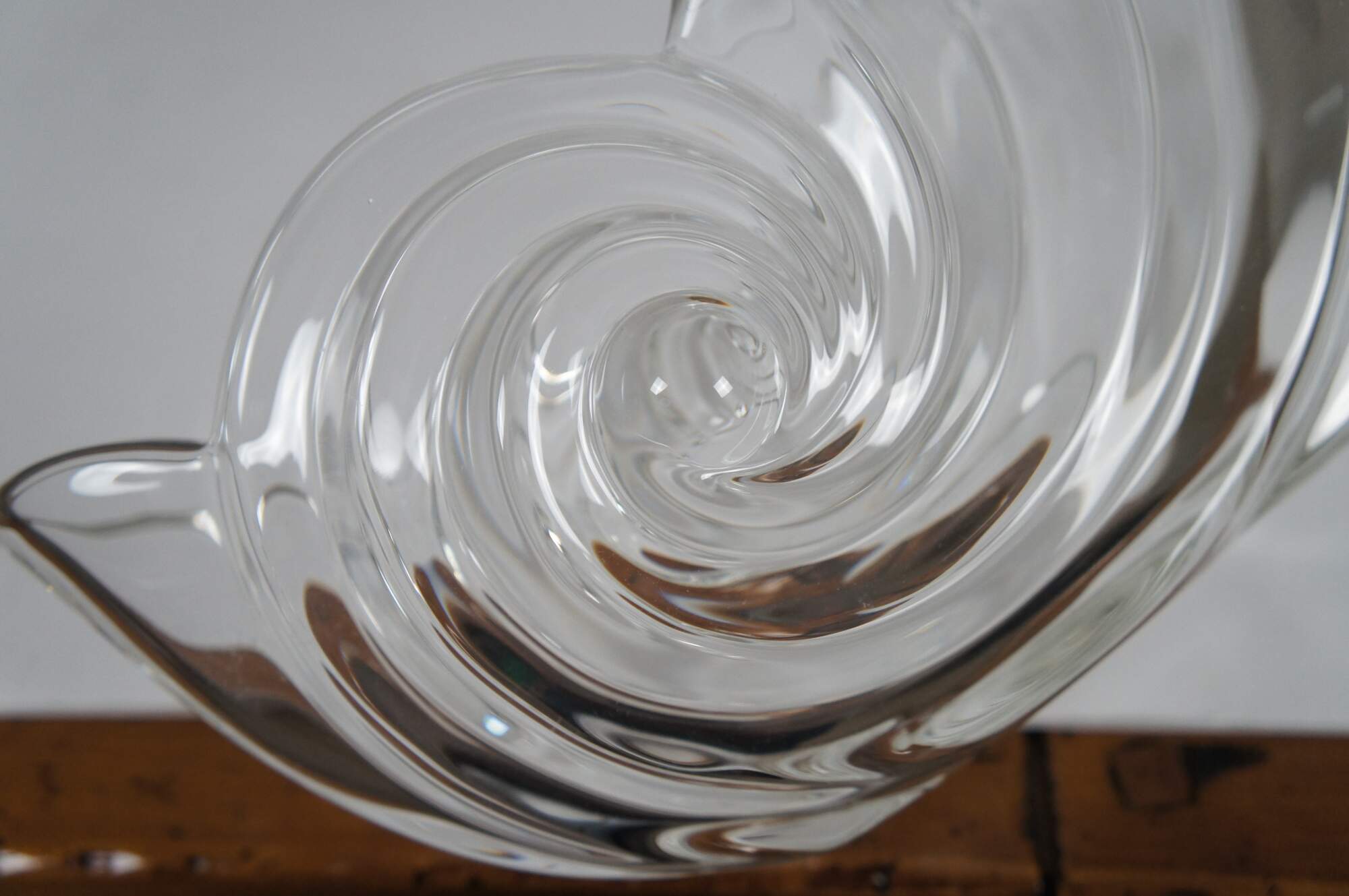 Pair of vintage circa 1990's Mikasa Clearwater crystal buffet bowls / centerpieces in the shape of a rolling wave or nautilus spiral sea shell.