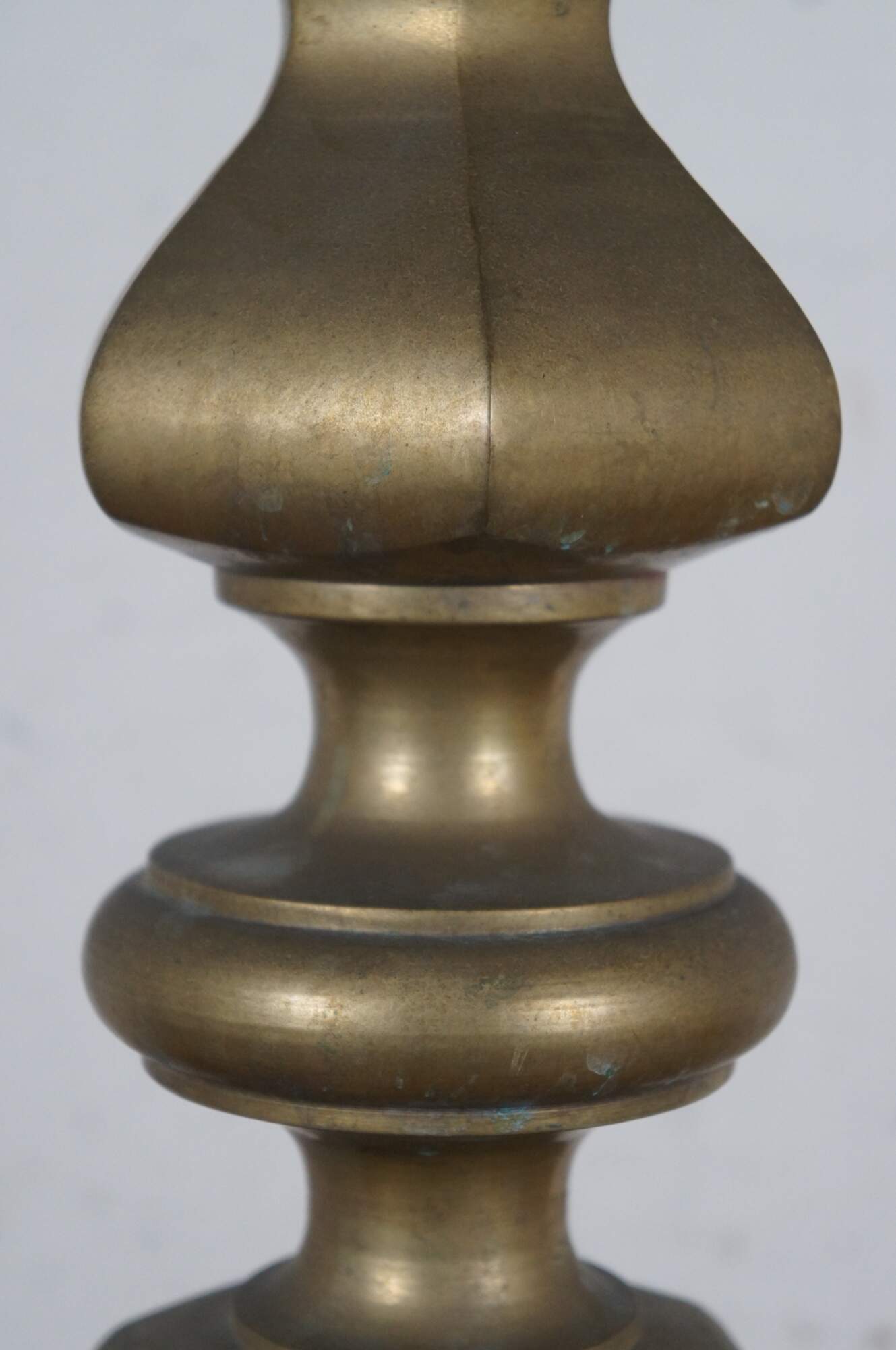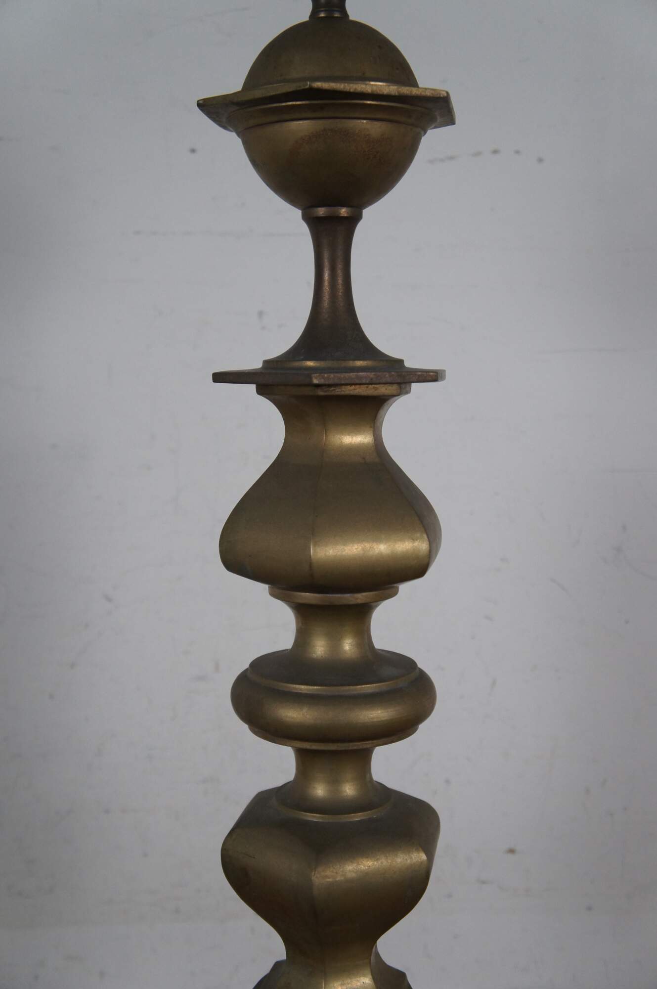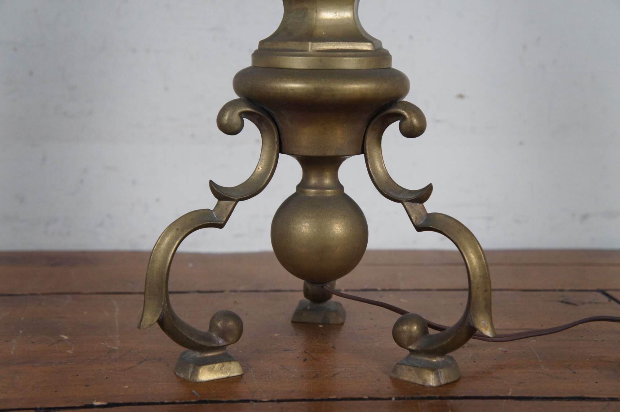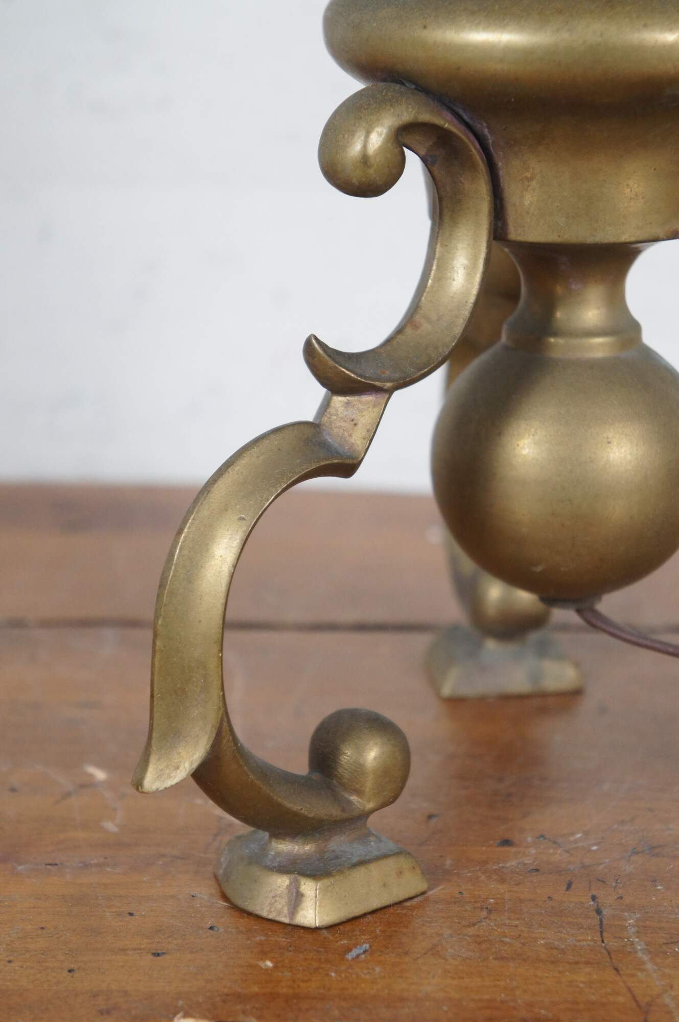 Fair Condition - Gentle wear/spots/tarnish to brass; one needs repair to sockets; both need rewiring