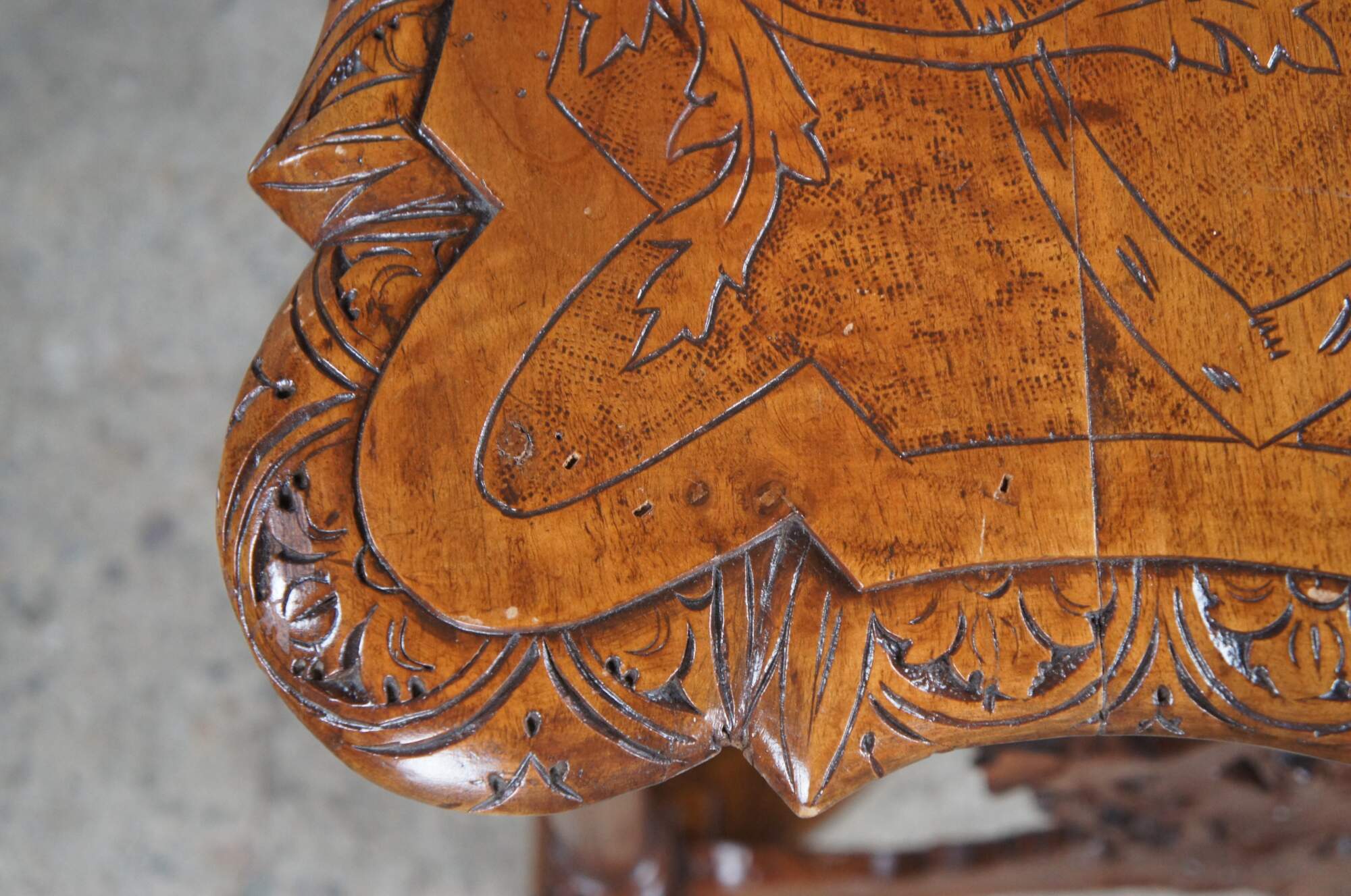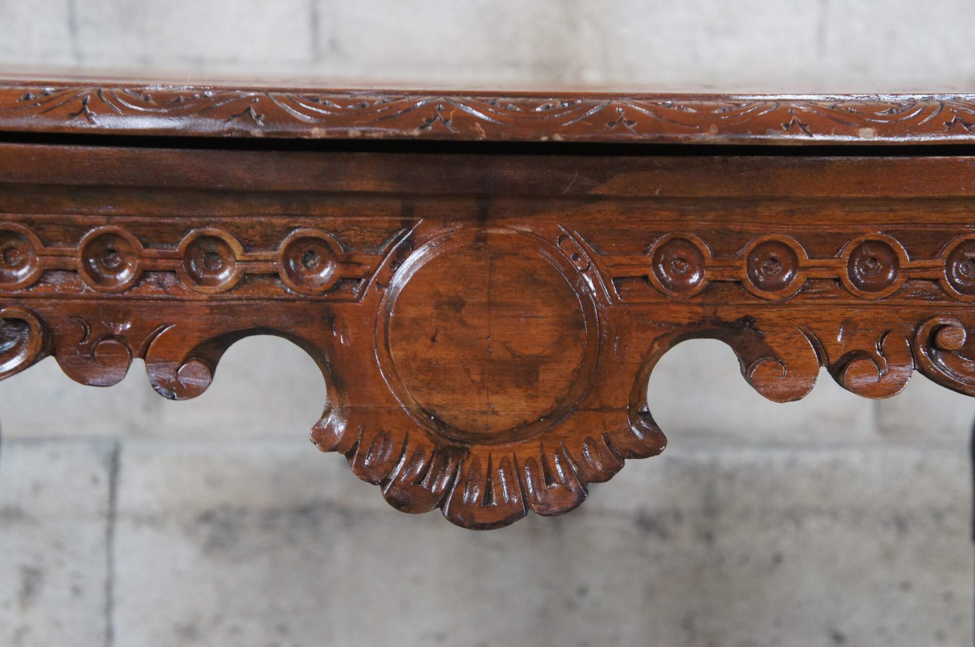 Good antique condition, wear and distressing commensurate with age and use, splitting.