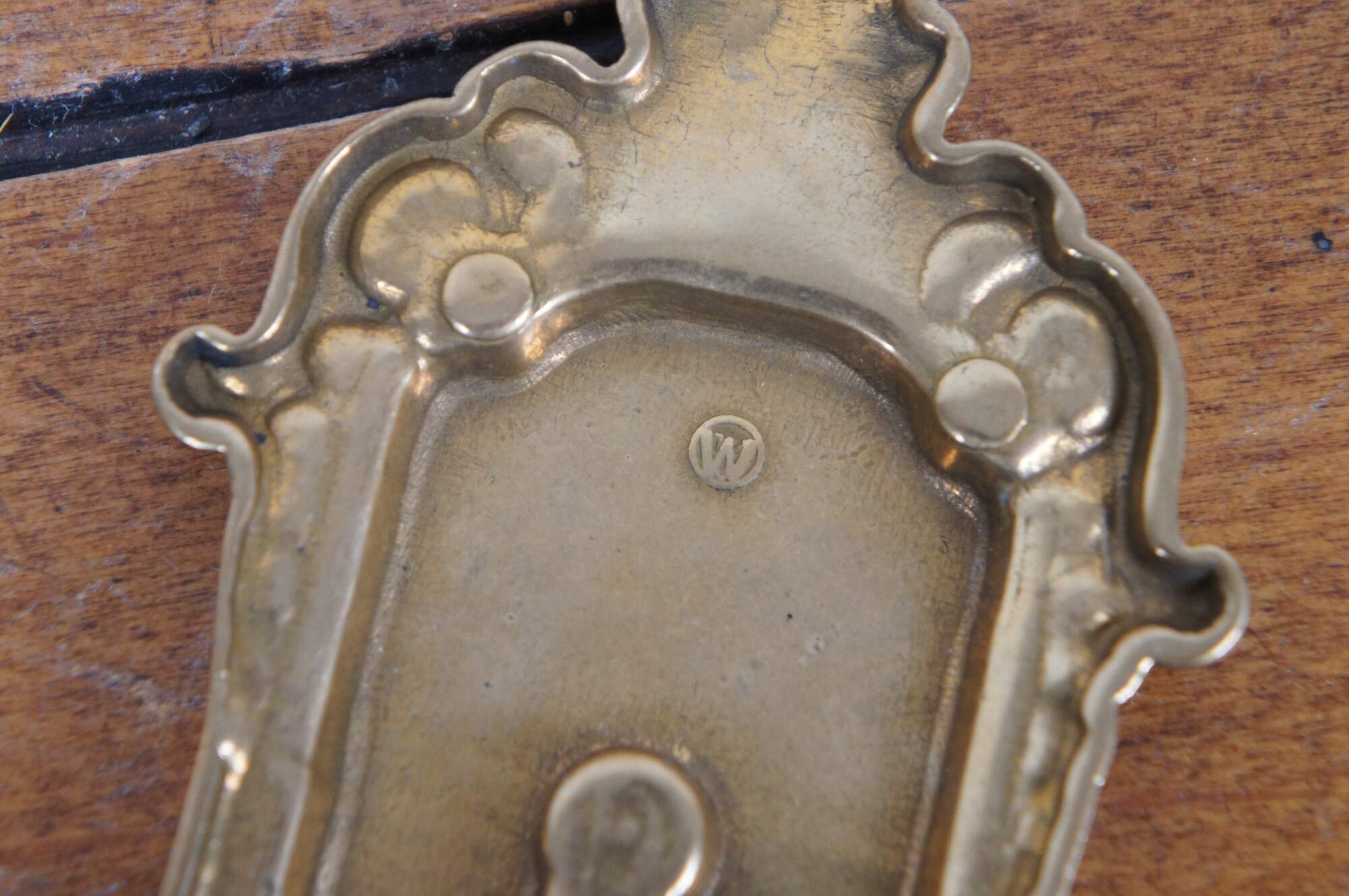 Late 19th century Victorian brass wall hanging thermometer. Simple art nouveau styling with scallops and flowers. Indicates temperatures up to 120 degrees Fahrenheit and 50 degrees Celsius with standard red-dyed alcohol filled glass bulb.