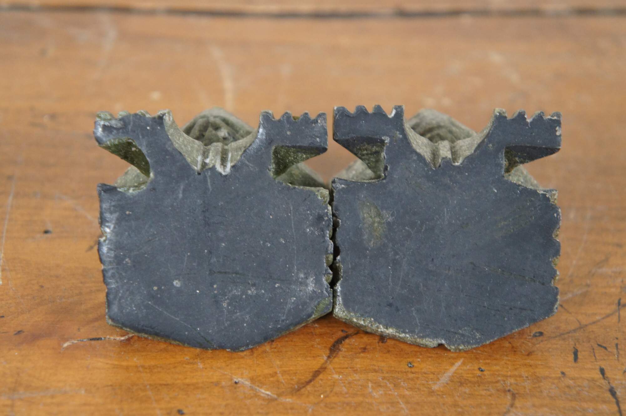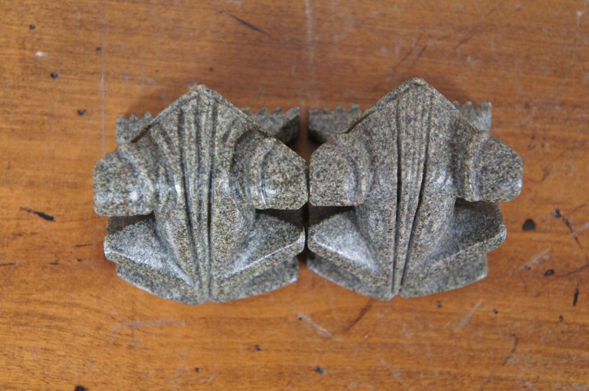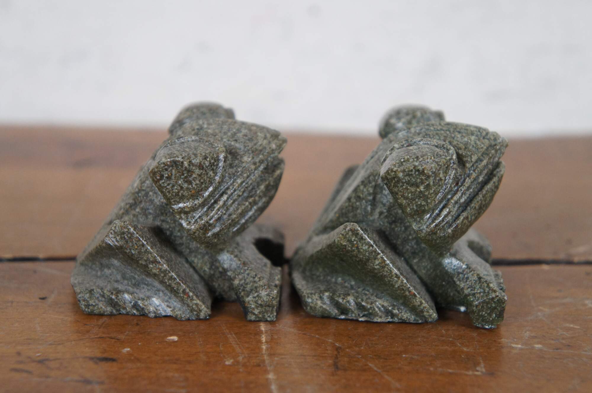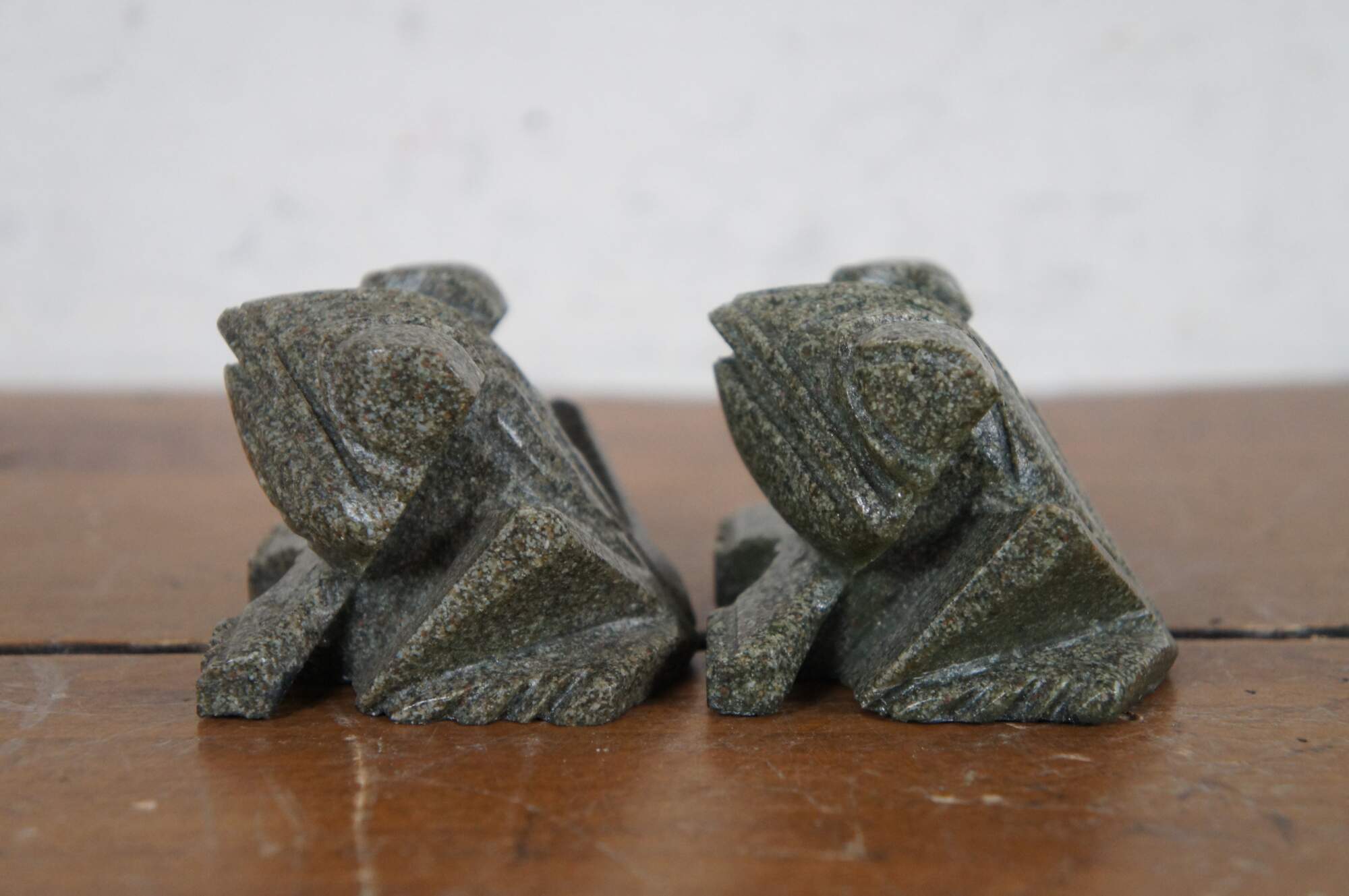 Pair of vintage folk art carved stone frog figurines or paperweights.