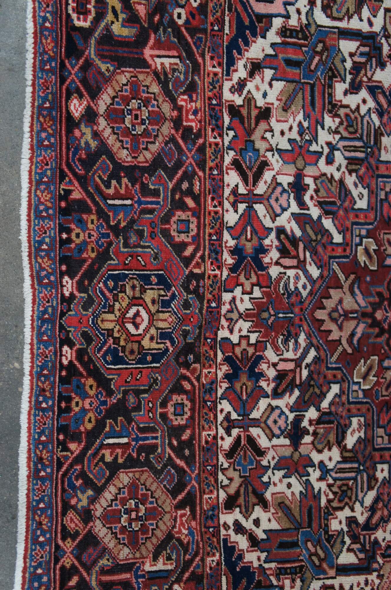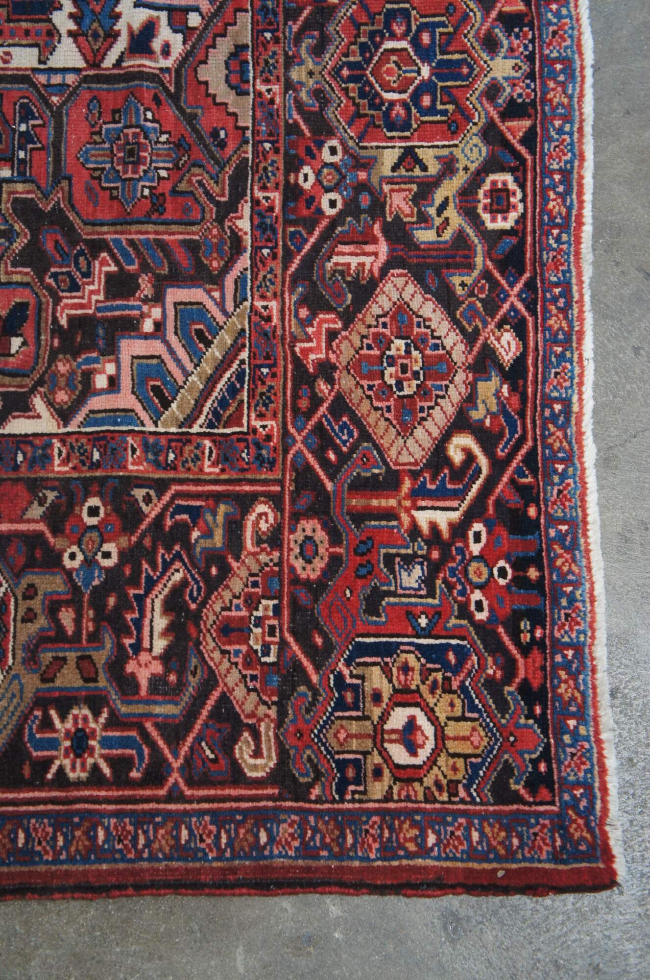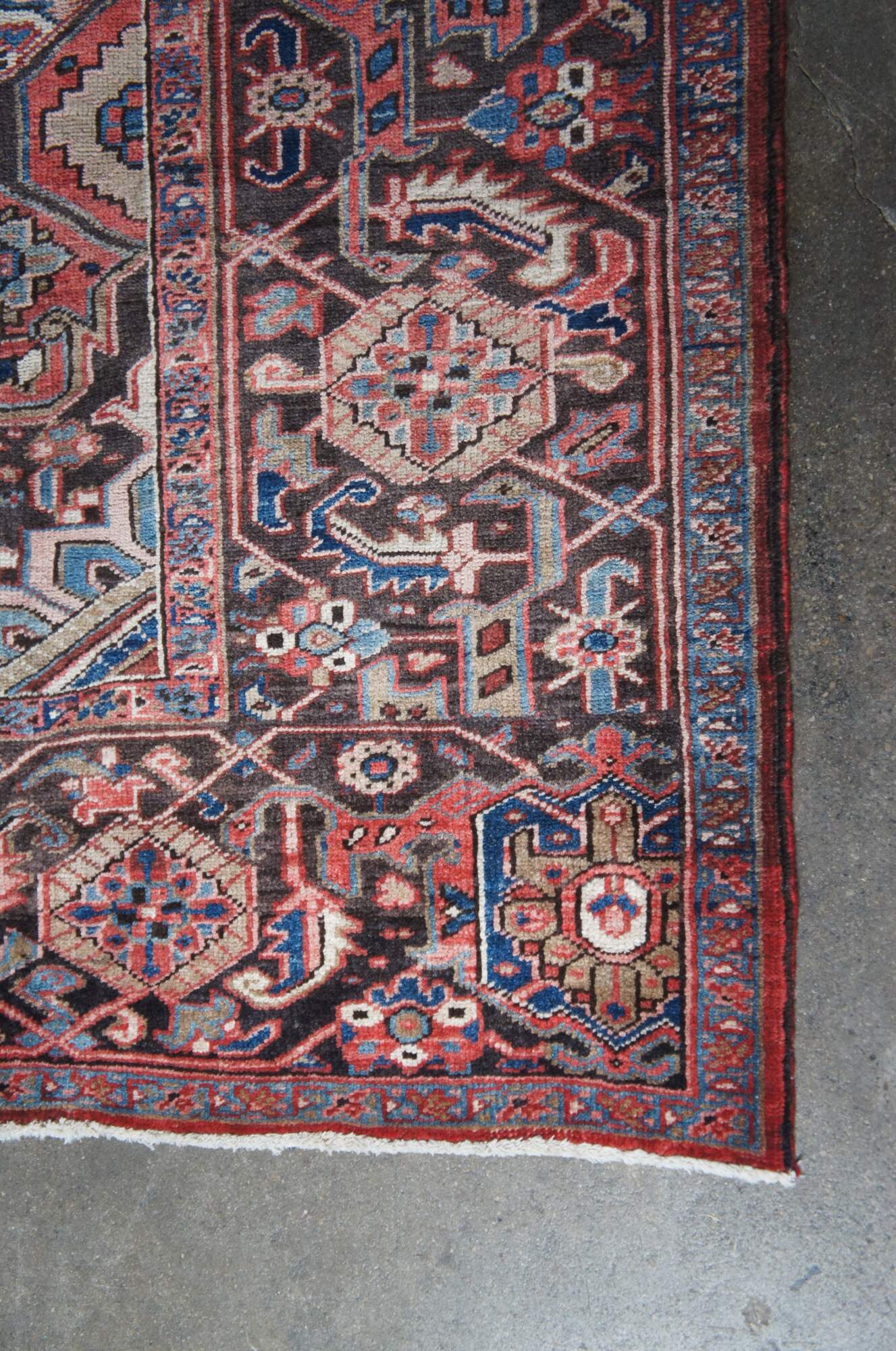 Heriz rug weavers often make them in geometric, bold patterns with a large medallion dominating the field. Such designs are traditional and often woven from memory.