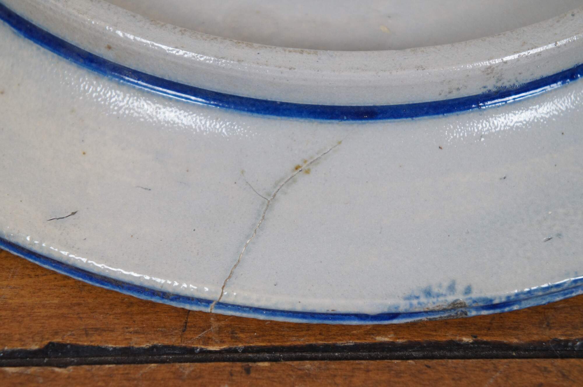 "Westerwald pottery, or Westerwald stoneware, is a distinctive type of salt glazed grey pottery from the Höhr-Grenzhausen and Ransbach-Baumbach area of Westerwaldkreis in Rheinland-Pfalz, Germany. Typically, Westerwald pottery is decorated with cobalt blue painted designs, although some later examples are white. It may also be decorated with contrasting black or brown-purple designs. The salt glaze creates a glossy surface. It is also known as Kannenbäckerland stoneware." (Source: Wikipedia)